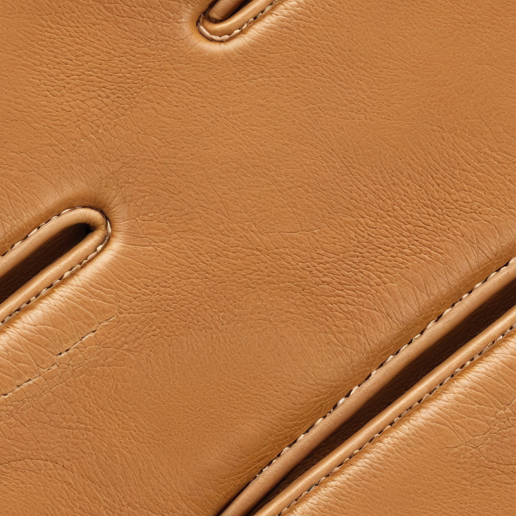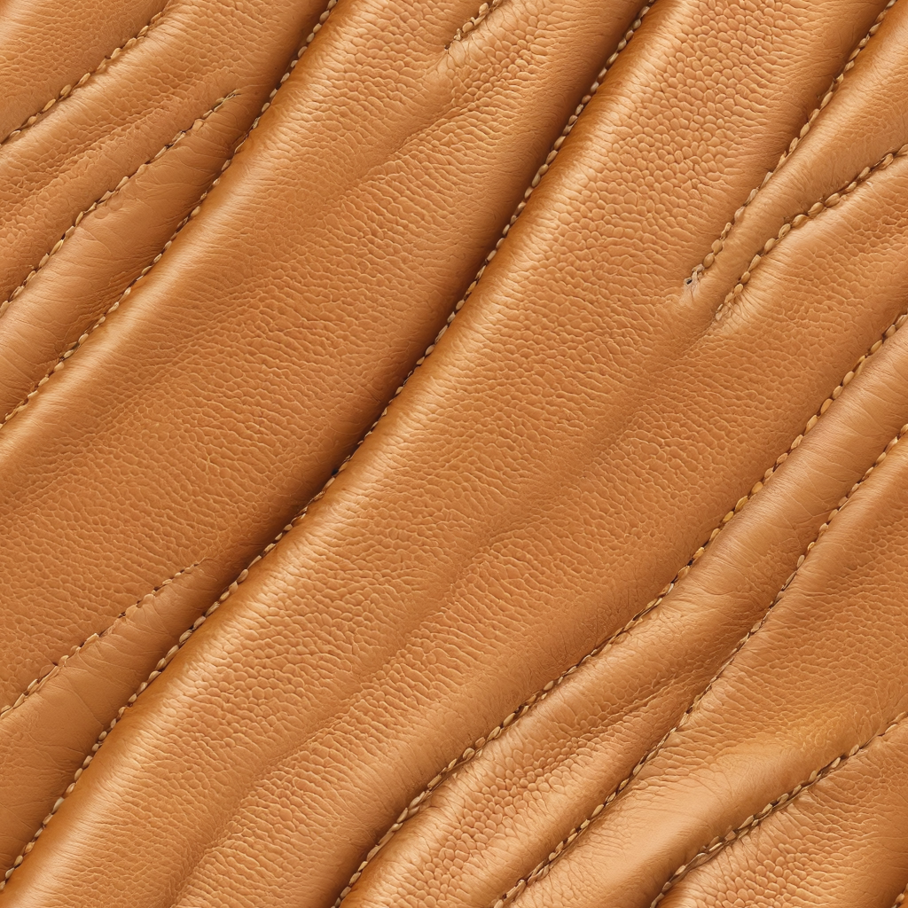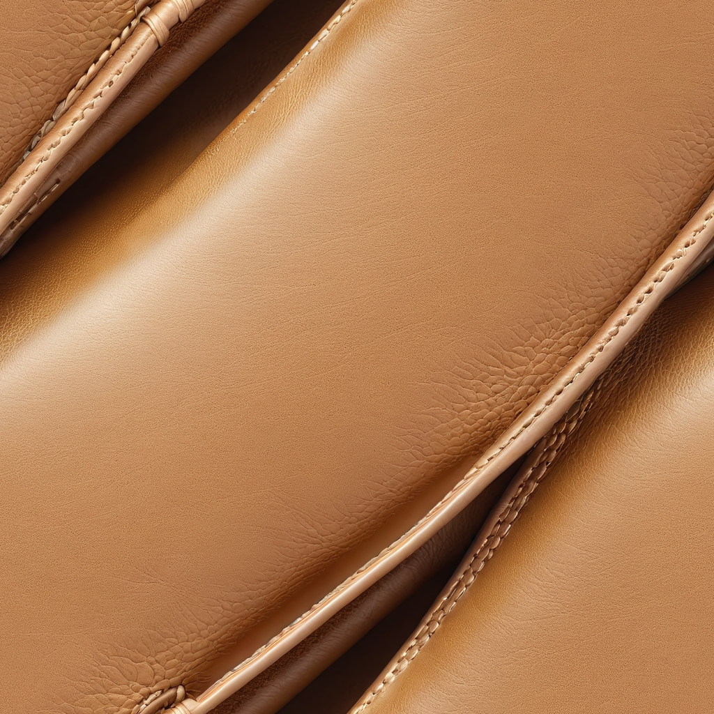 Seamless 3D PBR Texture of Smooth Tan Leather with Detailed Stitching and Soft Grain