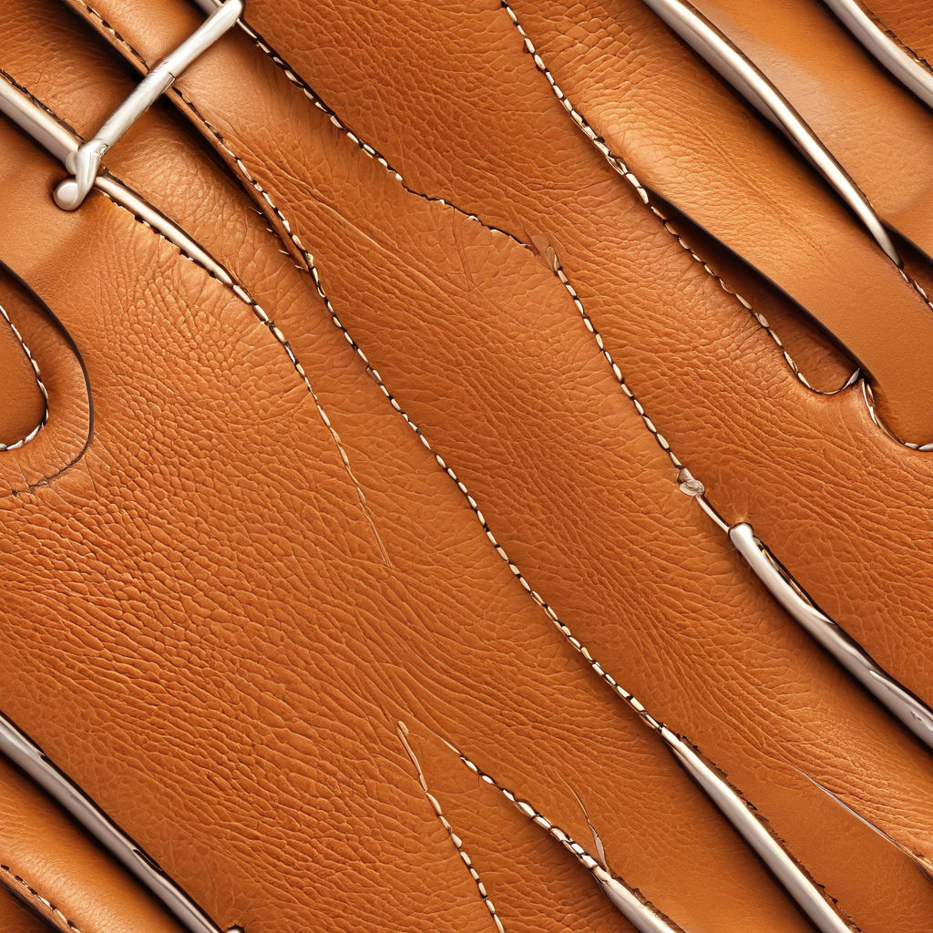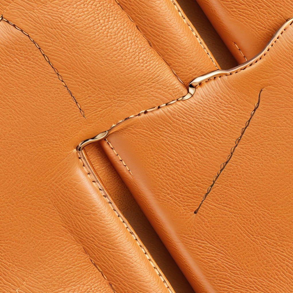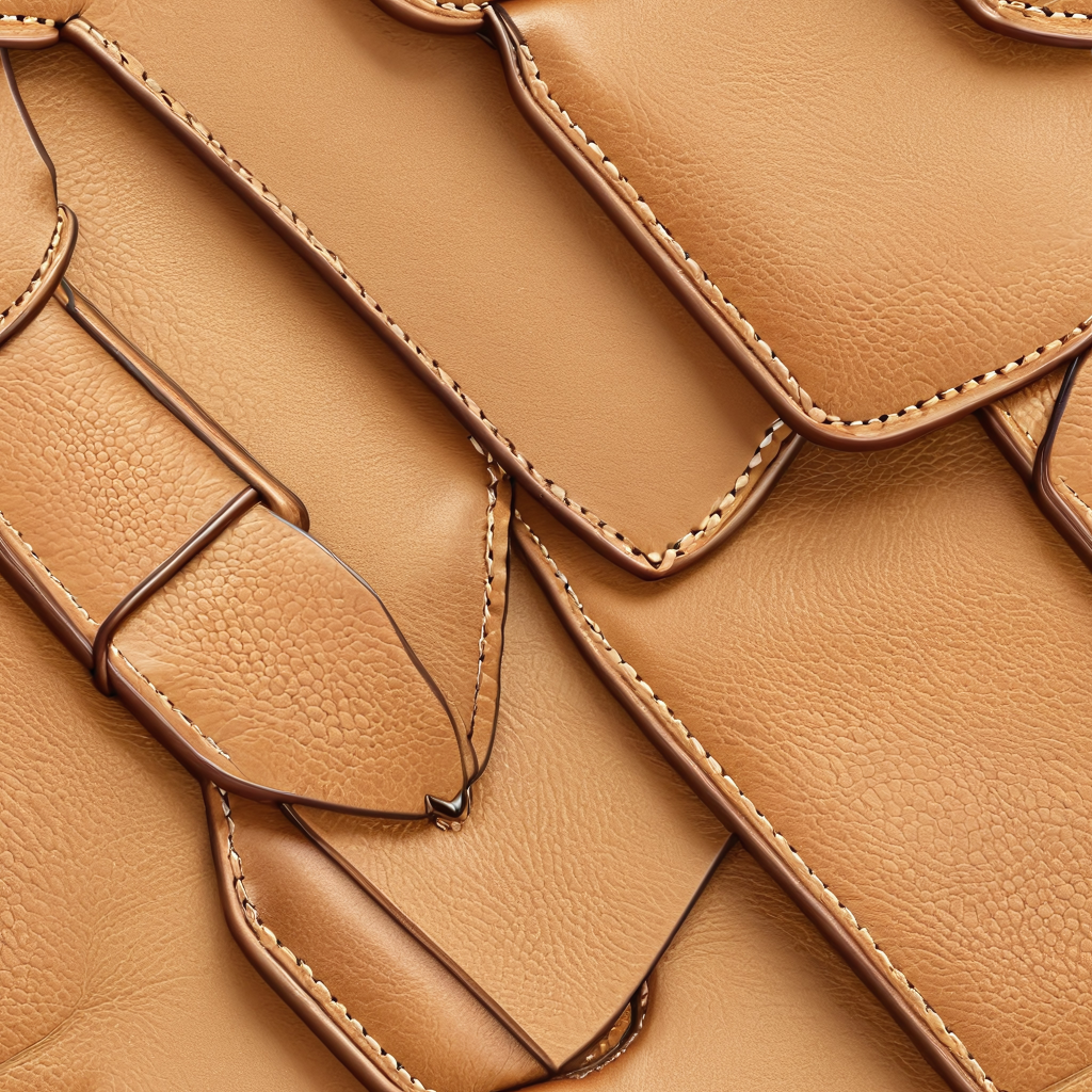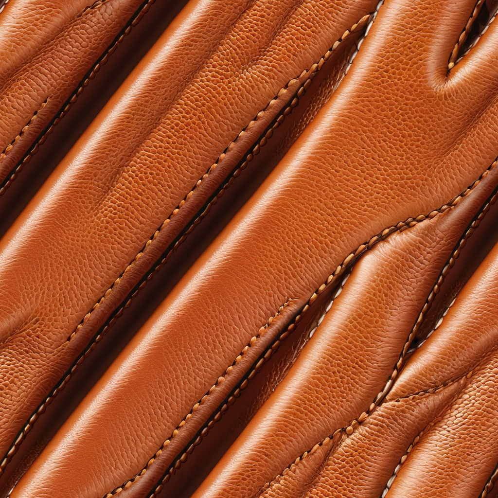 Seamless 3D PBR Texture of Smooth Tan Leather with Detailed Stitching and Soft Grain