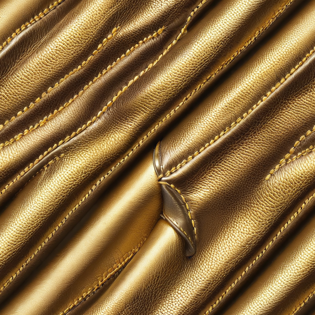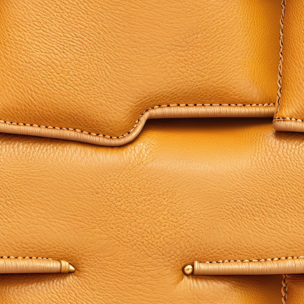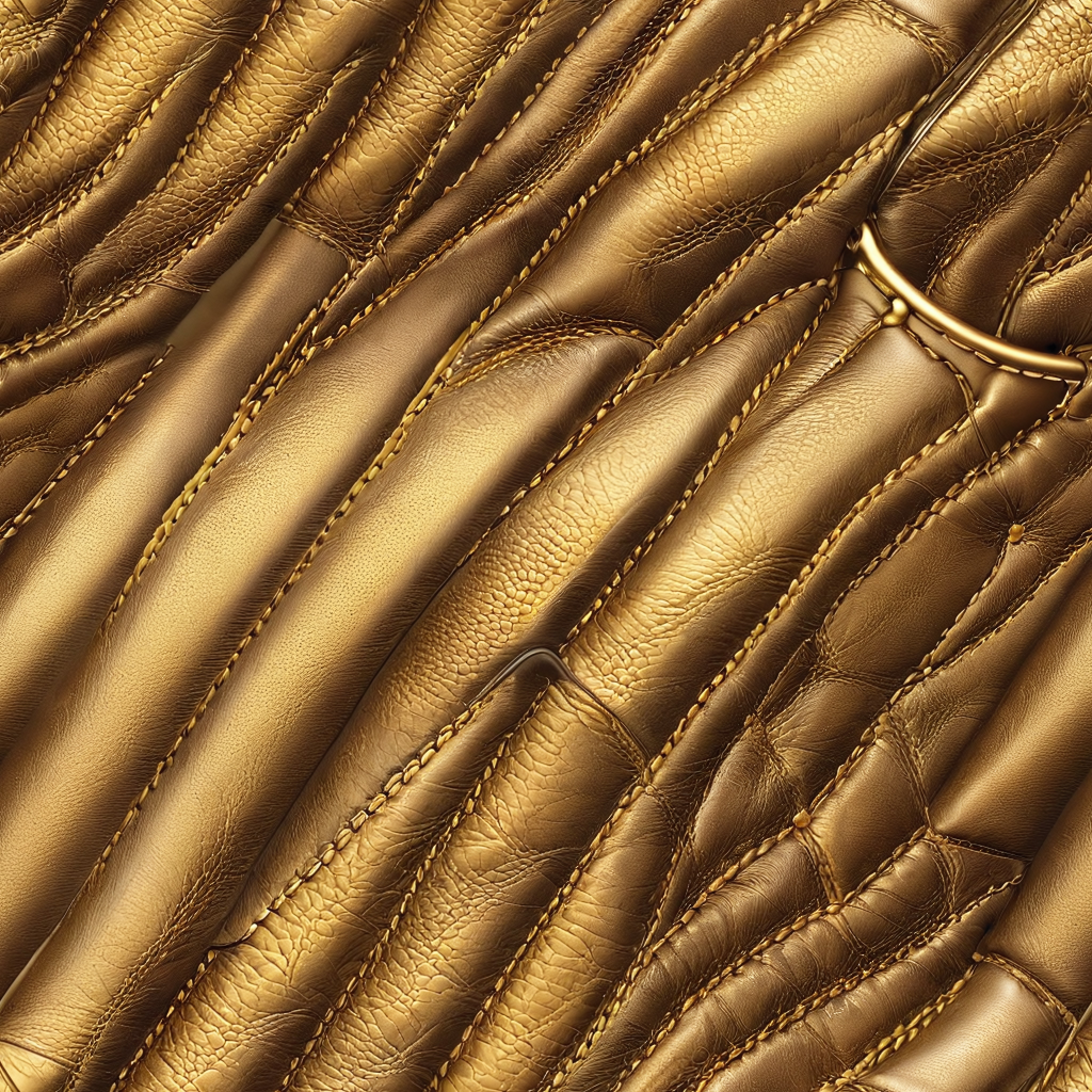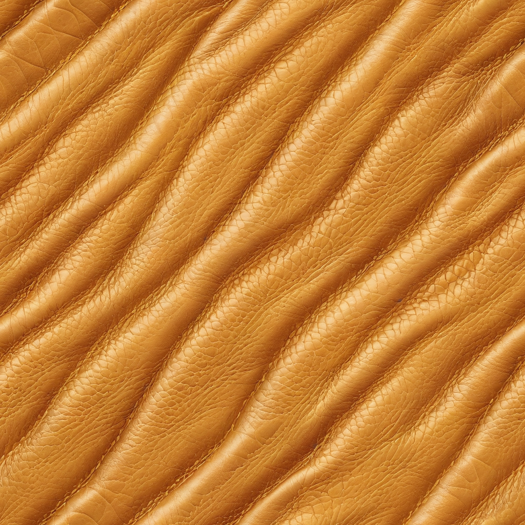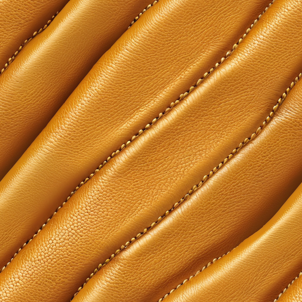 Seamless 3D PBR Stitched Golden Leather Texture with Detailed Grain and Wrinkles