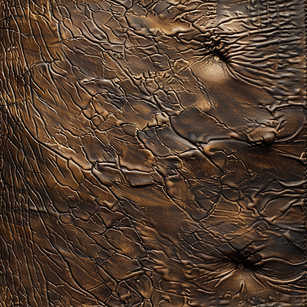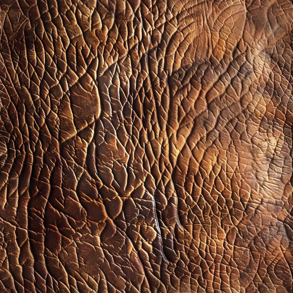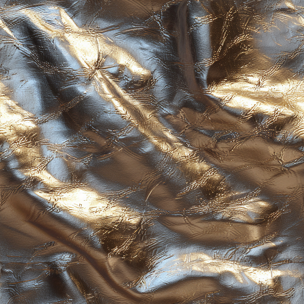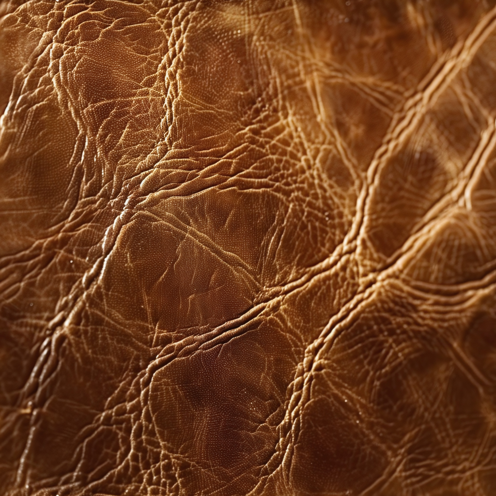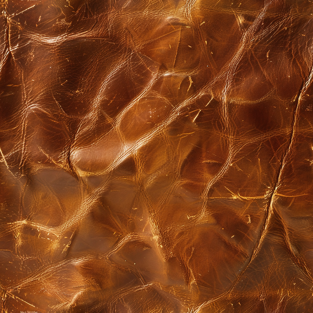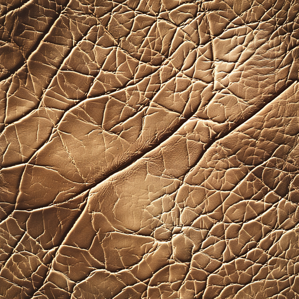 Seamless 3D PBR Stitched Golden Leather Texture with Detailed Grain and Wrinkles