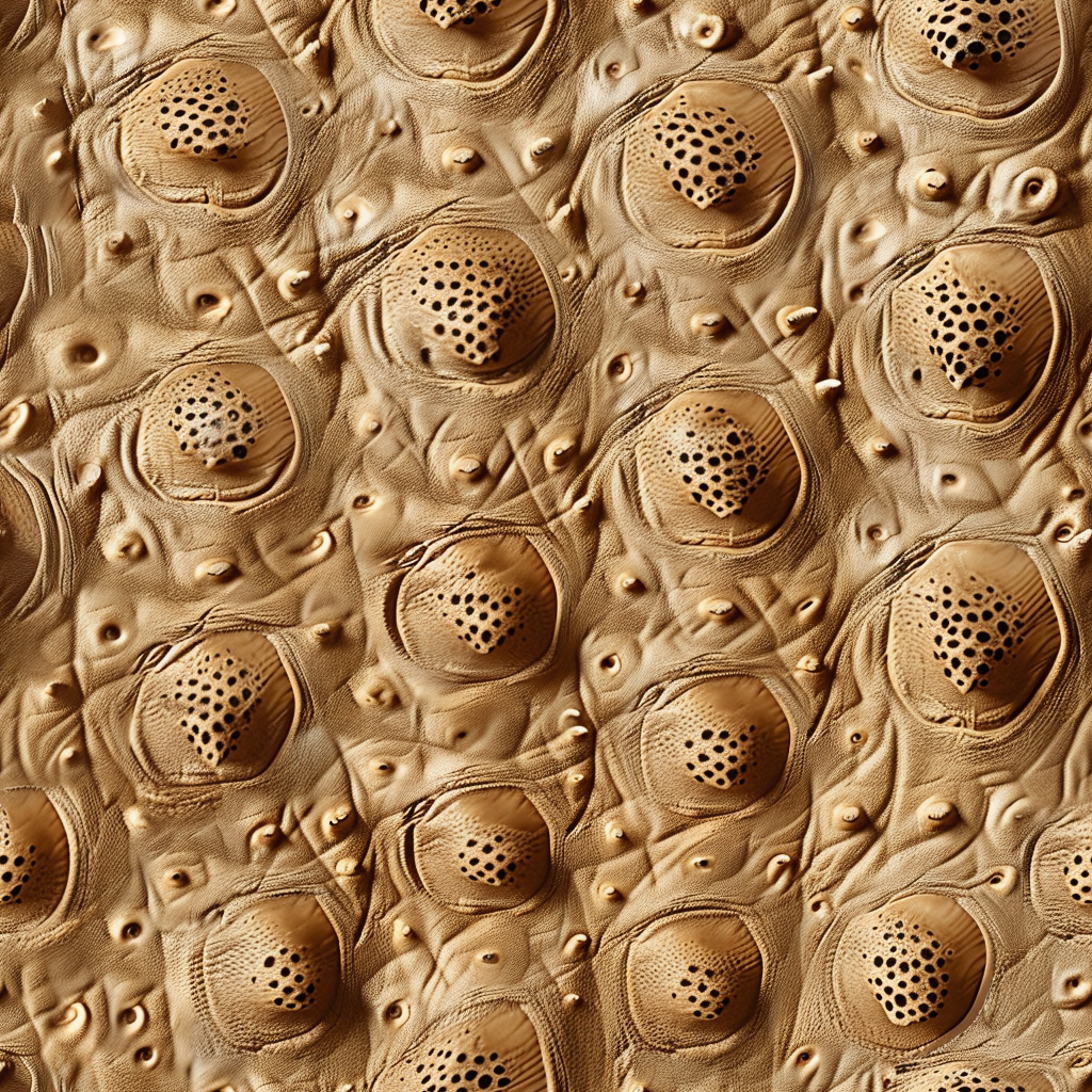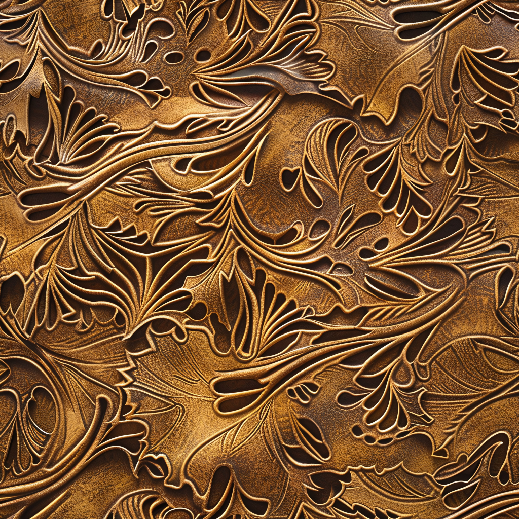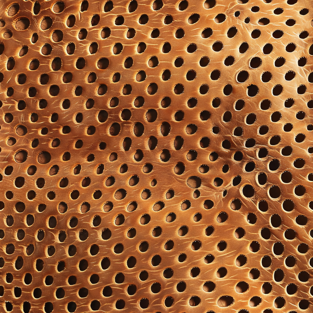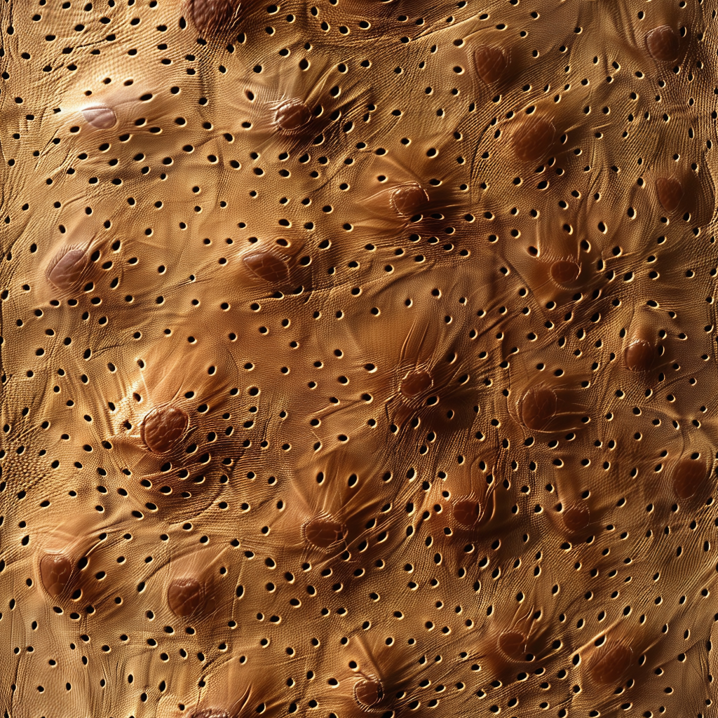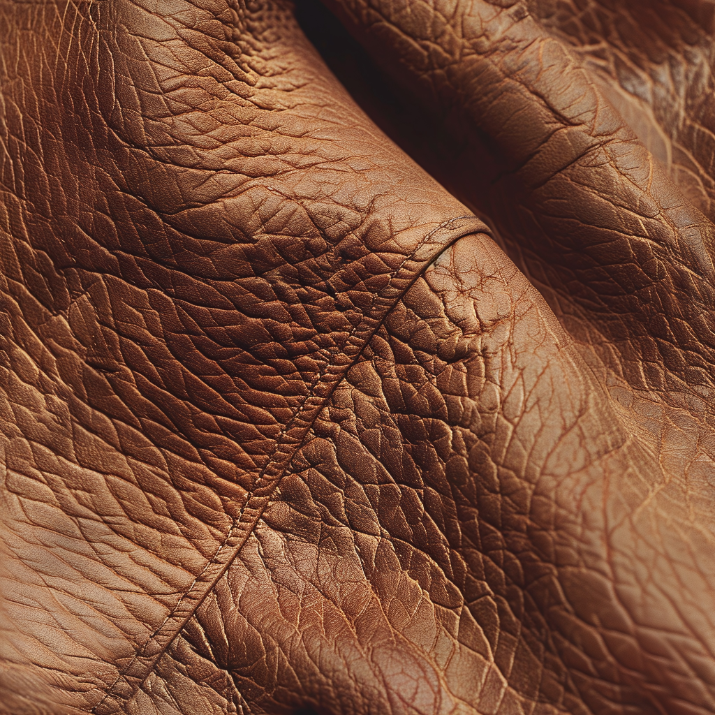 Seamless 3D PBR Stitched Golden Leather Texture with Detailed Grain and Wrinkles