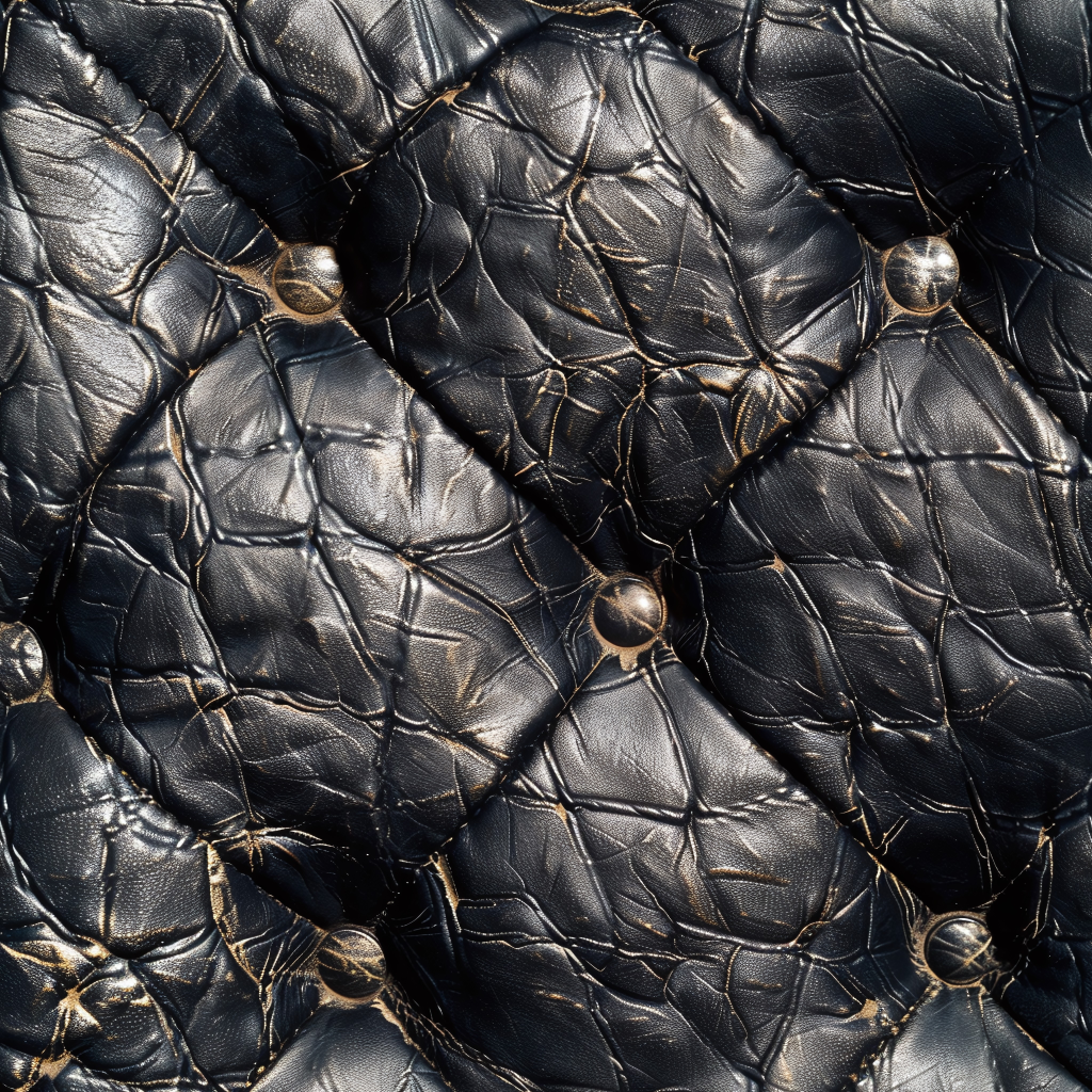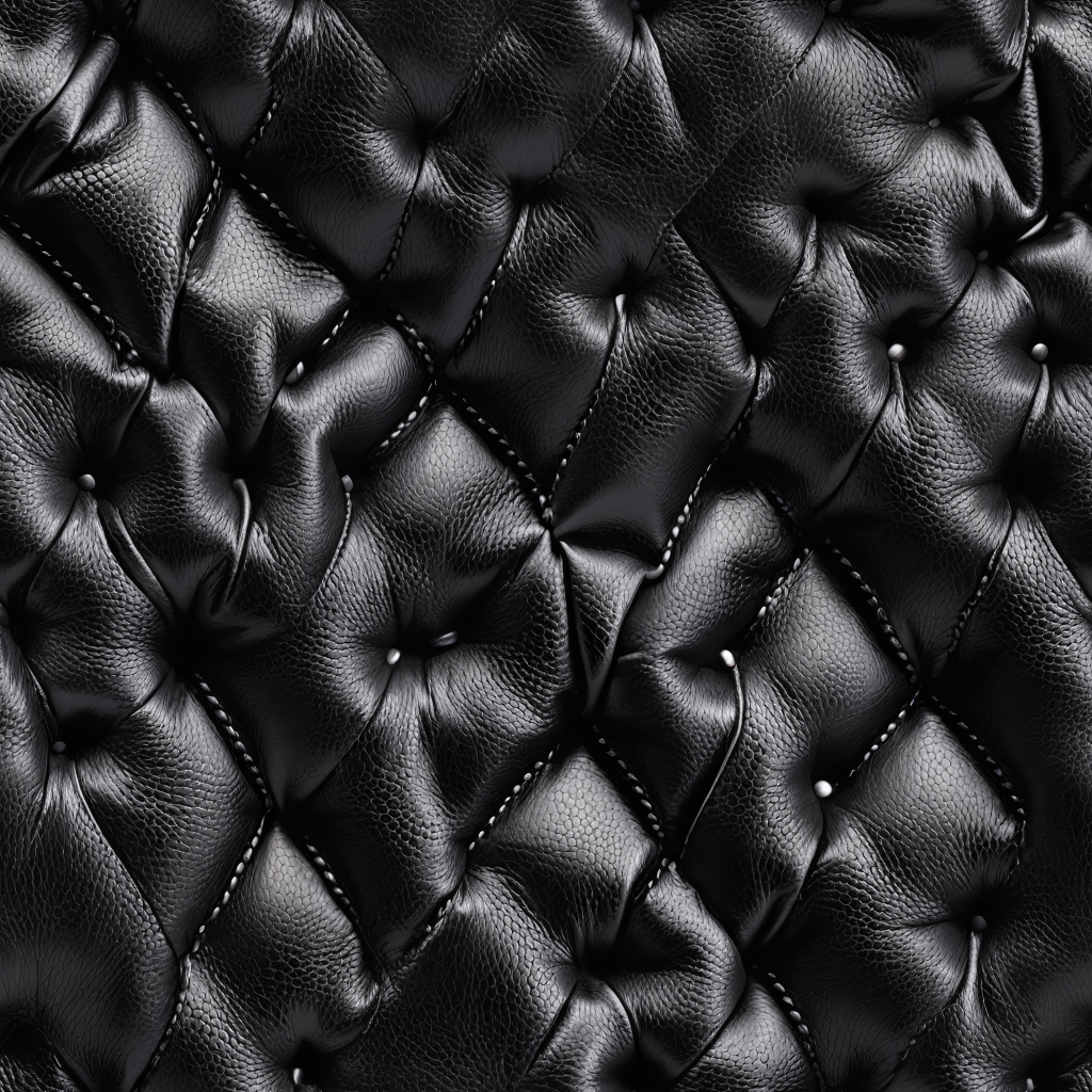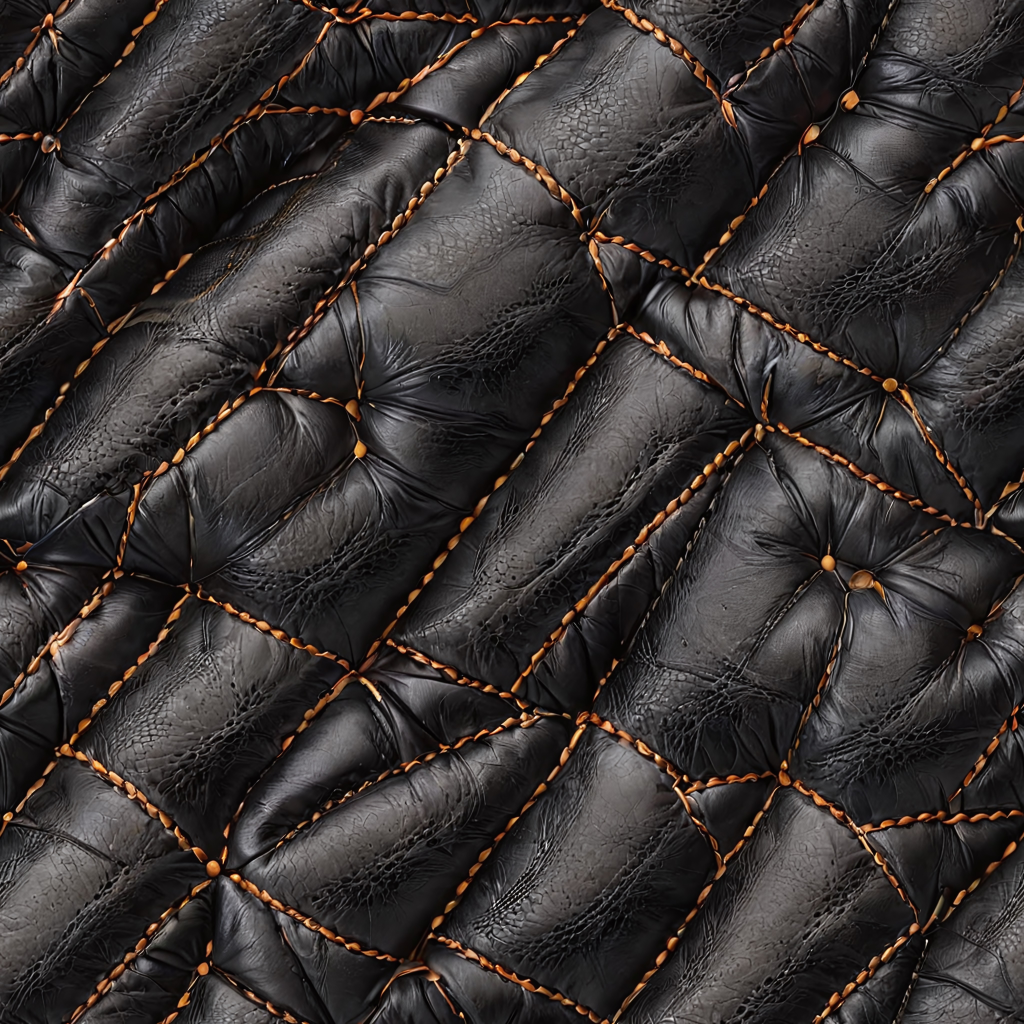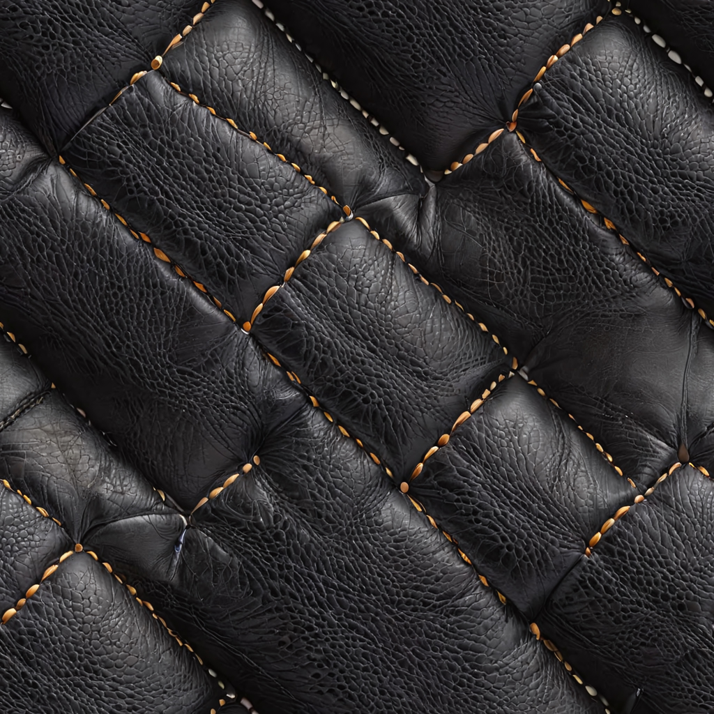 Seamless 3D Quilted Black Leather PBR Texture with Detailed Grain and Stitching