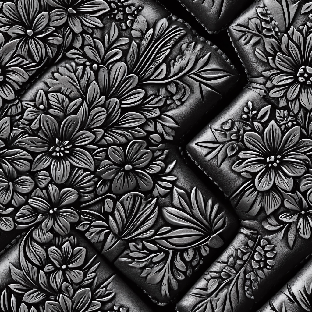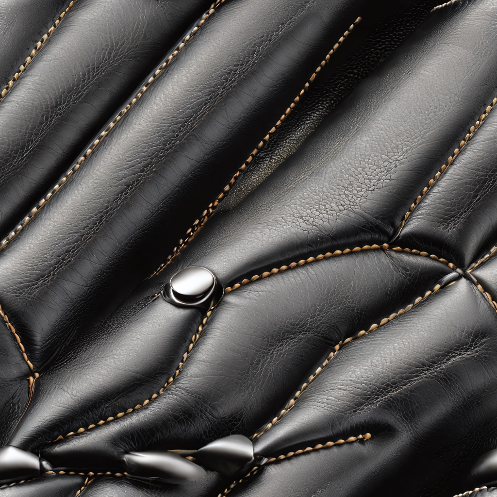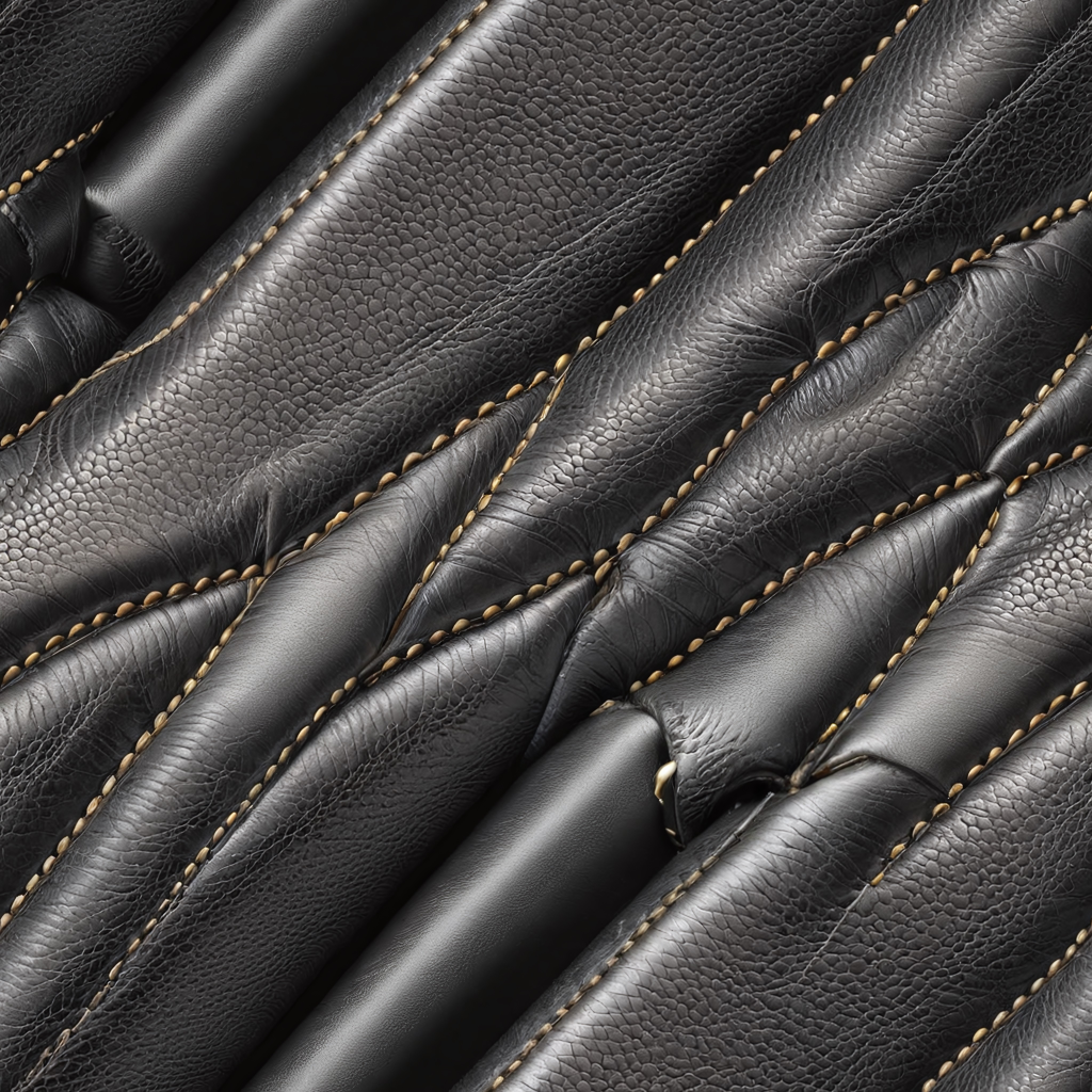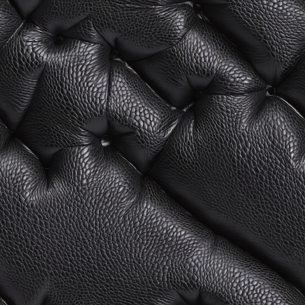 Seamless 3D Quilted Black Leather PBR Texture with Detailed Grain and Stitching