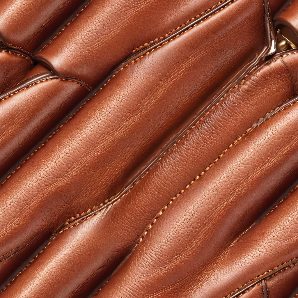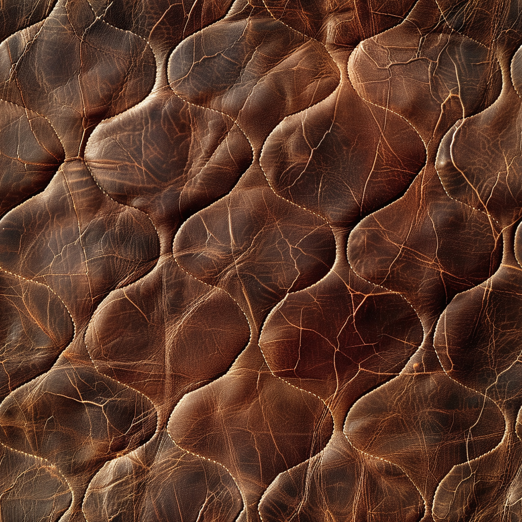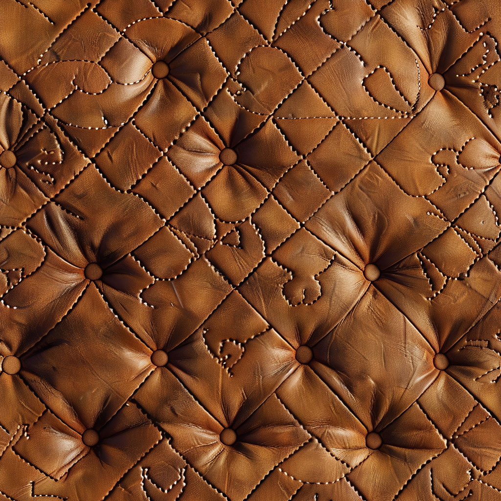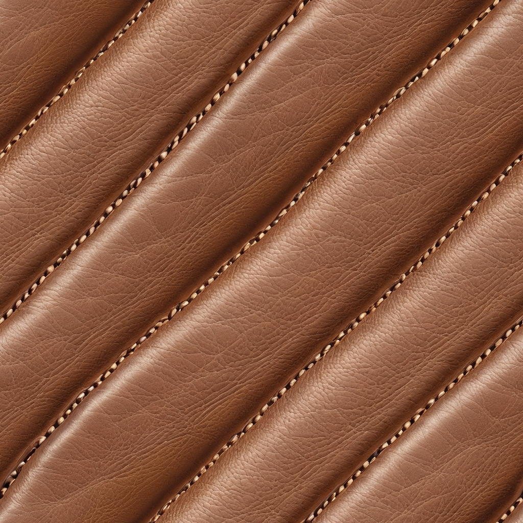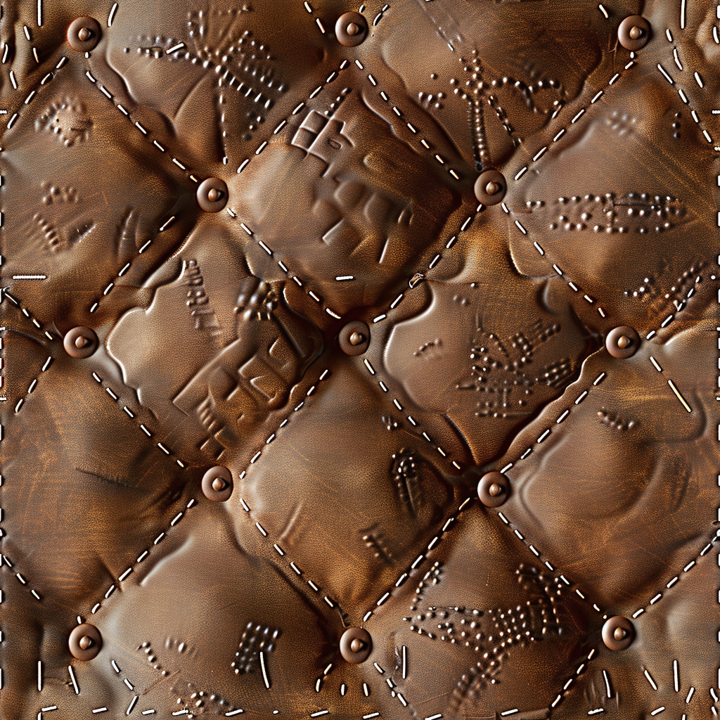 Seamless 3D Quilted Brown Leather PBR Texture with Detailed Grain and Stitching