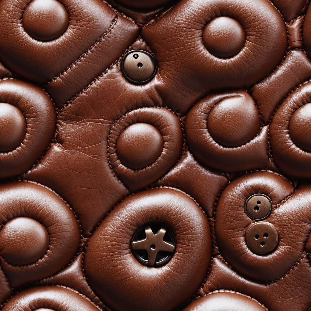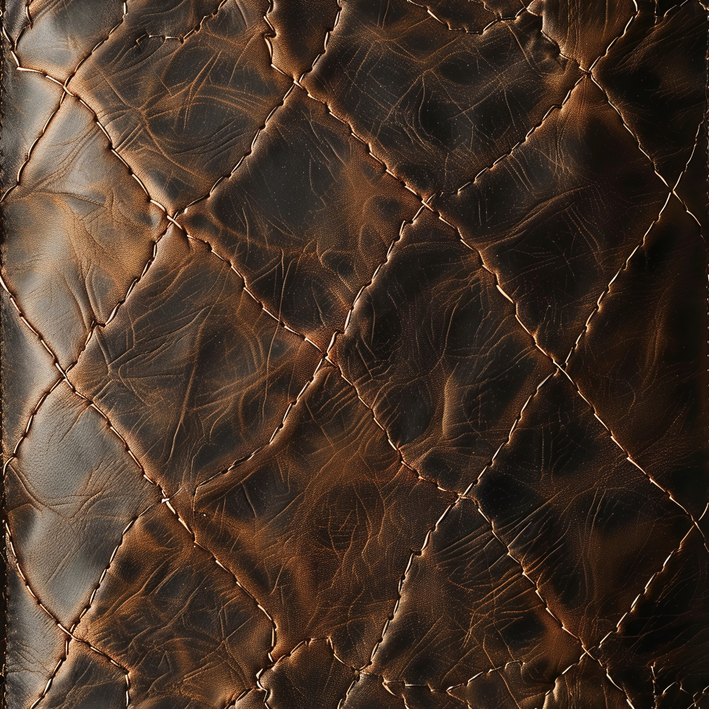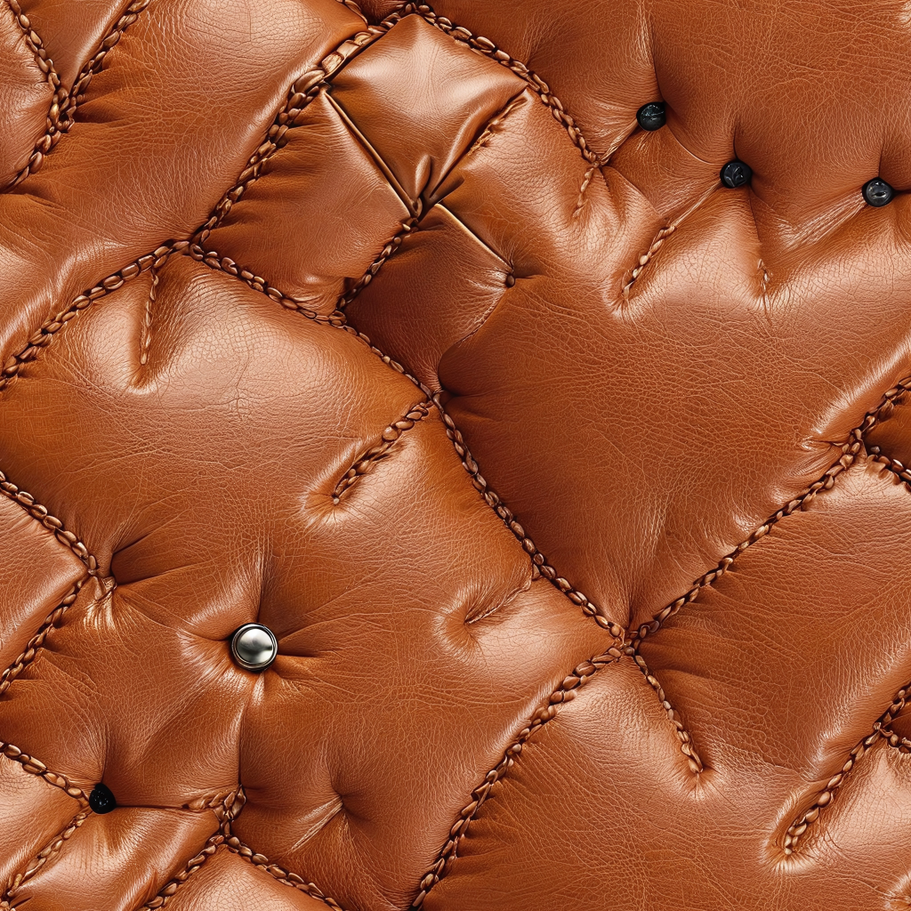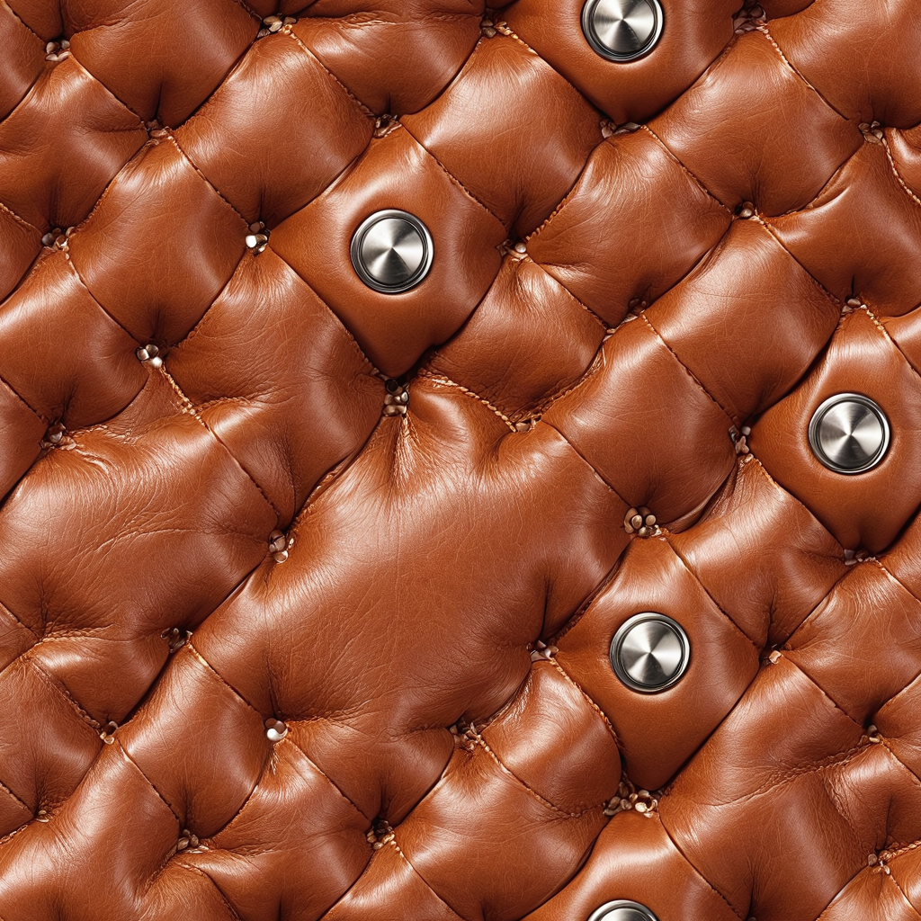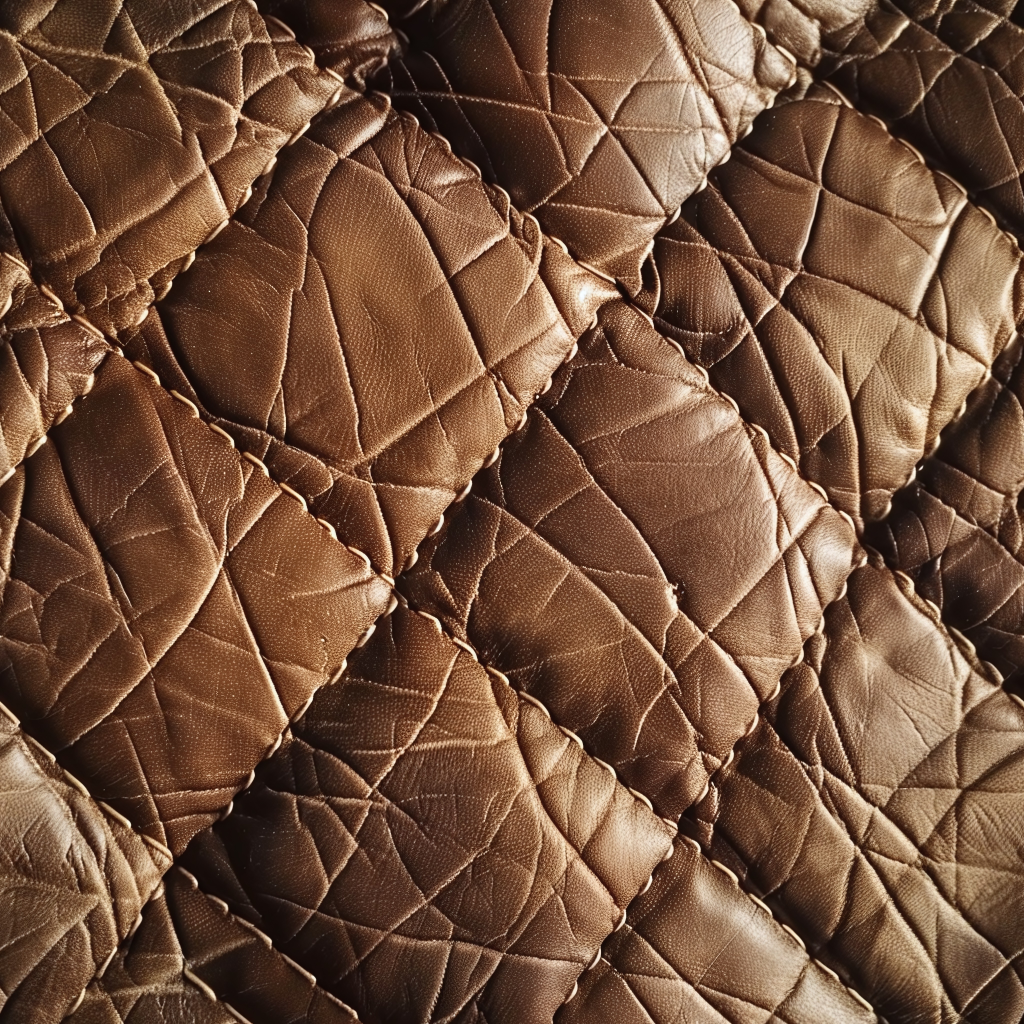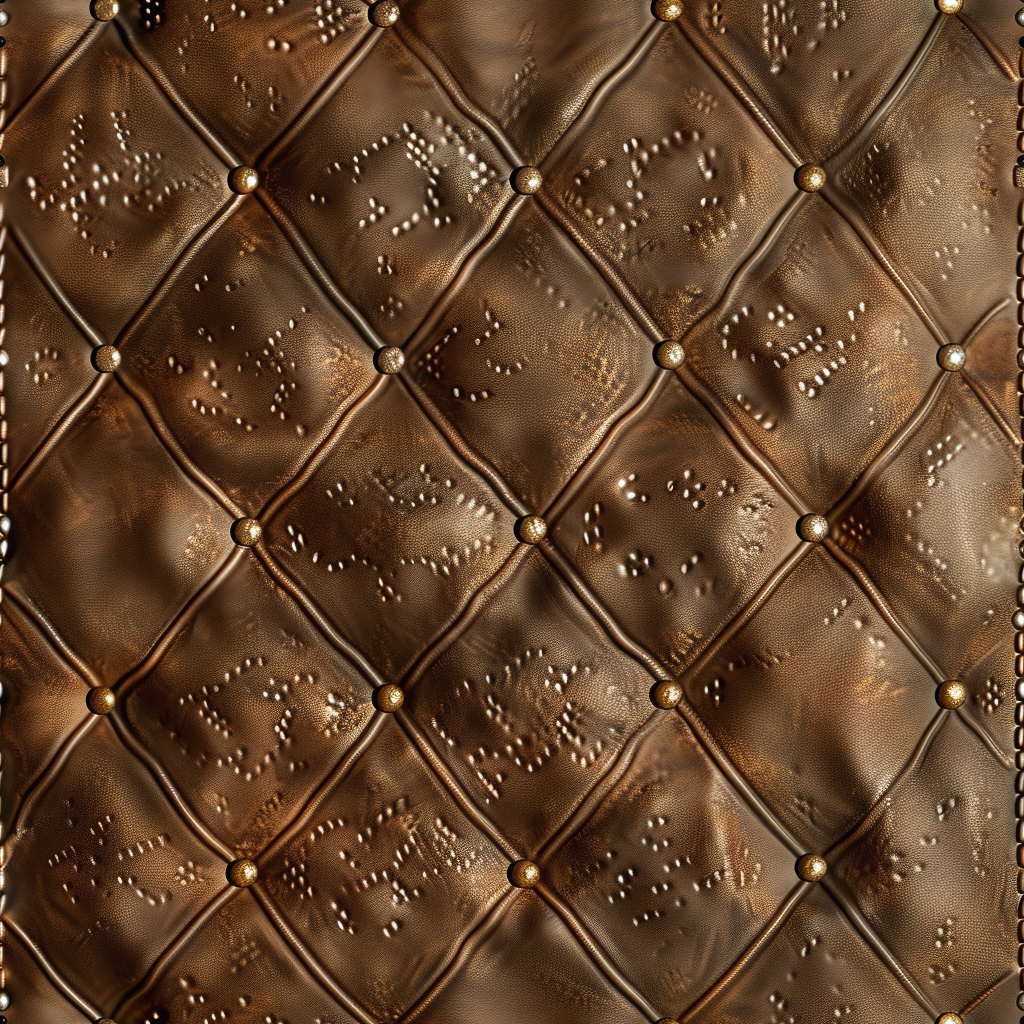 Seamless 3D Quilted Brown Leather PBR Texture with Detailed Grain and Stitching