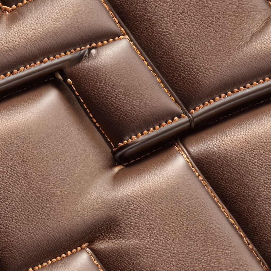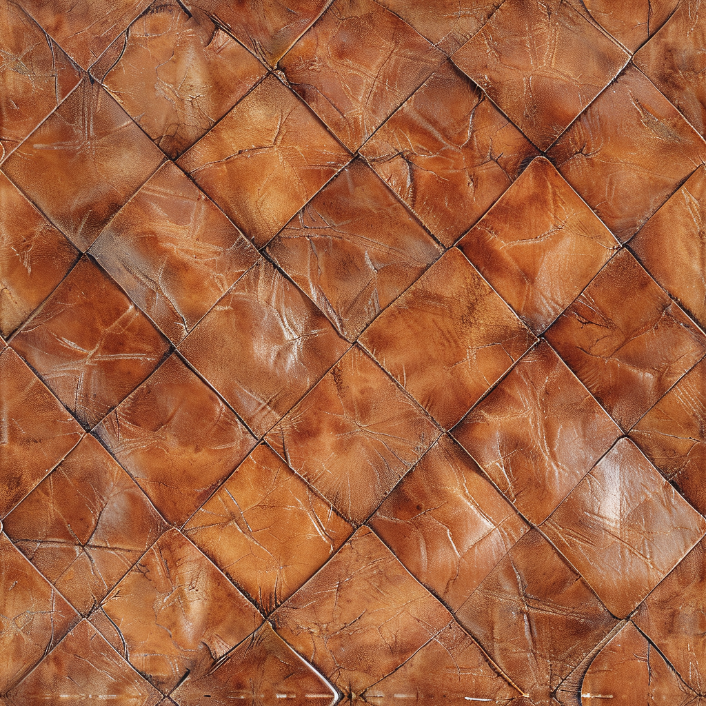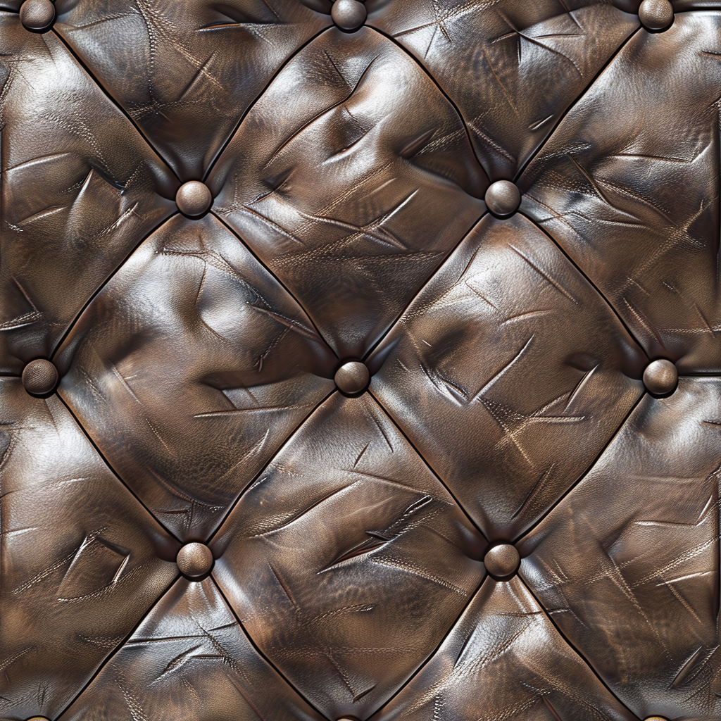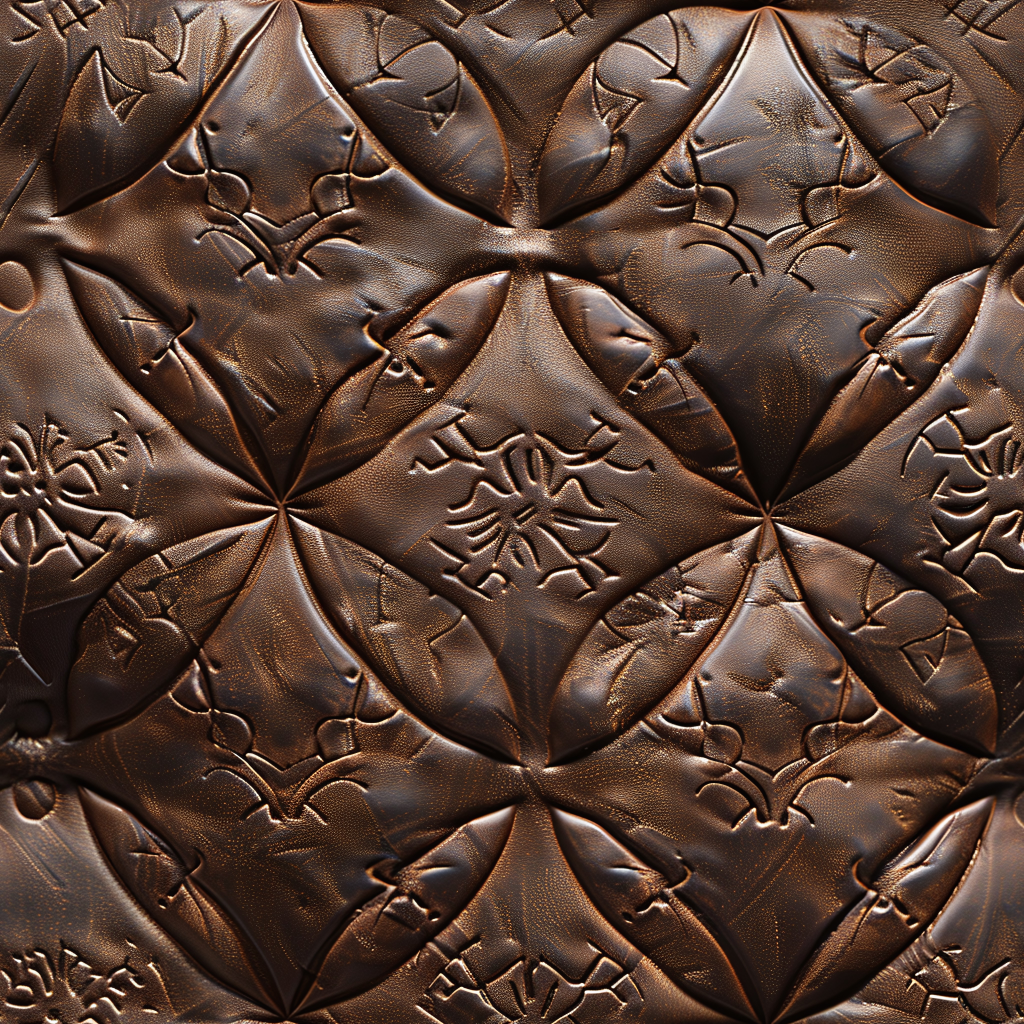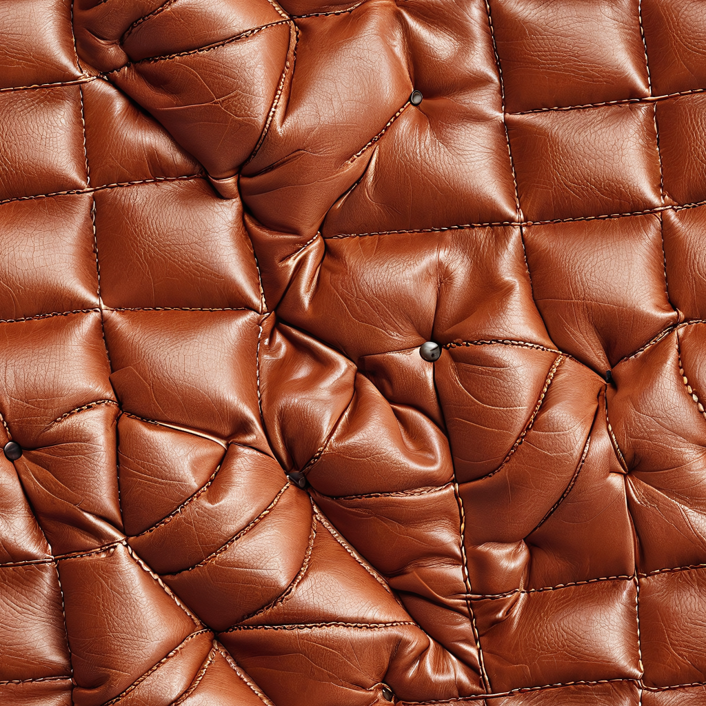 Seamless 3D Quilted Brown Leather PBR Texture with Detailed Grain and Stitching
