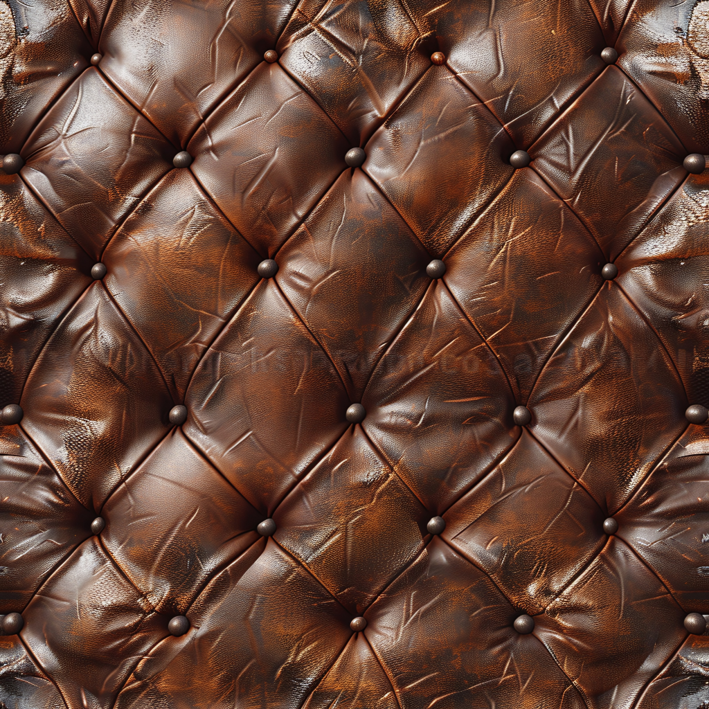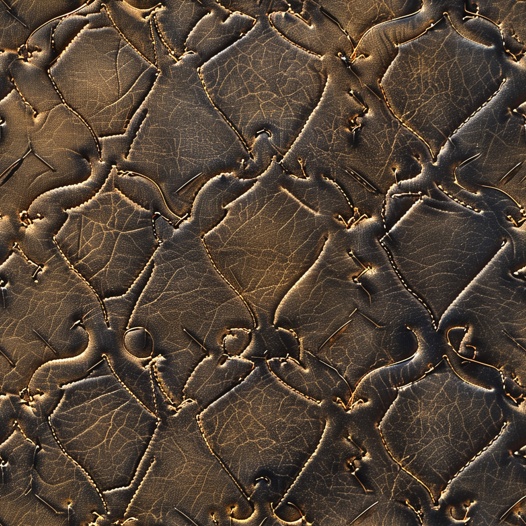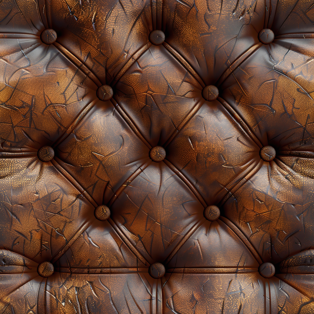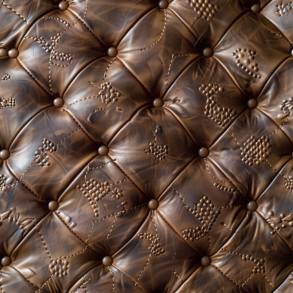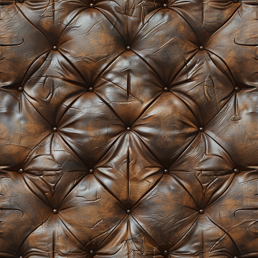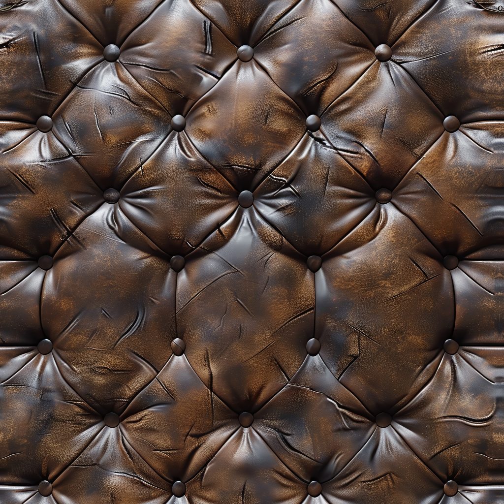 Seamless 3D Quilted Brown Leather PBR Texture with Detailed Grain and Stitching