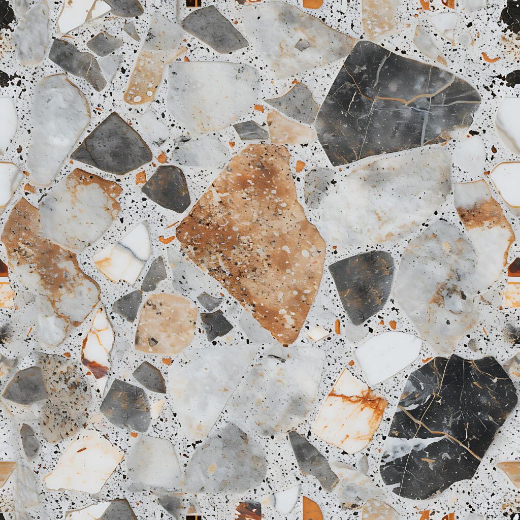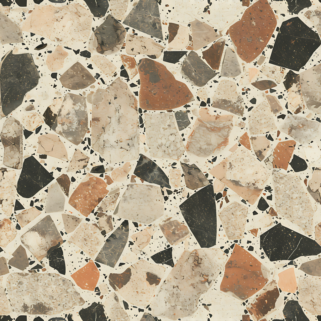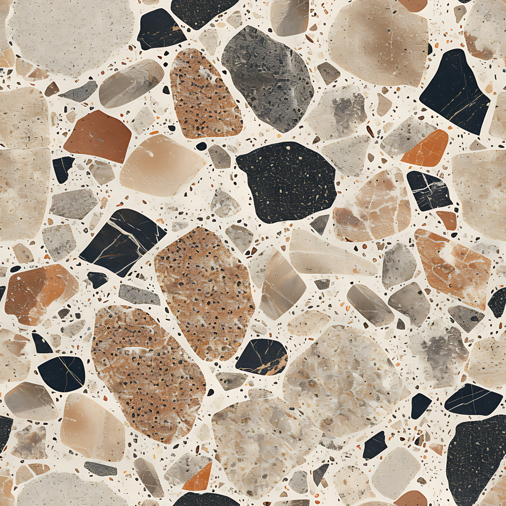Seamless 3d texture pbr 8k granite chips mosaic with neutral hues and rough texture finish