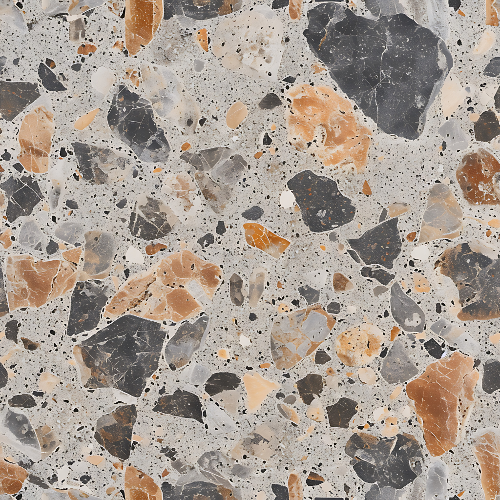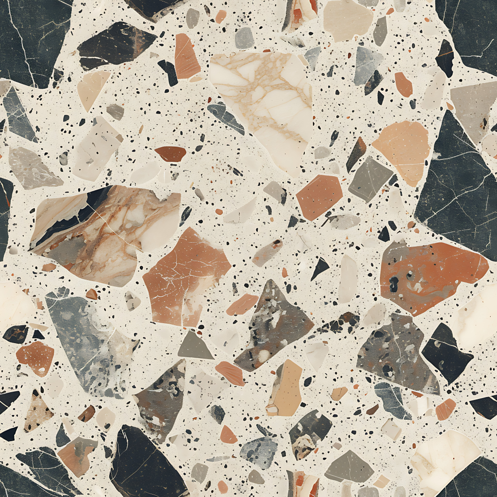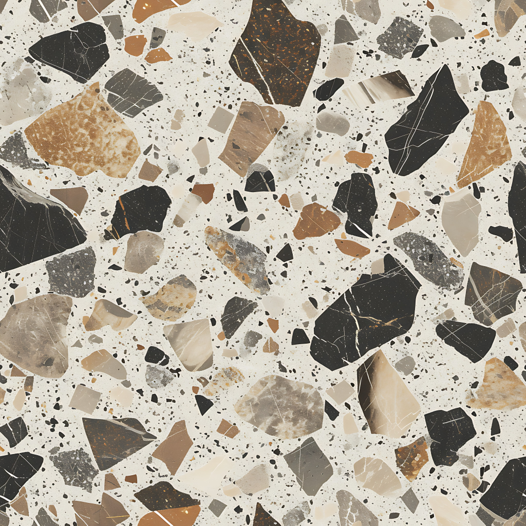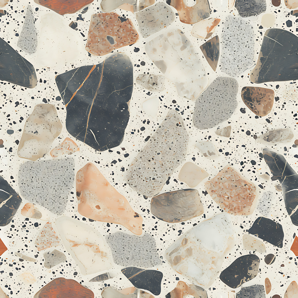 Seamless 3d texture pbr 8k granite chips mosaic with neutral hues and rough texture finish