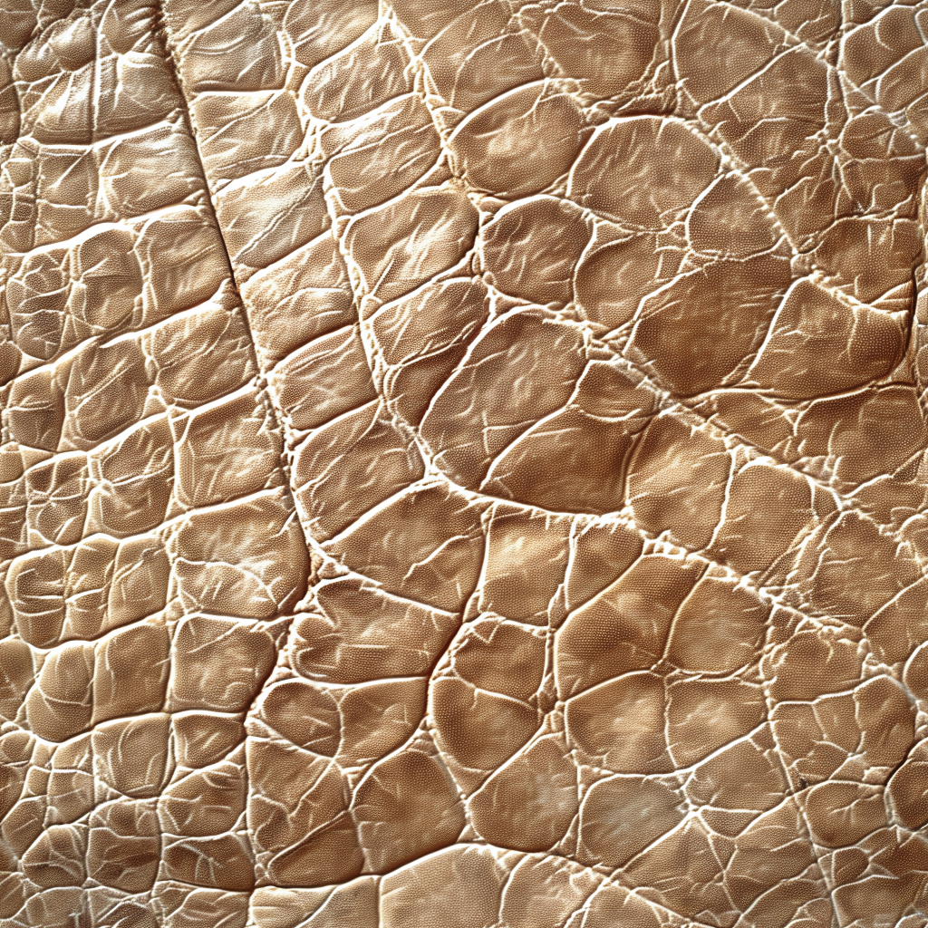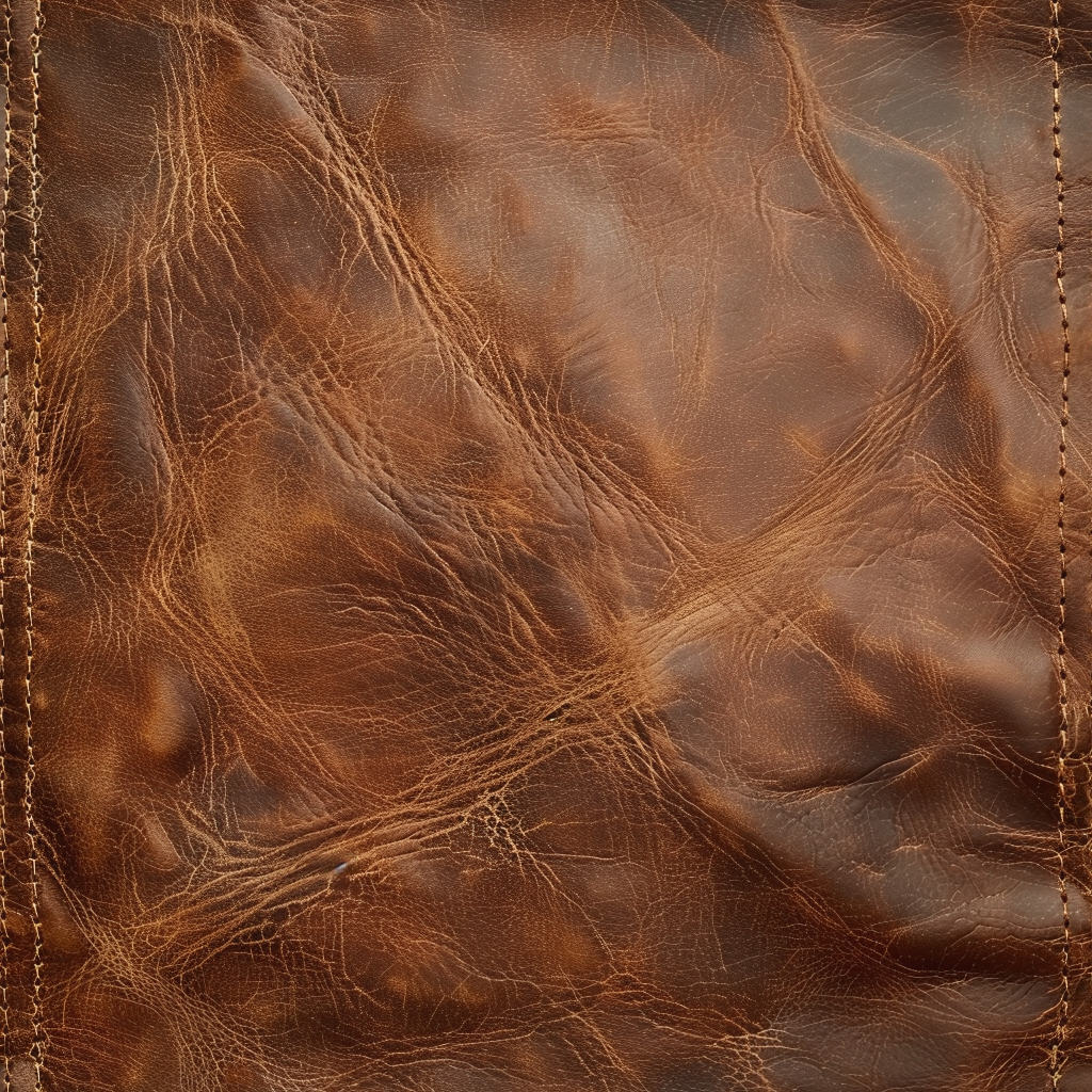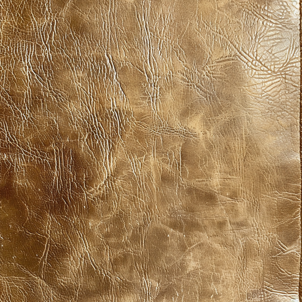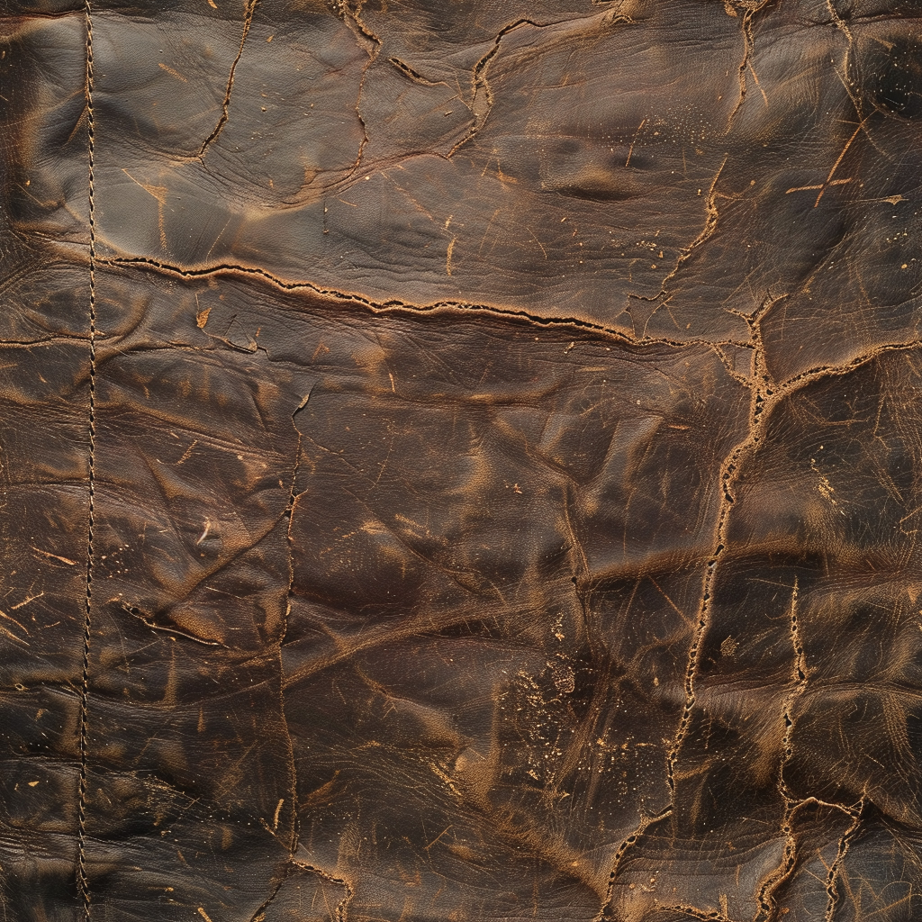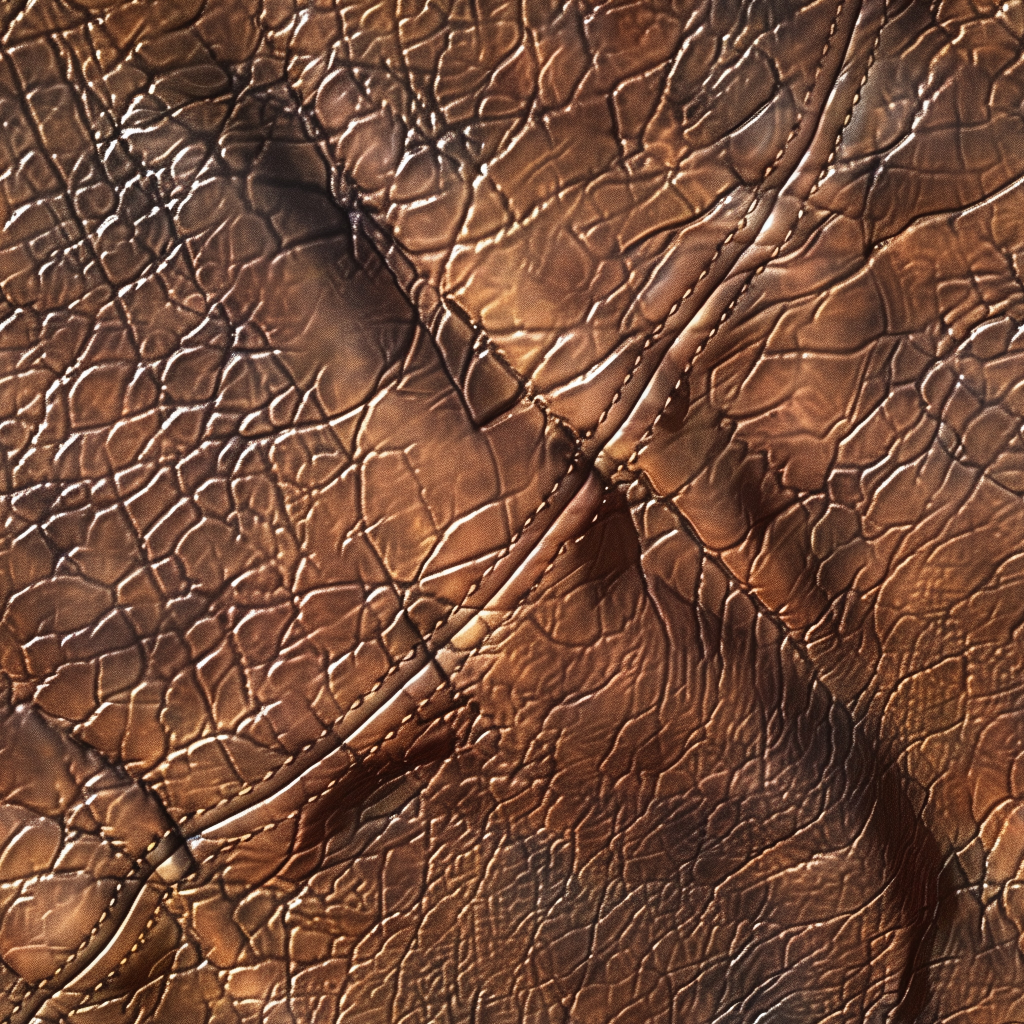 Seamless 3D Tan Cracked Leather PBR Texture Featuring Visible Stitching and Natural Grain
