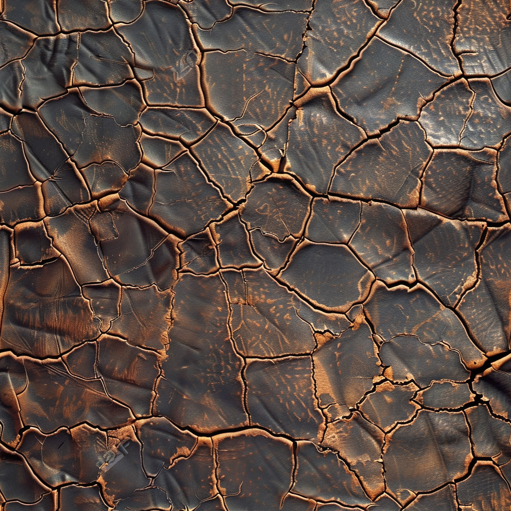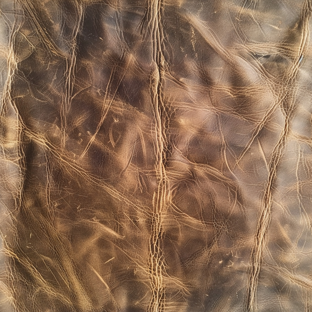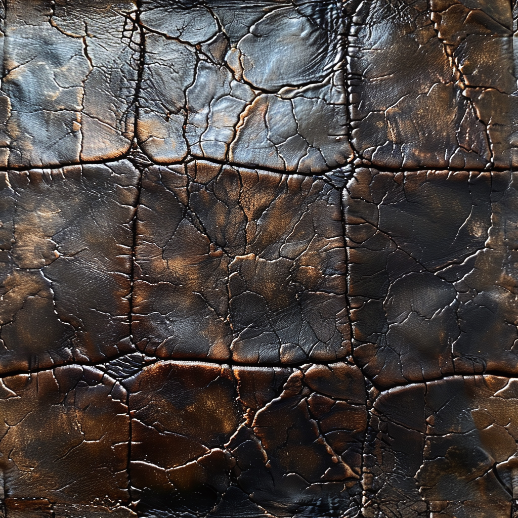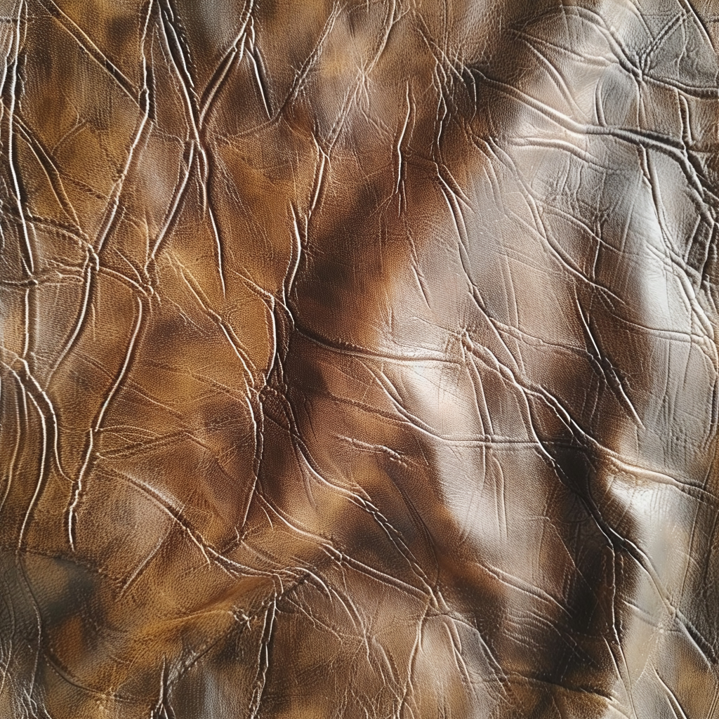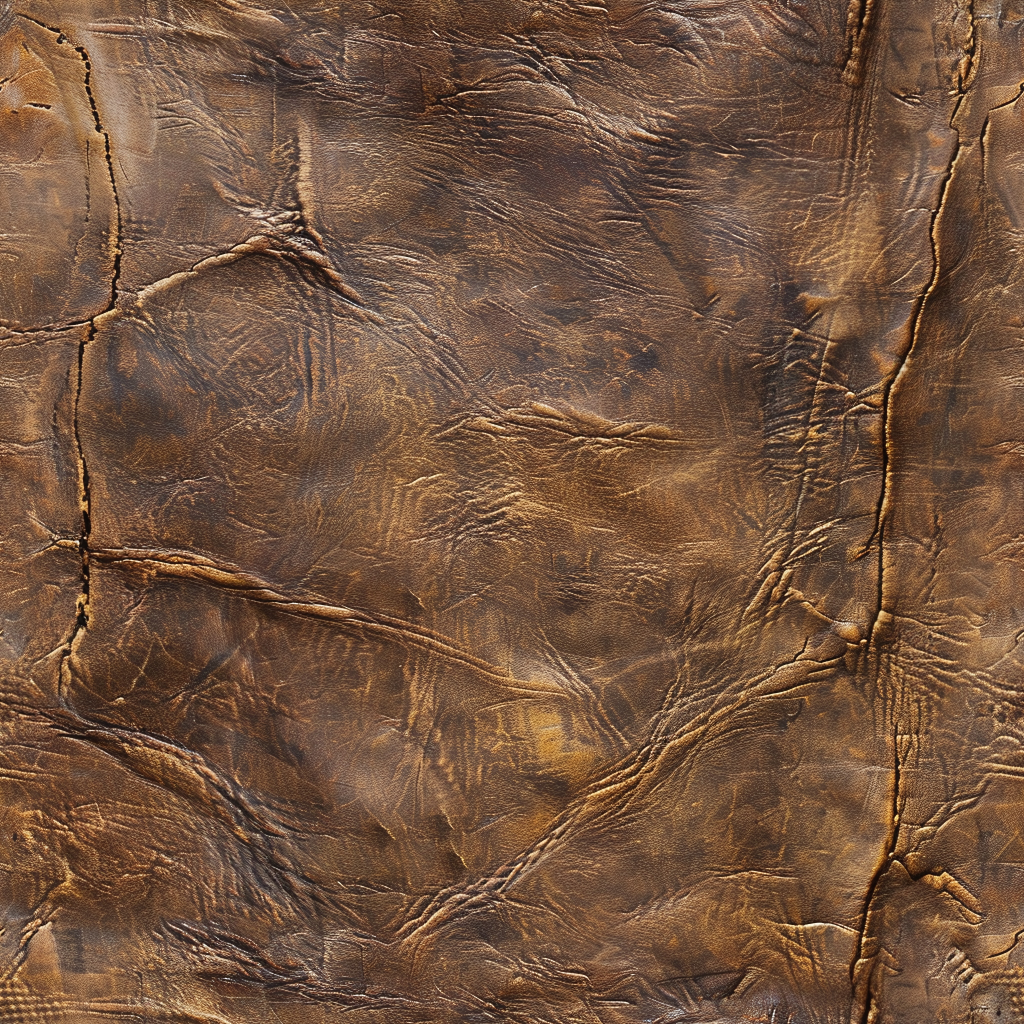 Seamless 3D Tan Cracked Leather PBR Texture Featuring Visible Stitching and Natural Grain