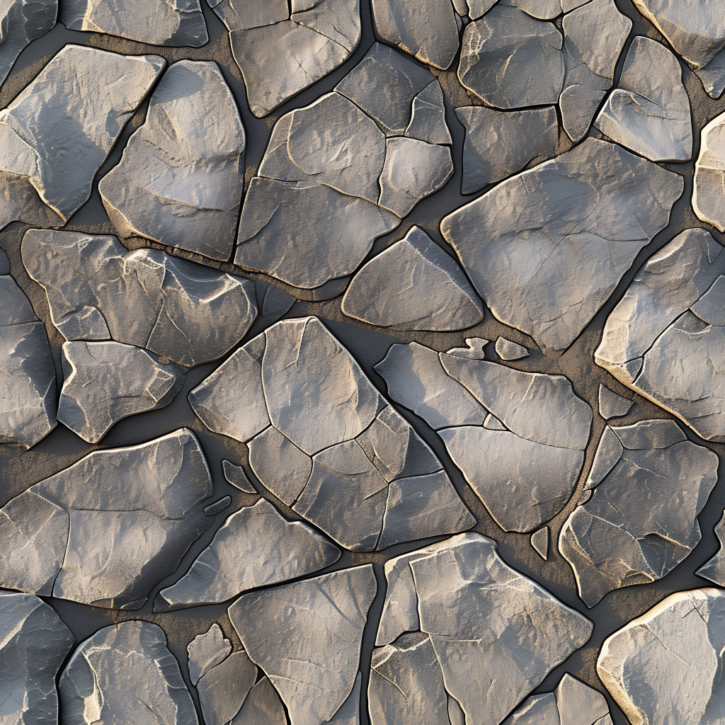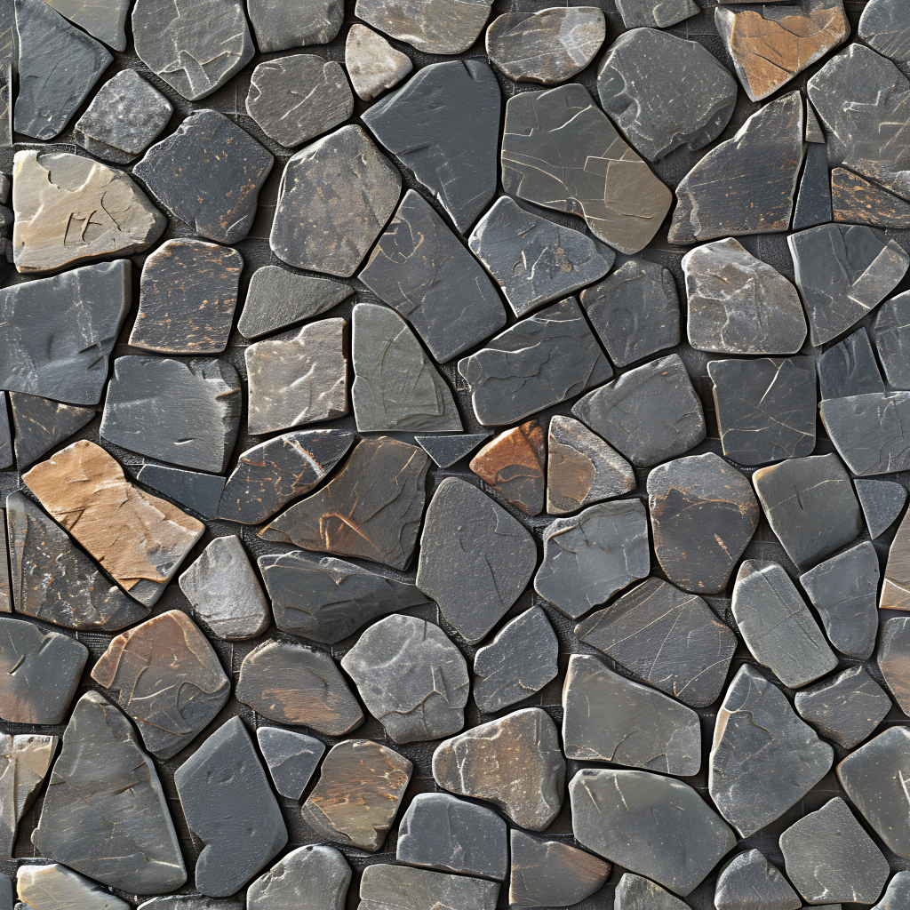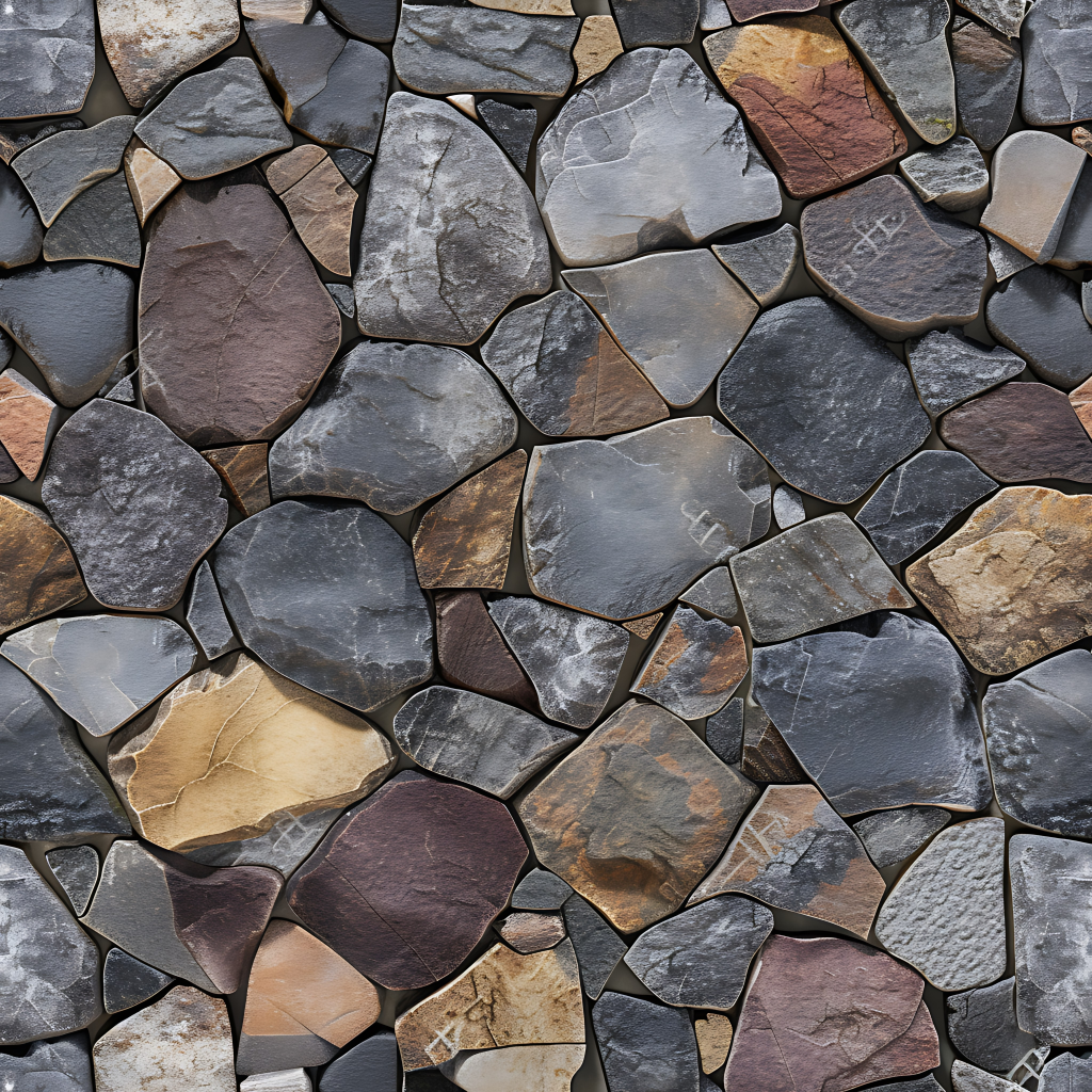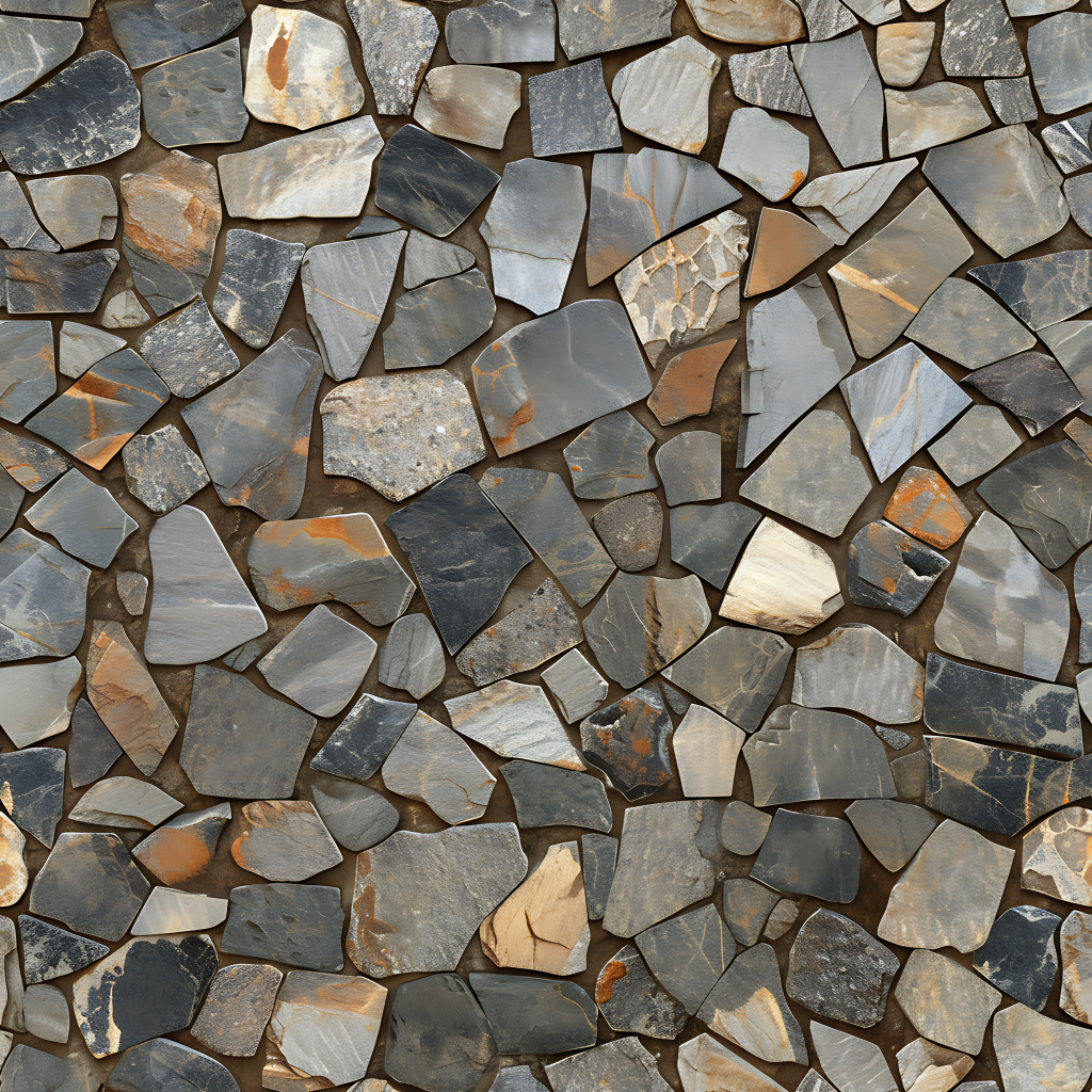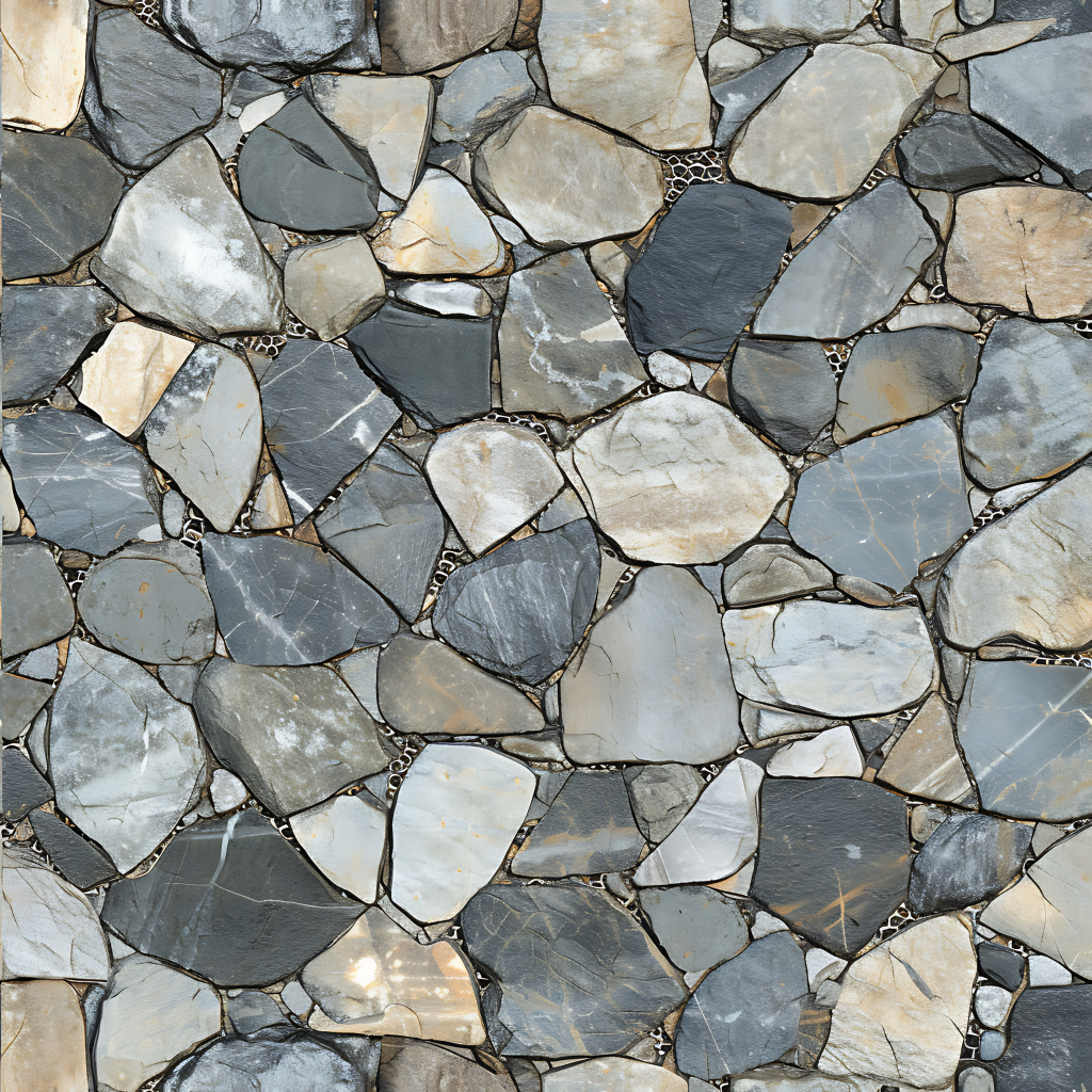 Seamless 3d texture pbr 8k stone tiles mosaic with rough finish and natural stone elements