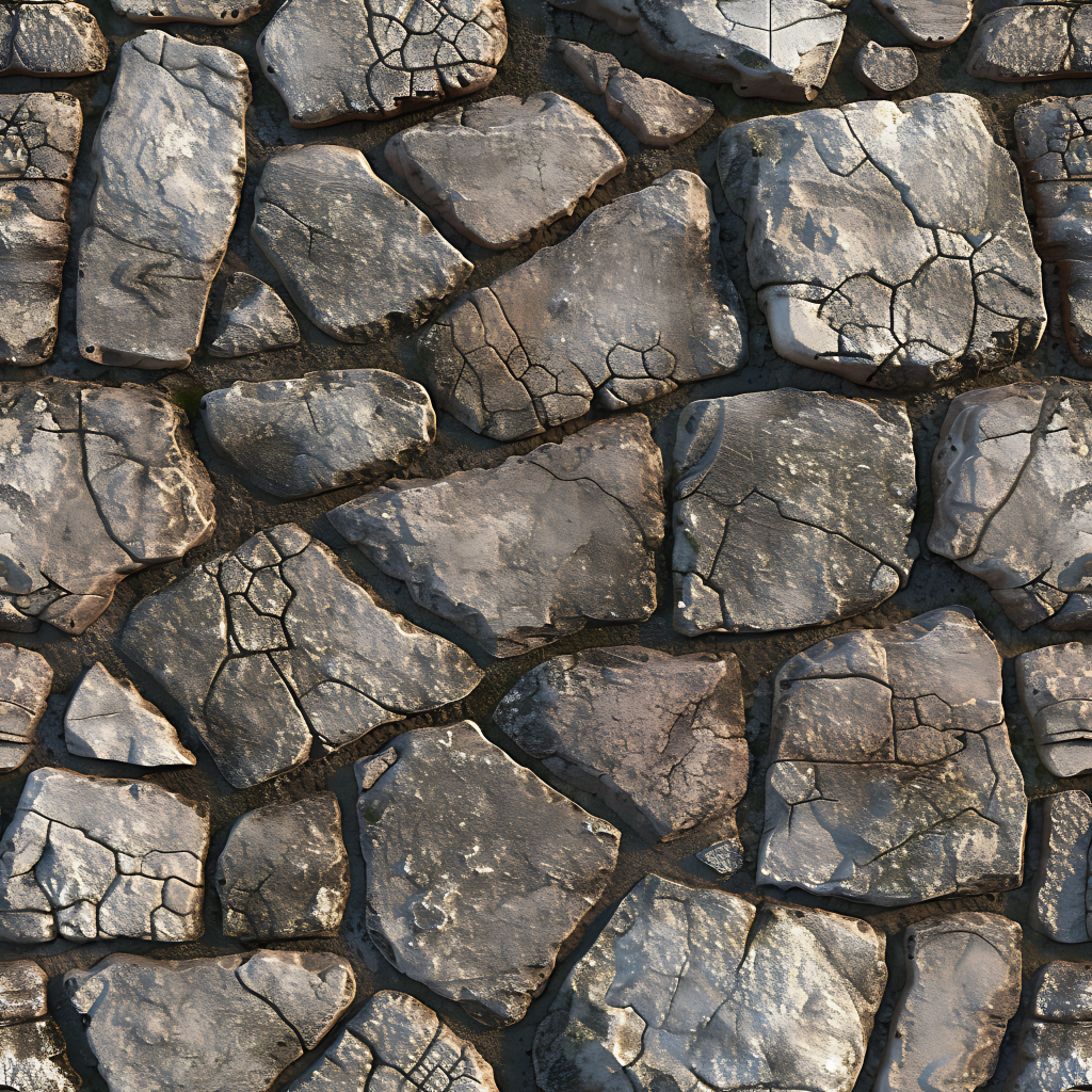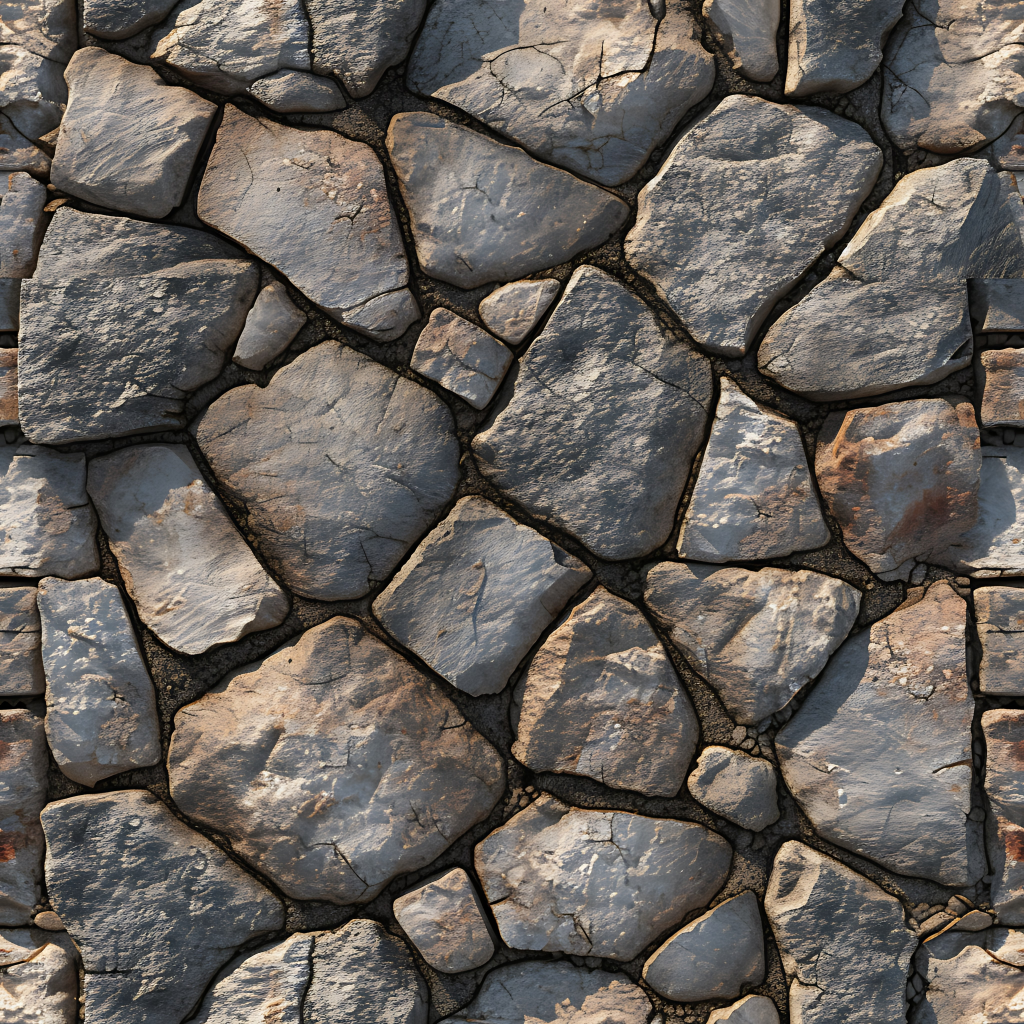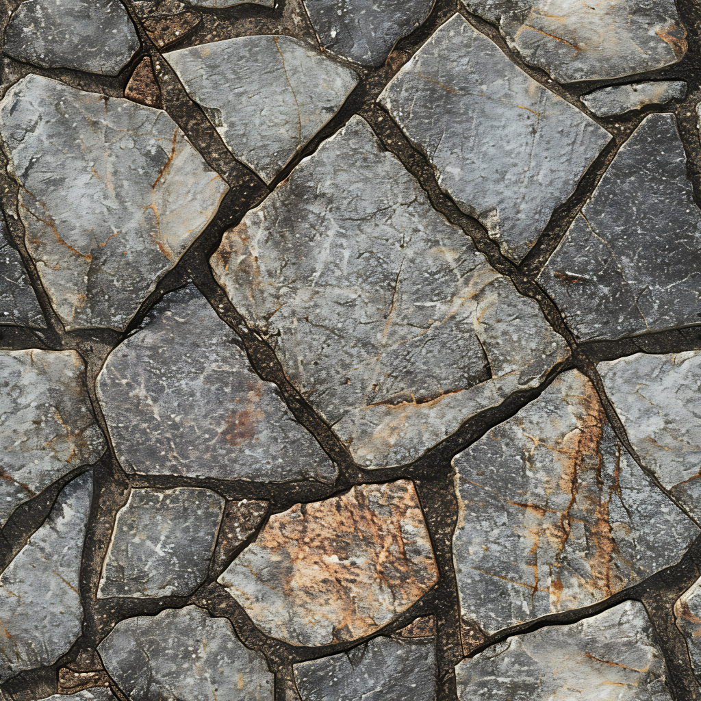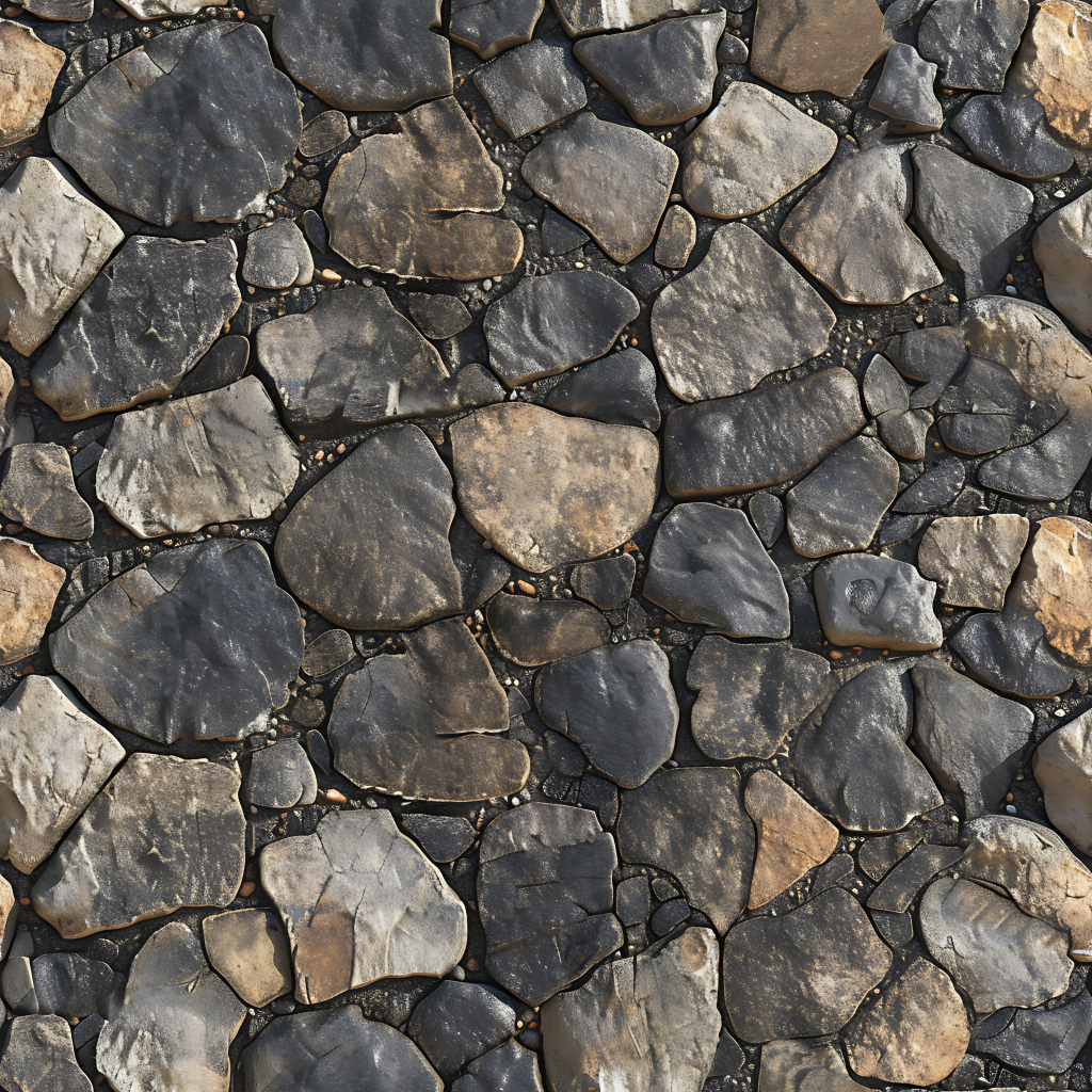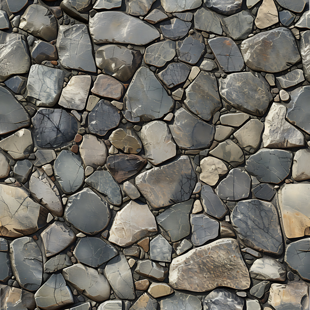 Seamless 3d texture pbr 8k stone tiles mosaic with rough finish and natural stone elements