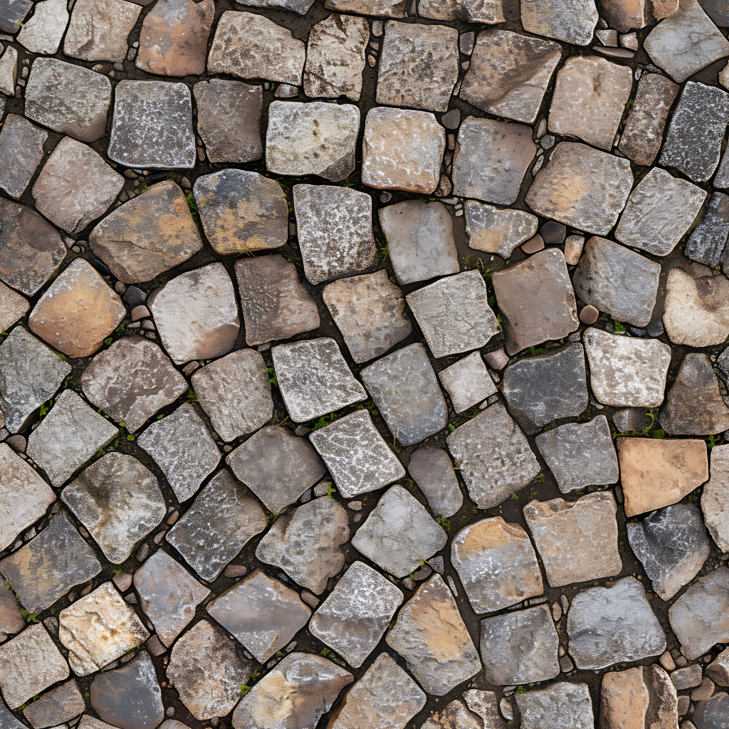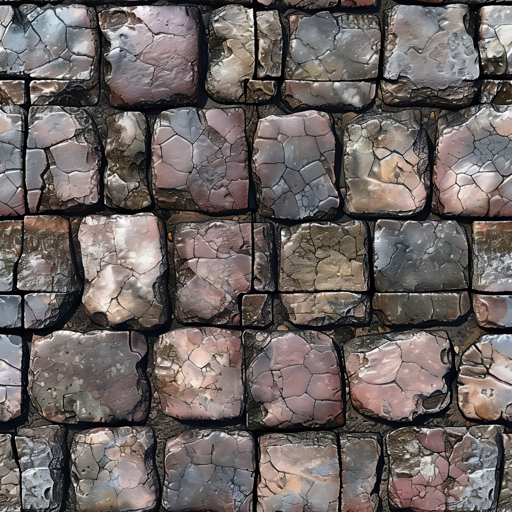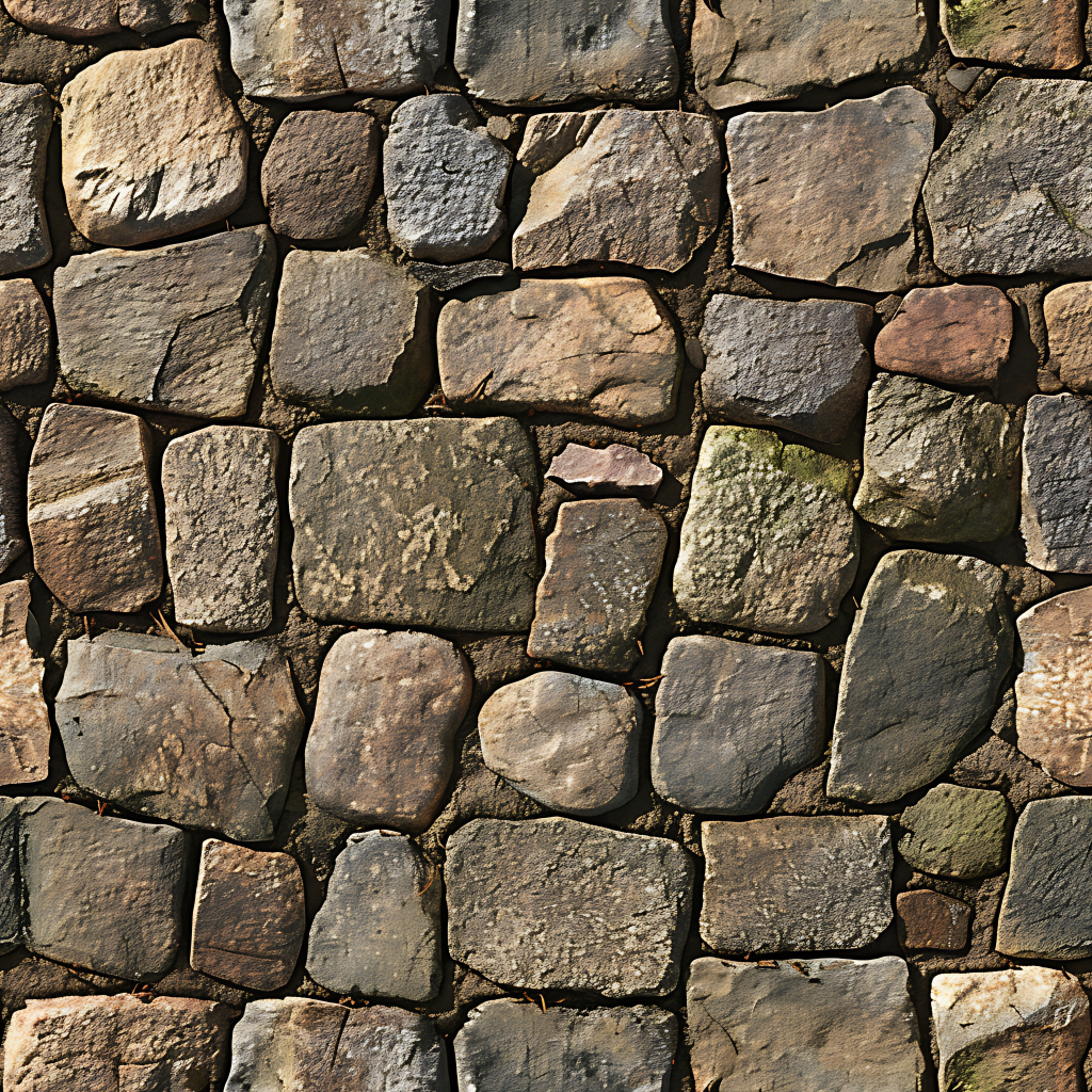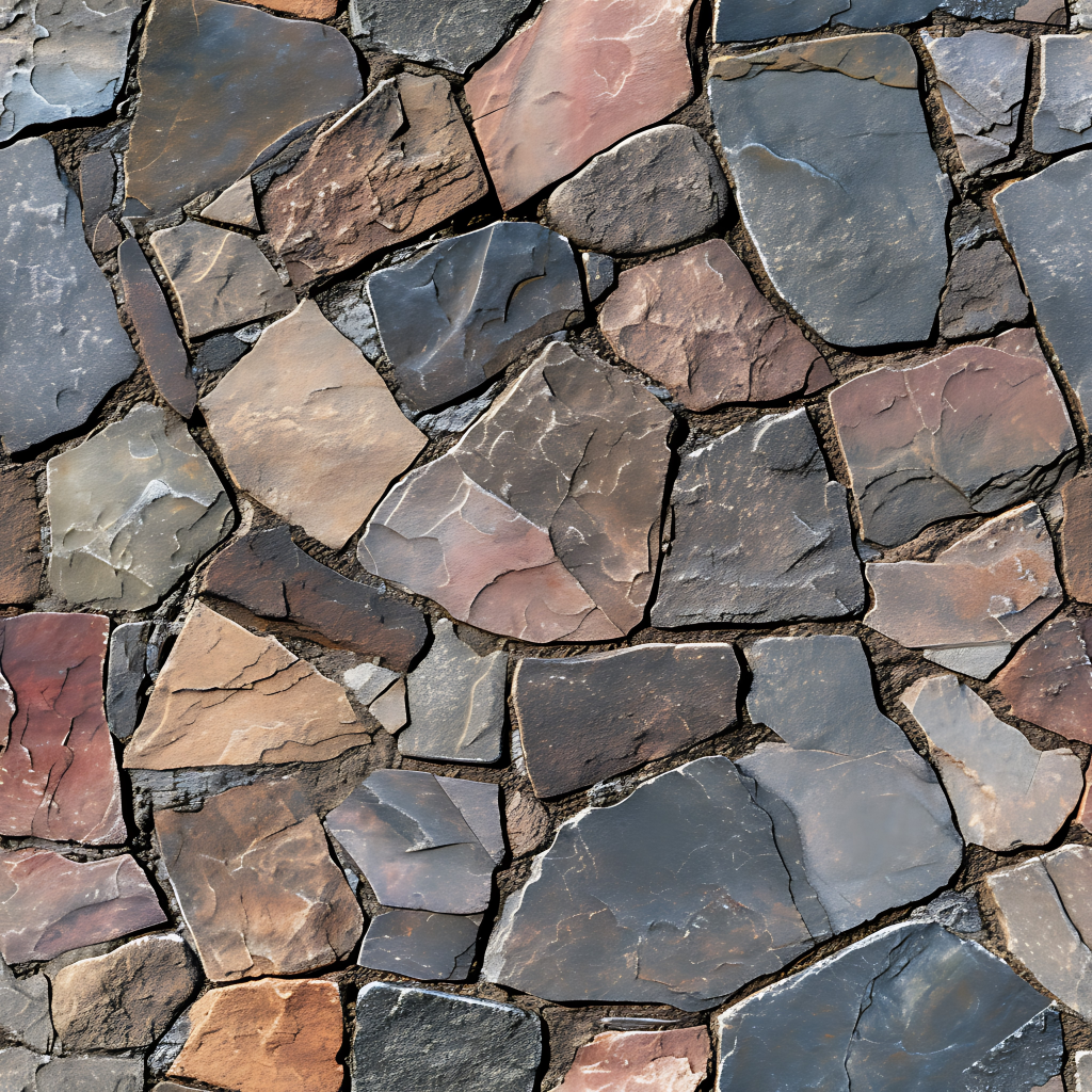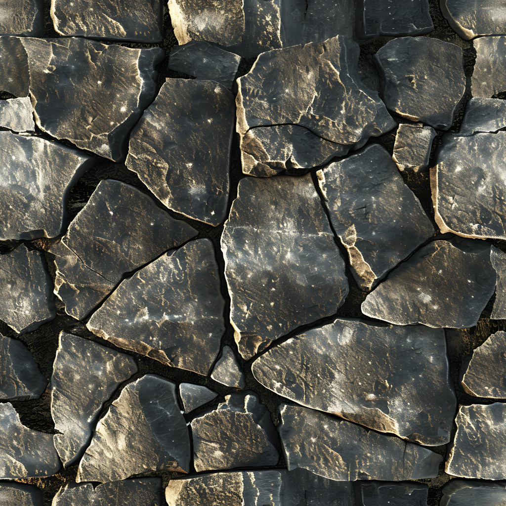 Seamless 3d texture pbr 8k stone tiles mosaic with rough finish and natural stone elements