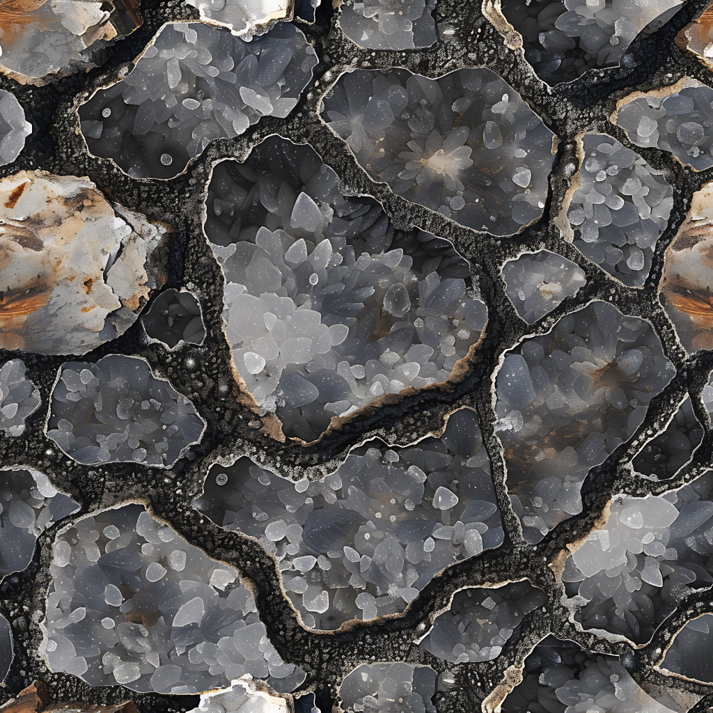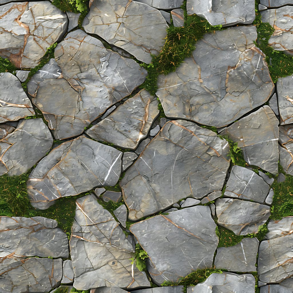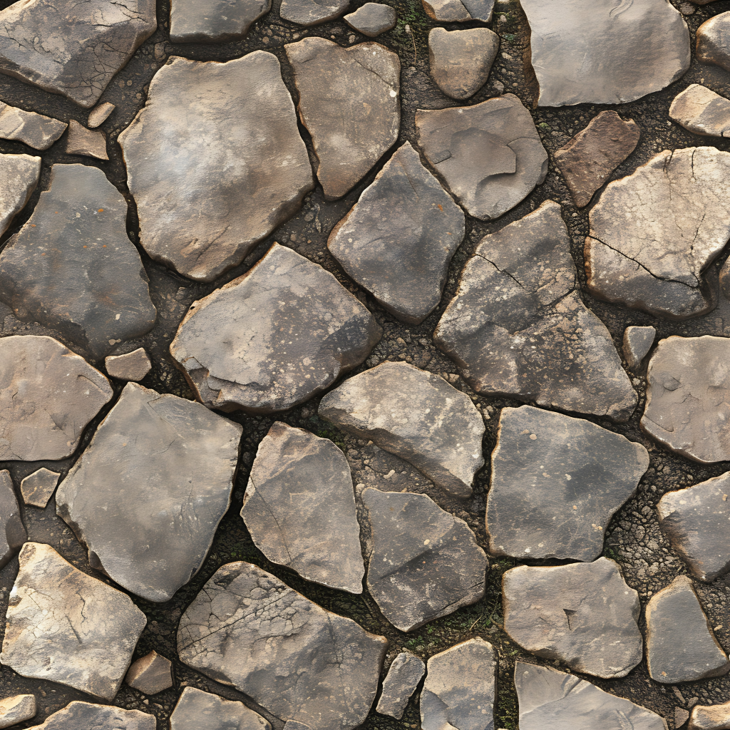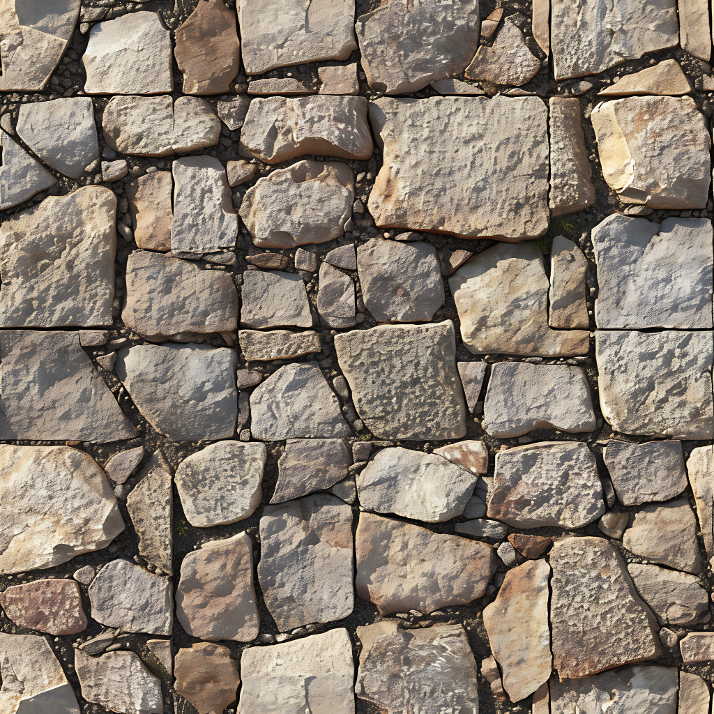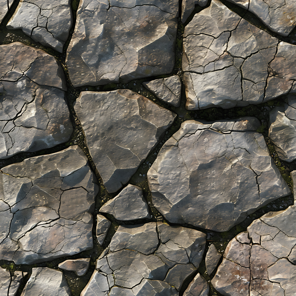 Seamless 3d texture pbr 8k stone tiles mosaic with rough finish and natural stone elements