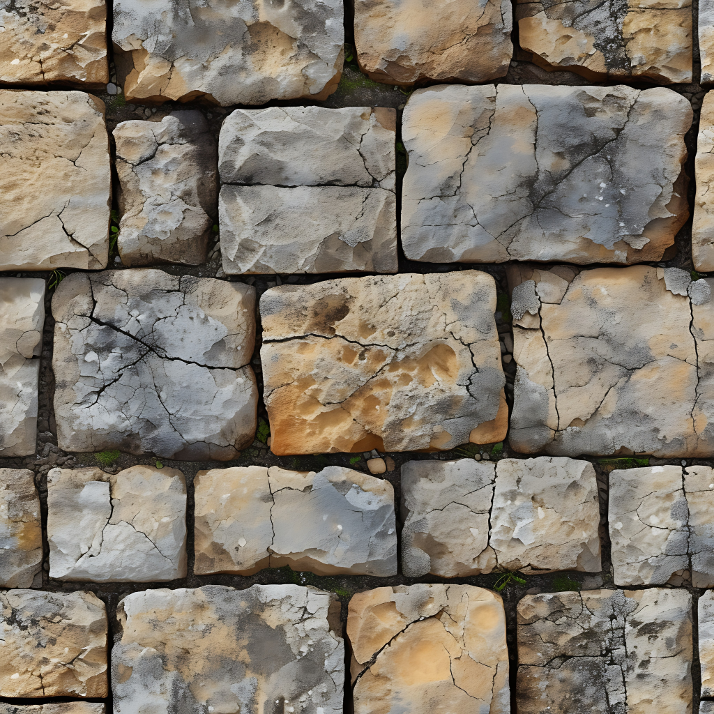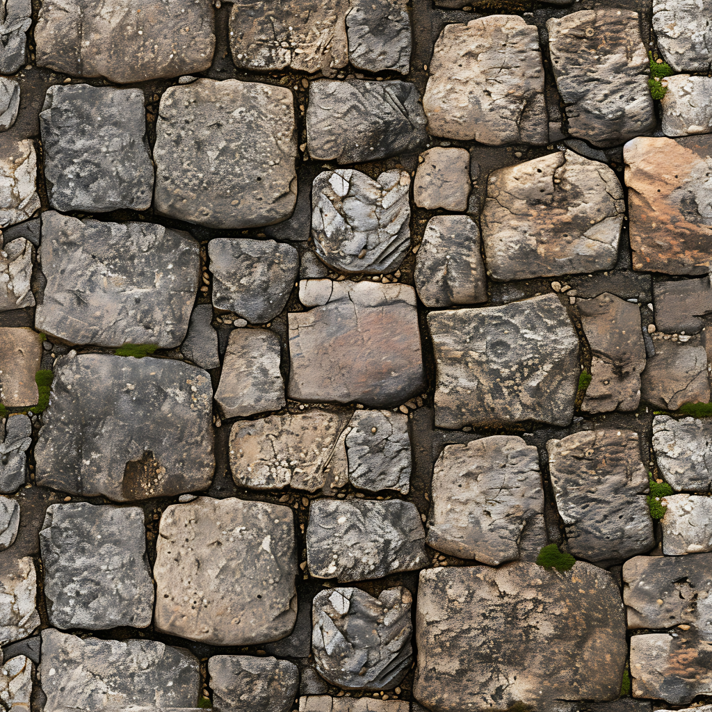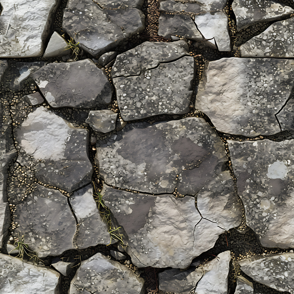 Seamless 3d texture pbr 8k grout lines mosaic with weathered stone and rough stone texture surface