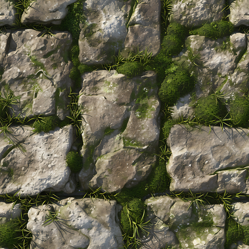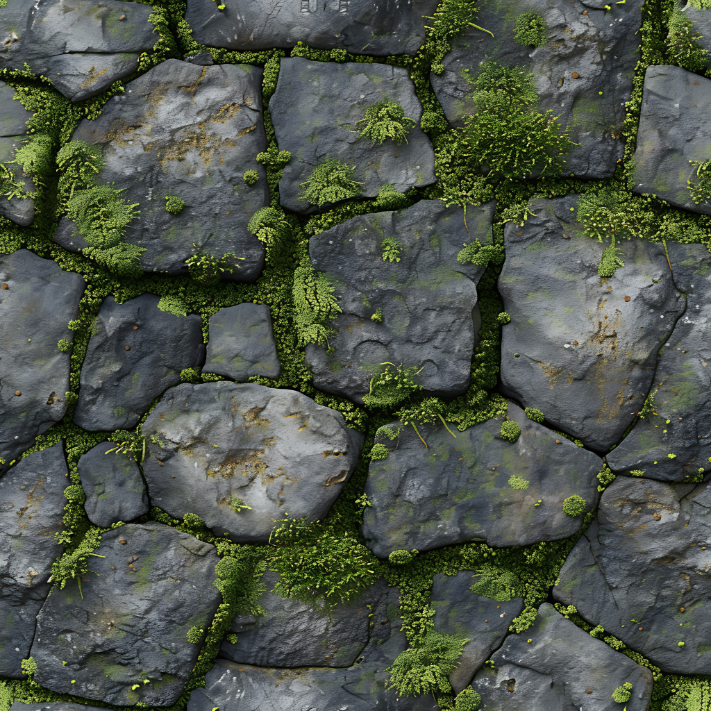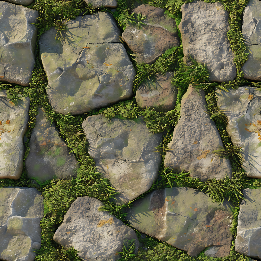 Seamless 3d texture pbr 8k grout lines mosaic with weathered stone and rough stone texture surface