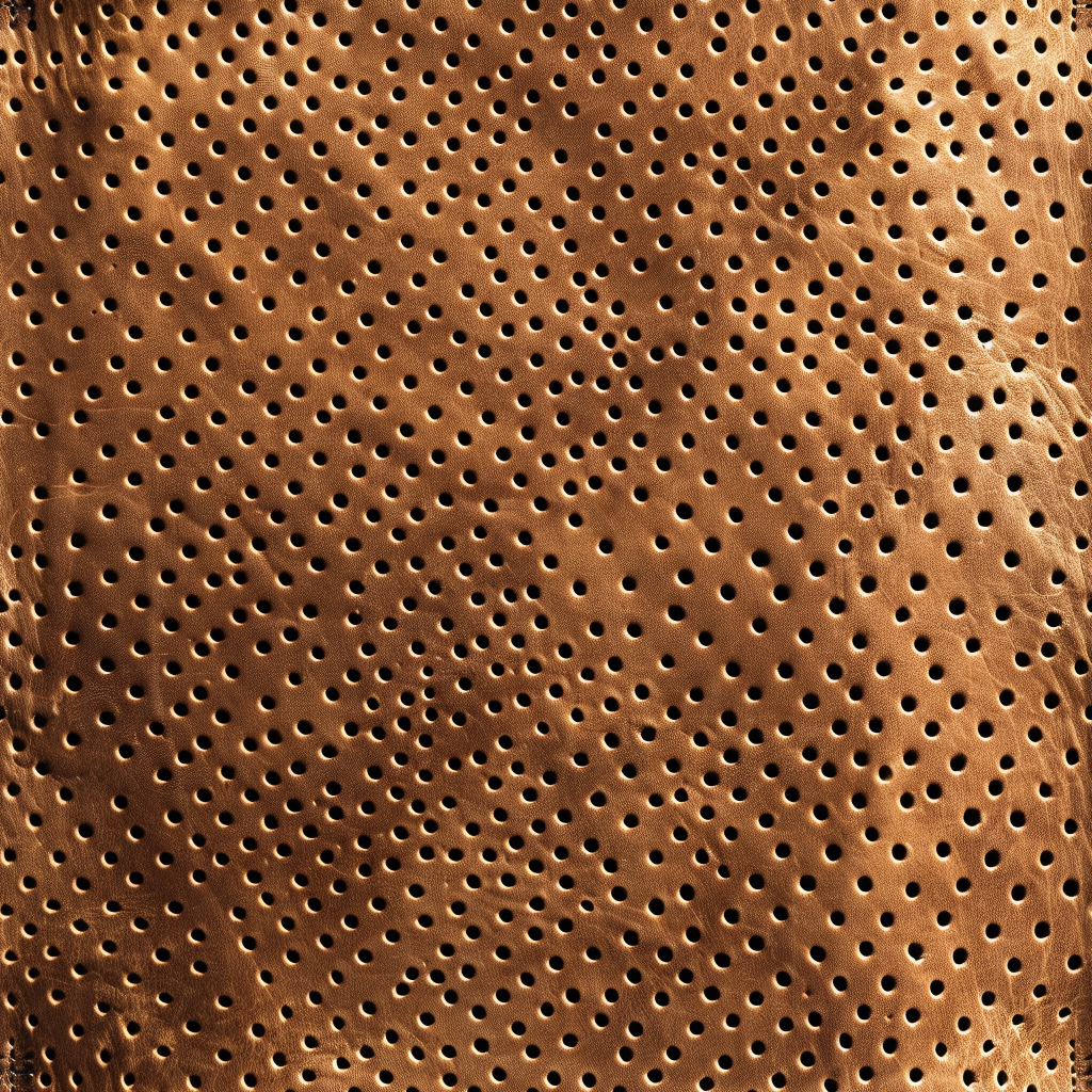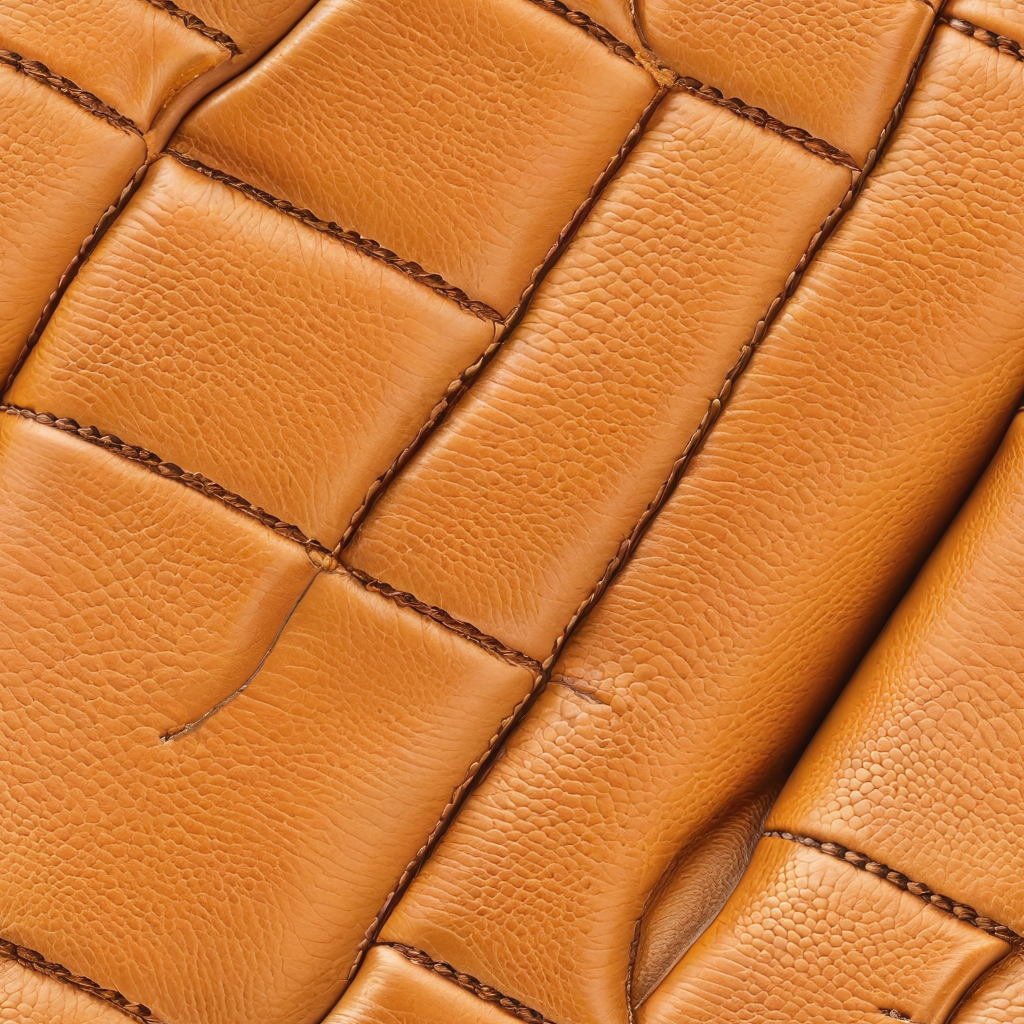 Seamless 3D Pebbled Golden Tan Leather PBR Texture with Detailed Stitching and Padded Panels