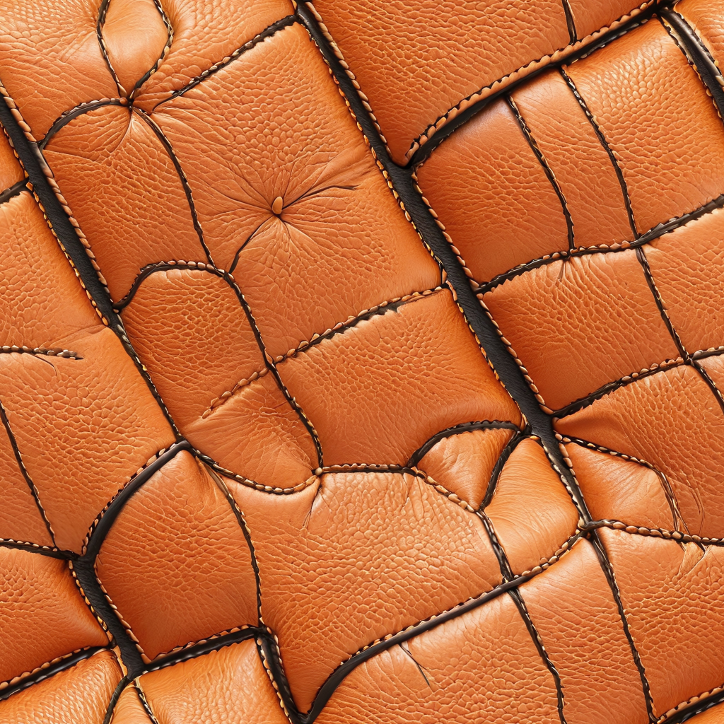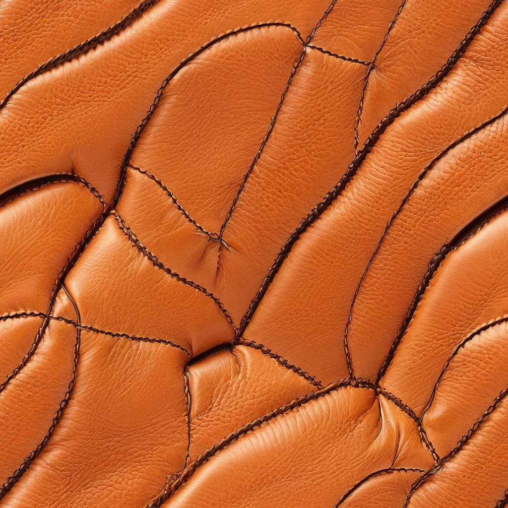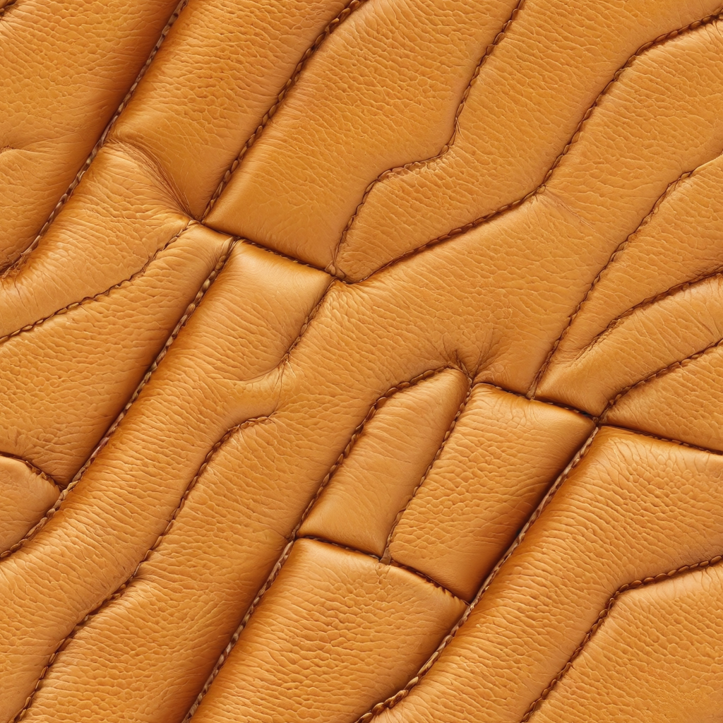 Seamless 3D PBR Quilted Orange Leather Upholstery Texture with Detailed Stitching