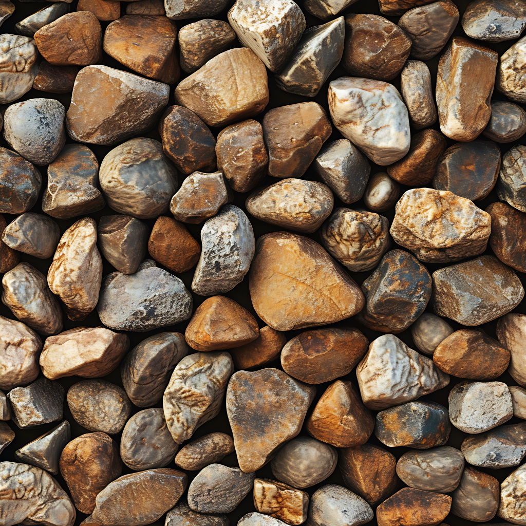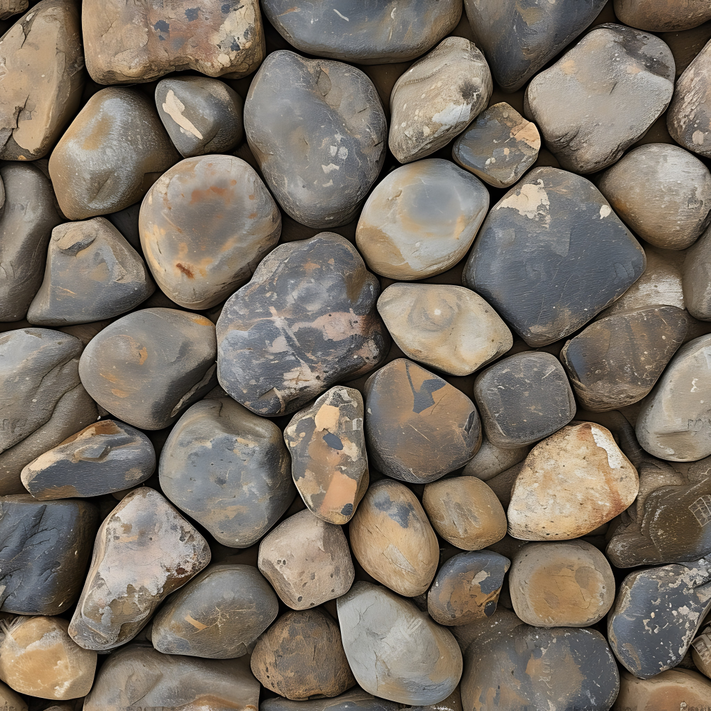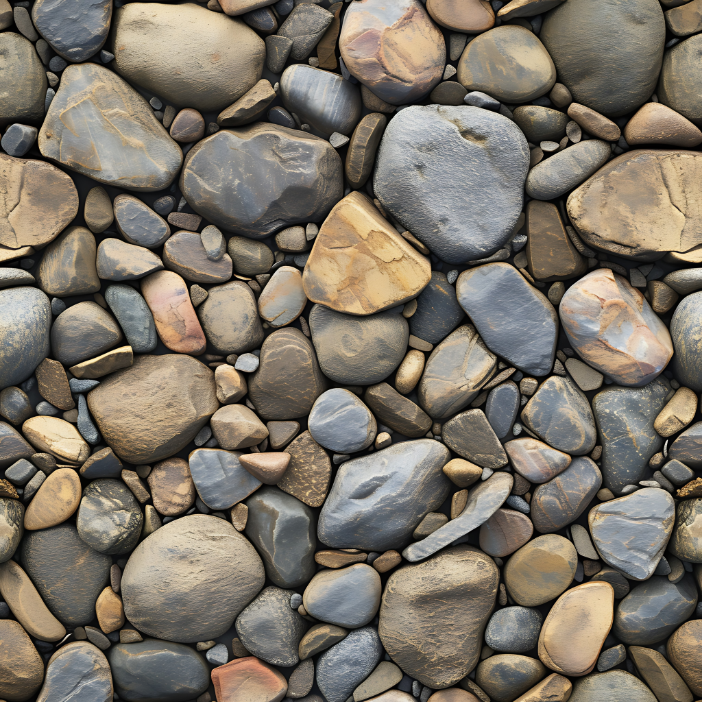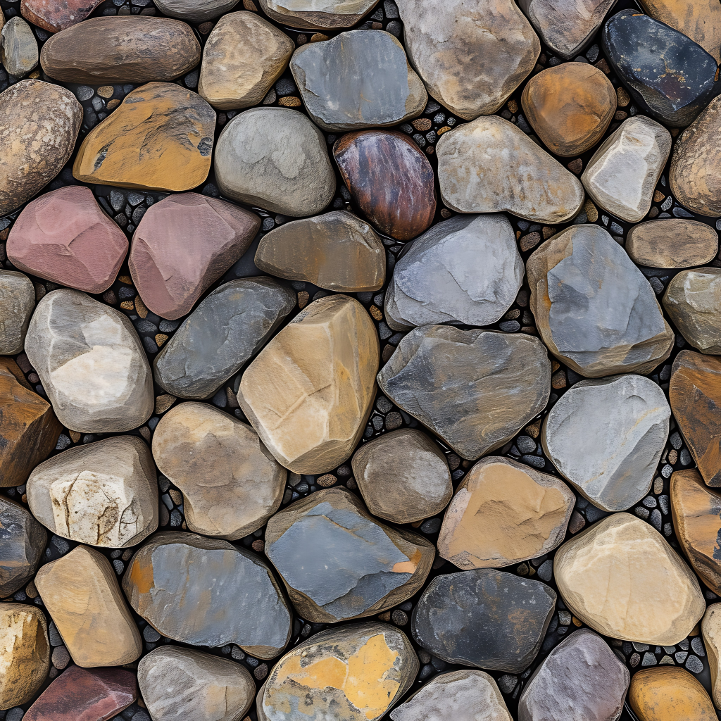 Seamless 3d texture pbr 8k mosaic river stones with rough surface and earth tones