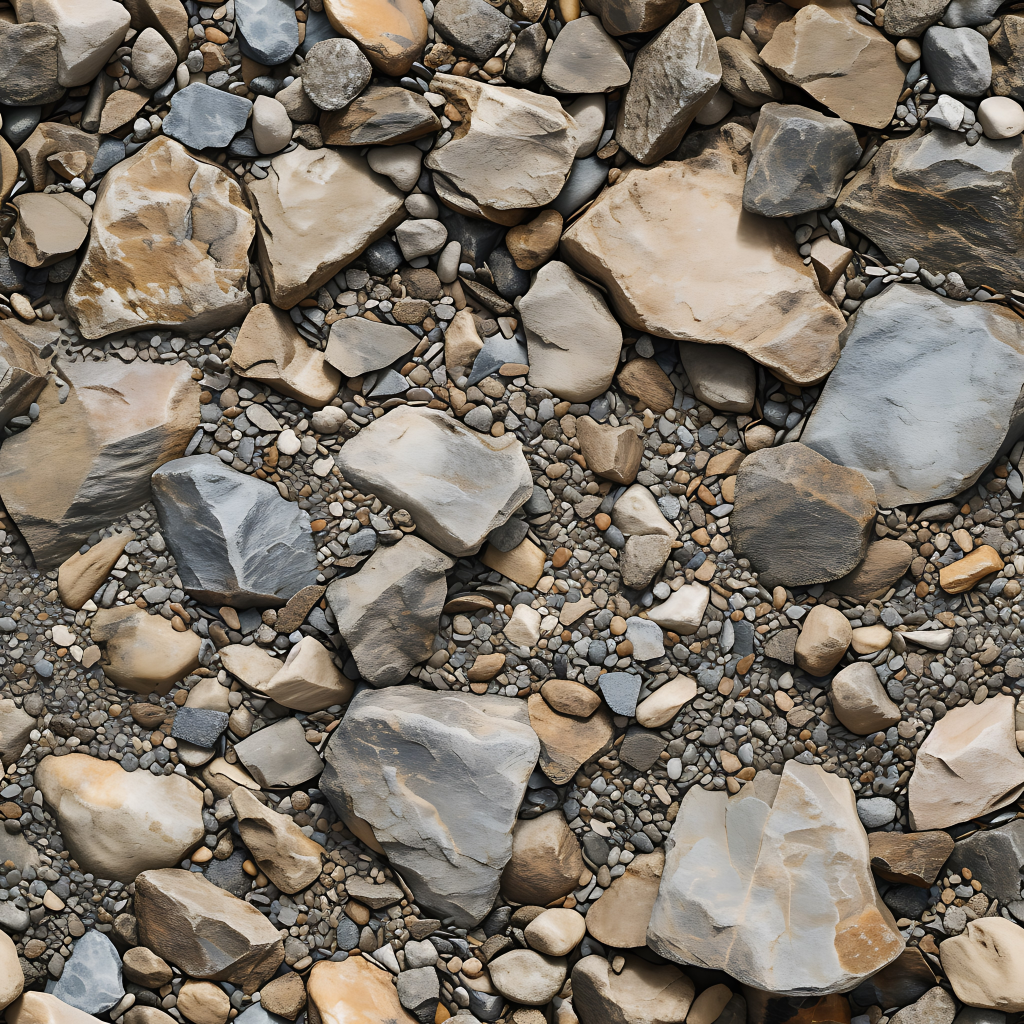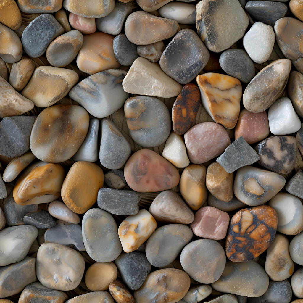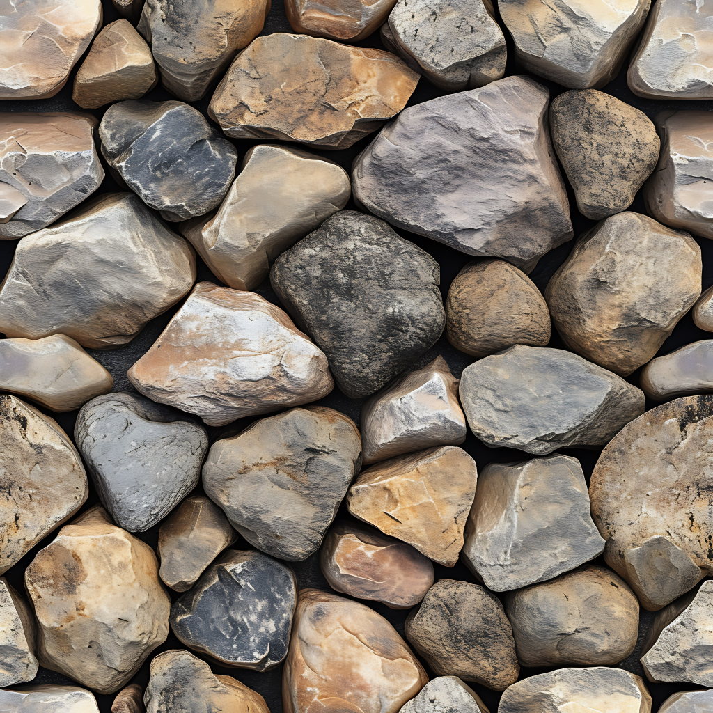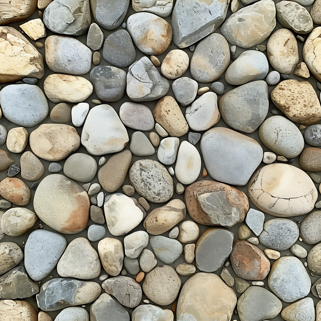 Seamless 3d texture pbr 8k mosaic river stones with rough surface and earth tones