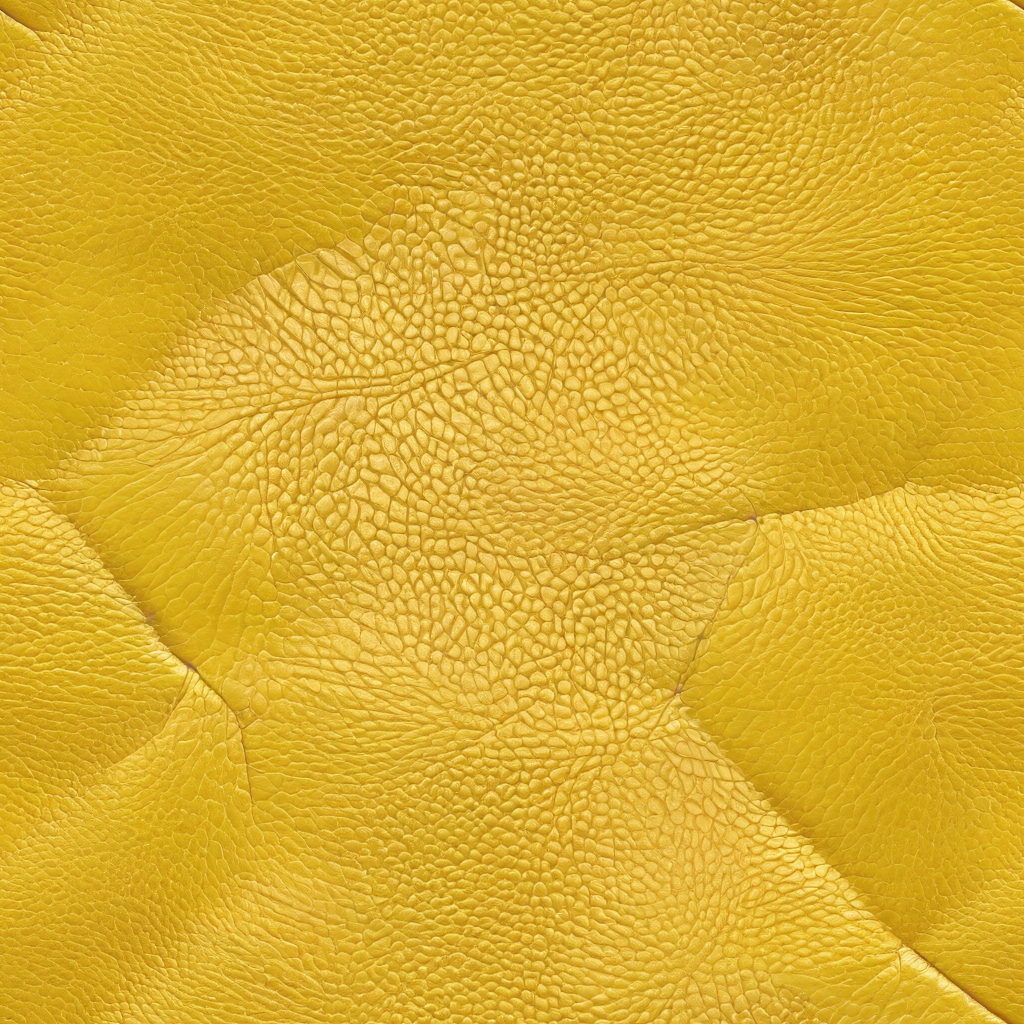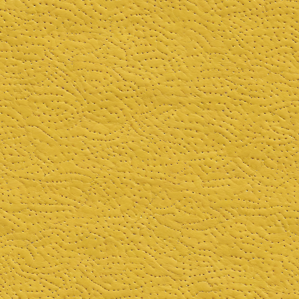 Seamless 3D PBR yellow pebbled leather texture with detailed stitching and grain