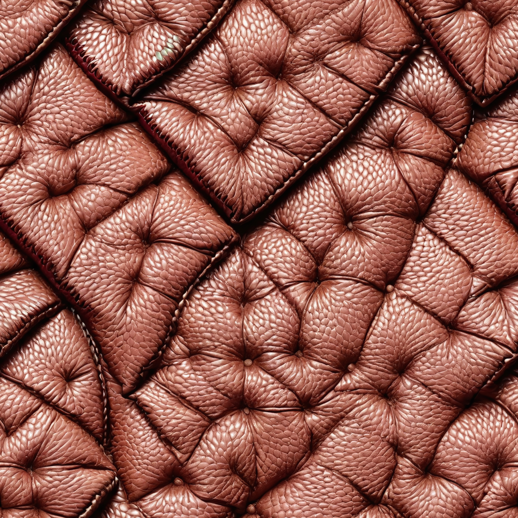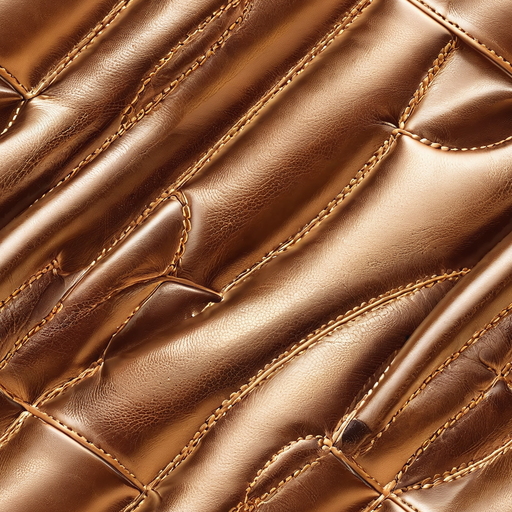 Seamless 3D PBR Padded Copper Leather Texture with Distinct Soft Cushions and Grain