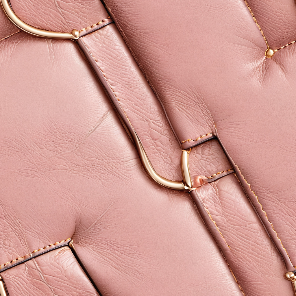 Seamless 3D PBR Pink Quilted Leather Texture with Gold Buckle Accents and Fine Grain