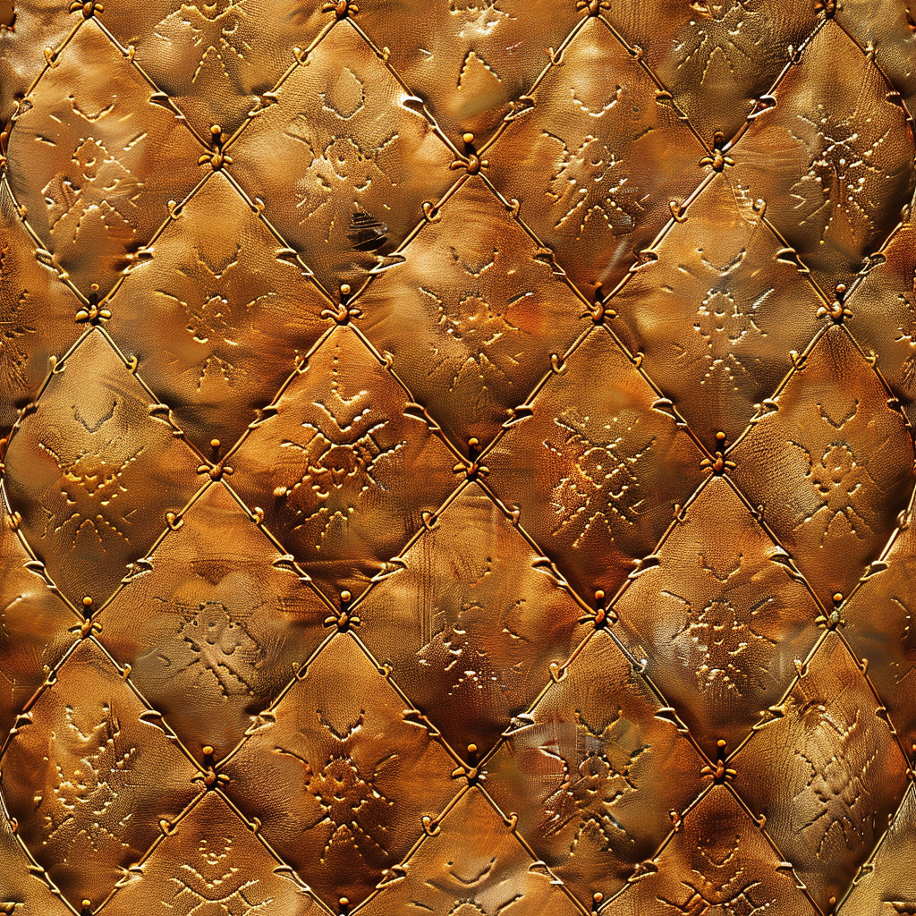 Seamless 3D PBR Golden Quilted Leather Texture with Fine Grain and Stitching
