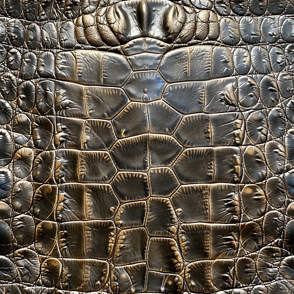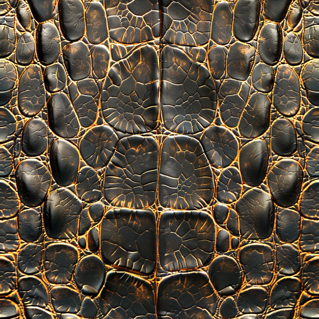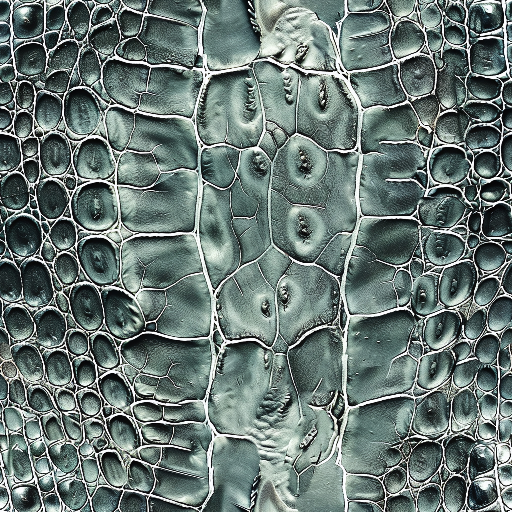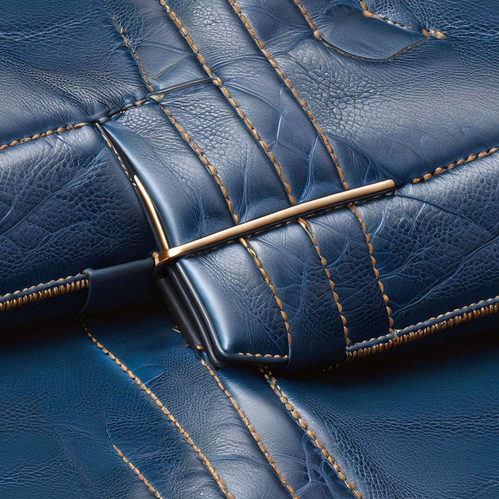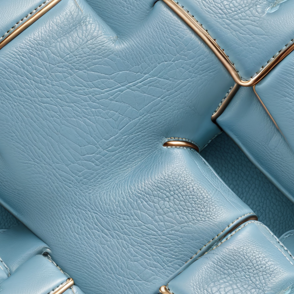 Seamless 3D Blue Crocodile Grain Leather PBR Texture with Detailed Stitching and Metallic Accents