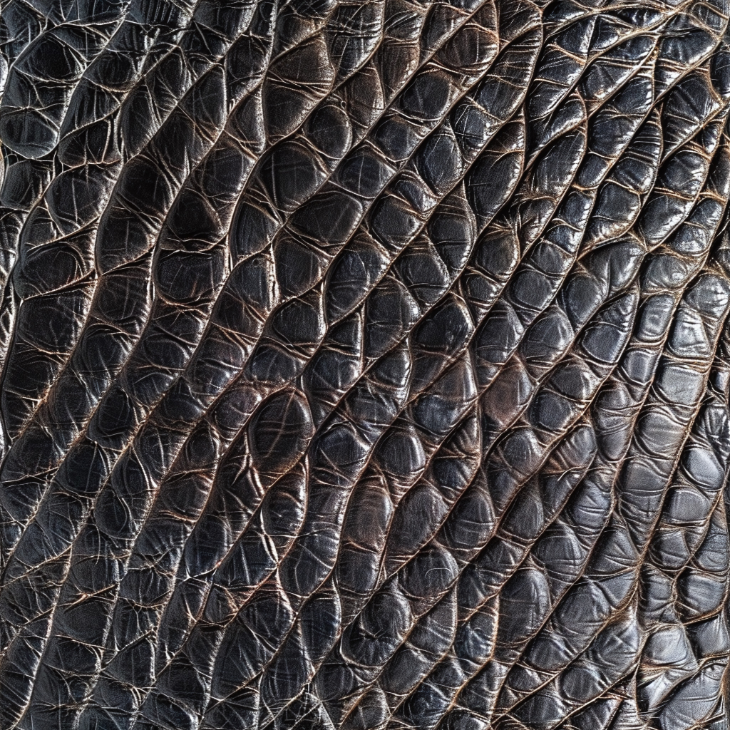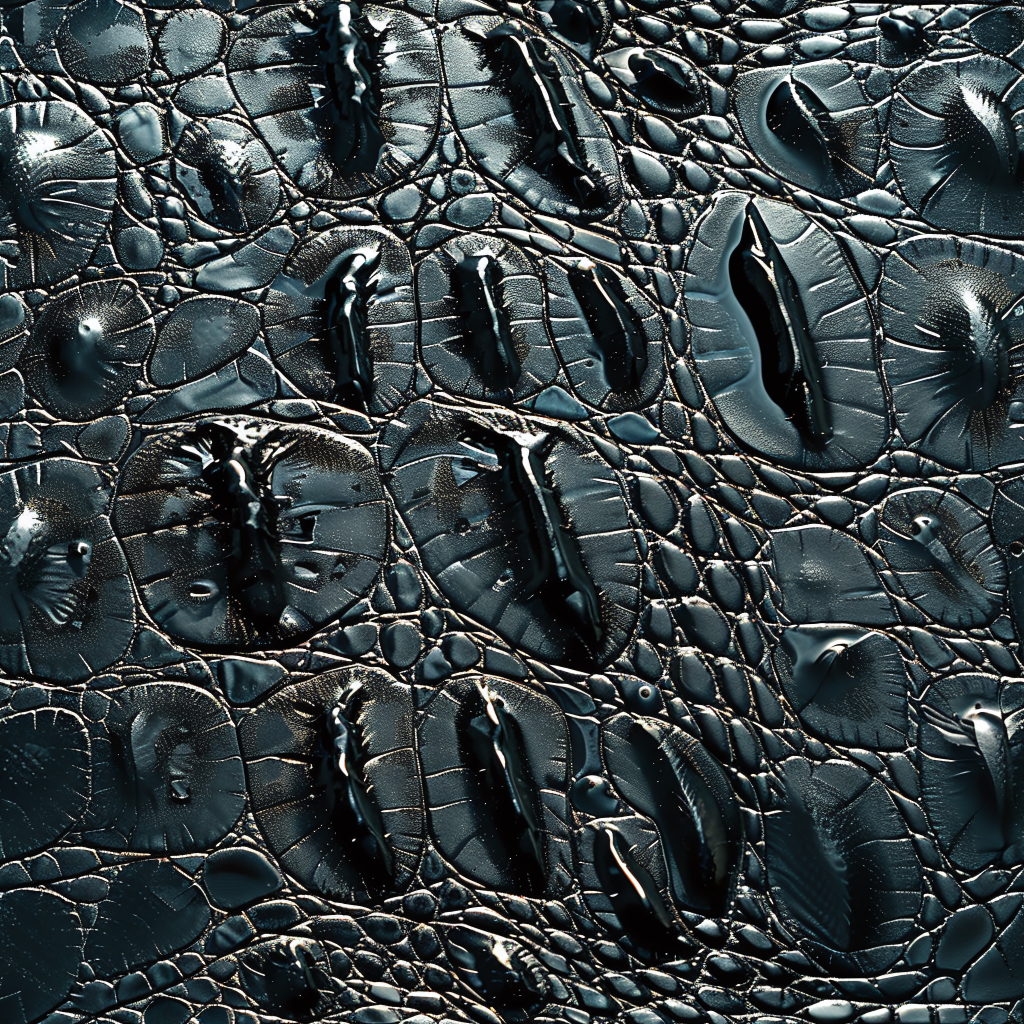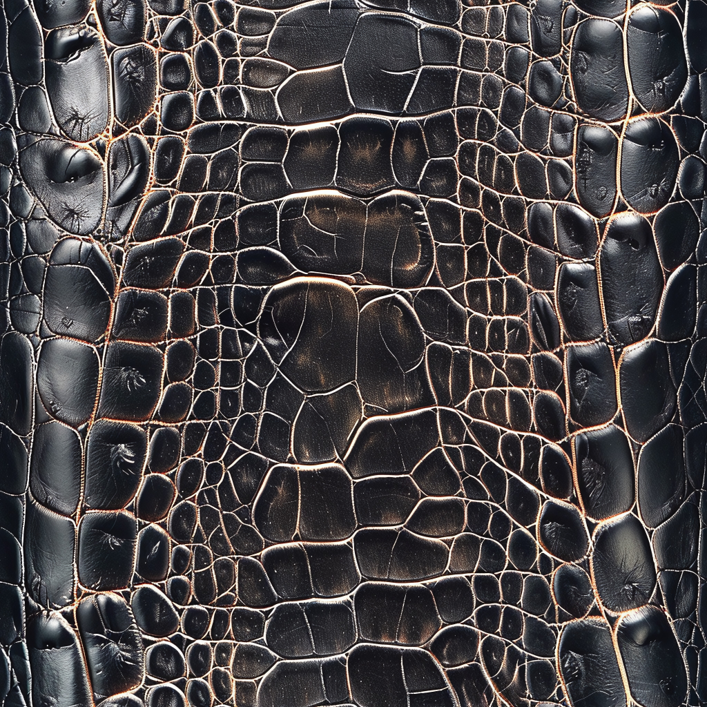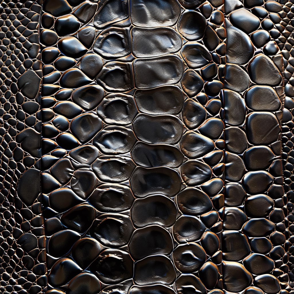 Seamless 3D Blue Crocodile Grain Leather PBR Texture with Detailed Stitching and Metallic Accents