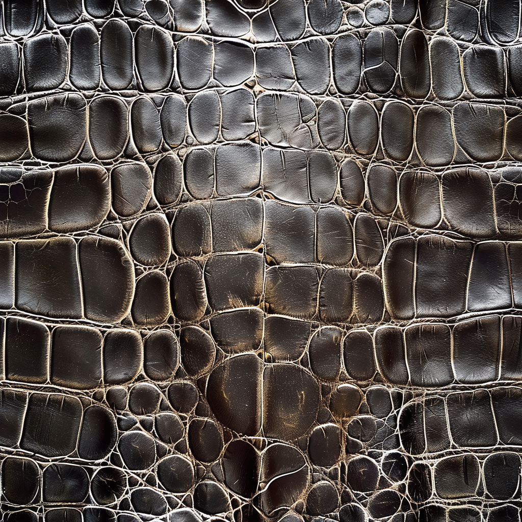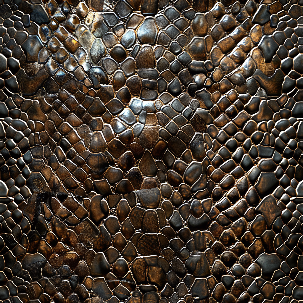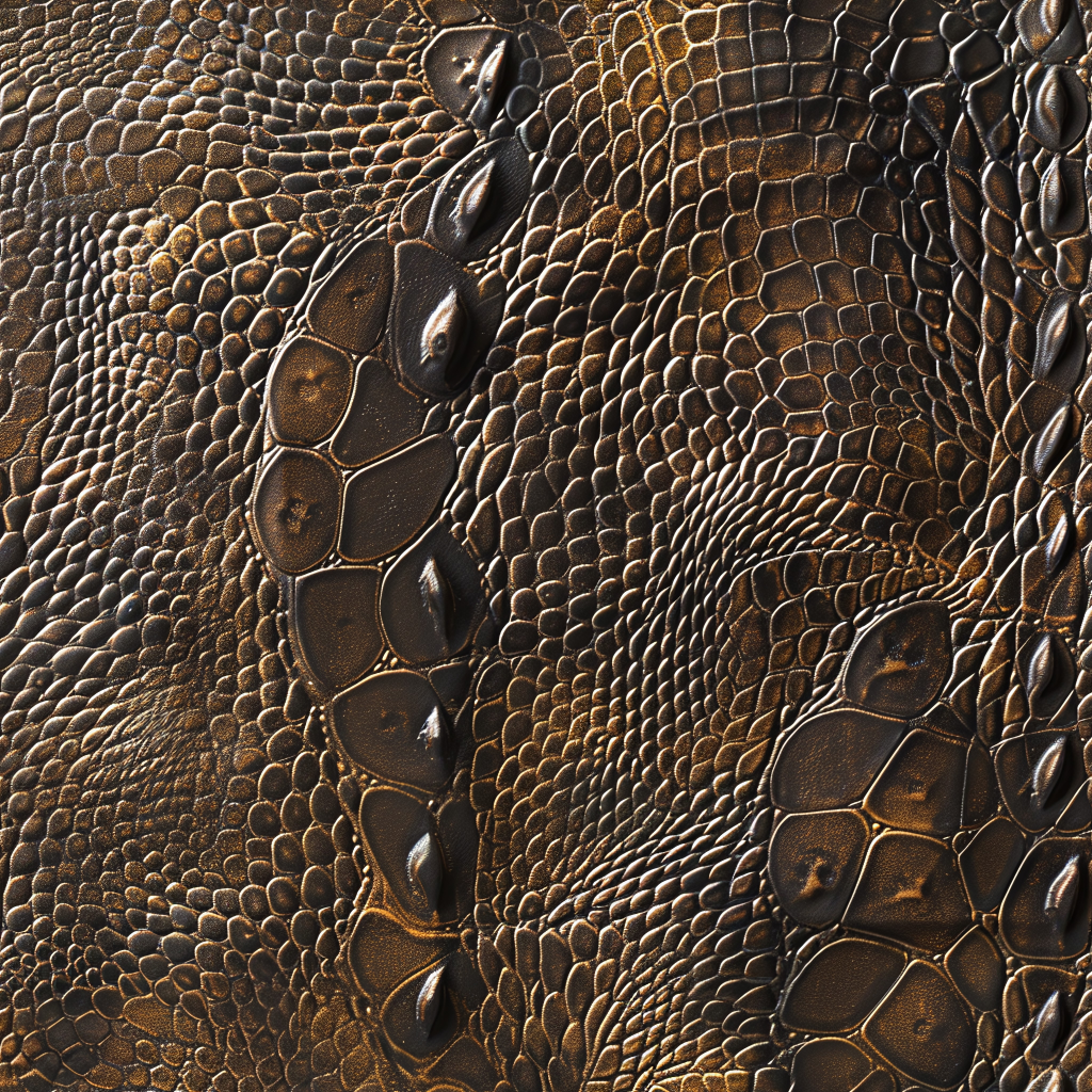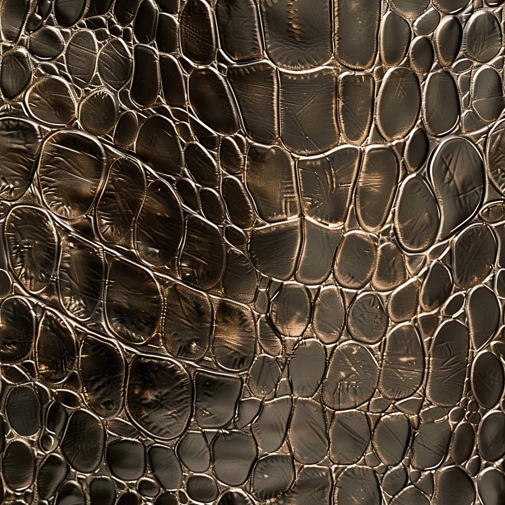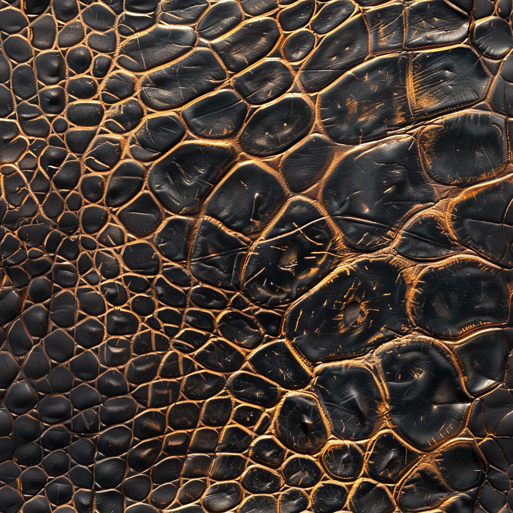 Seamless 3D Blue Crocodile Grain Leather PBR Texture with Detailed Stitching and Metallic Accents