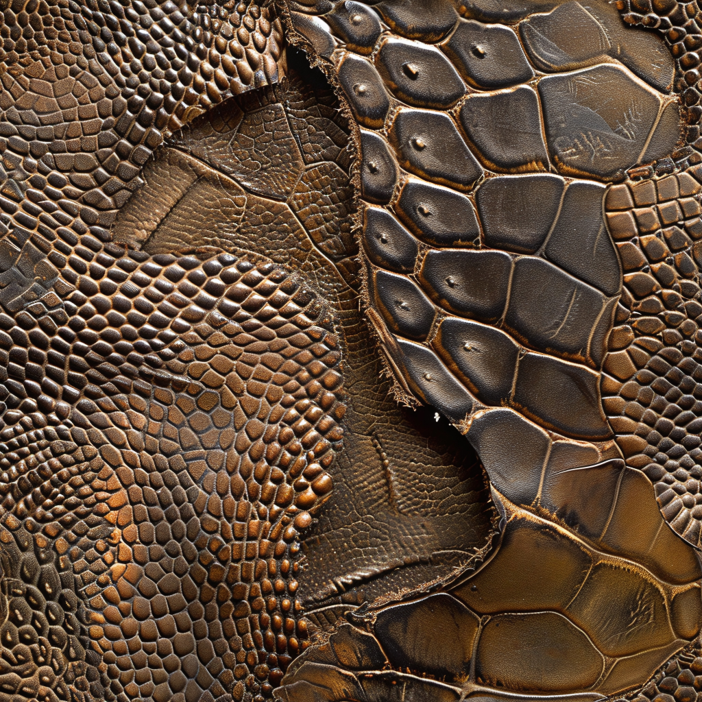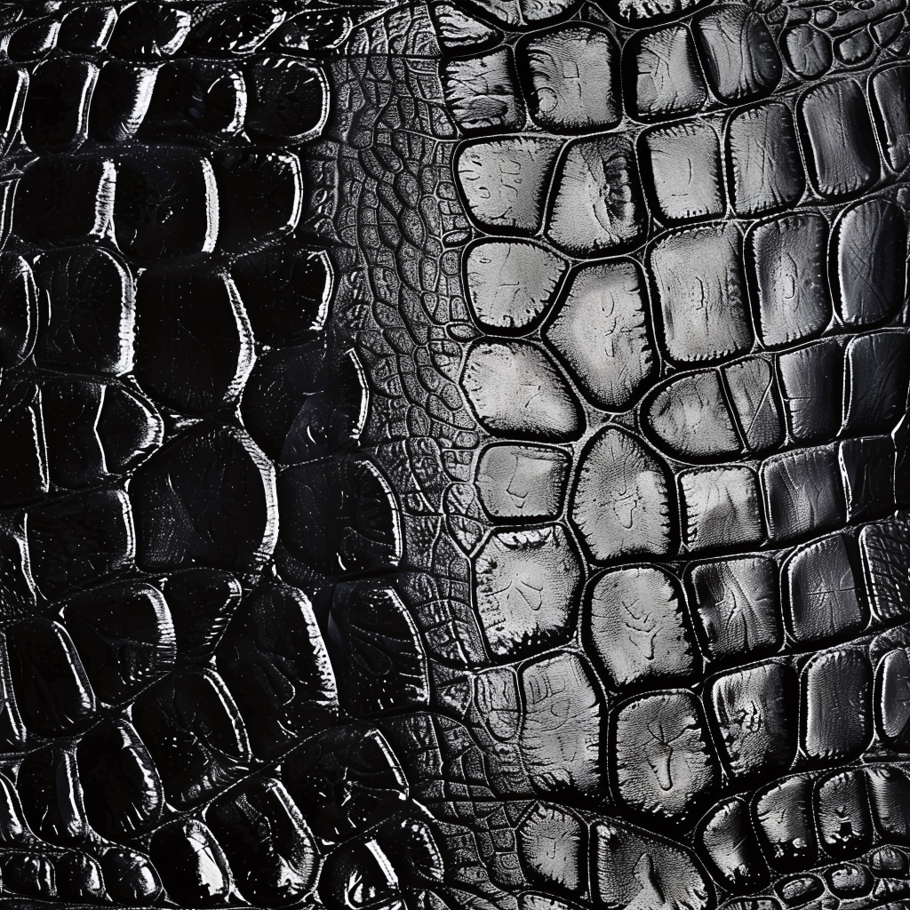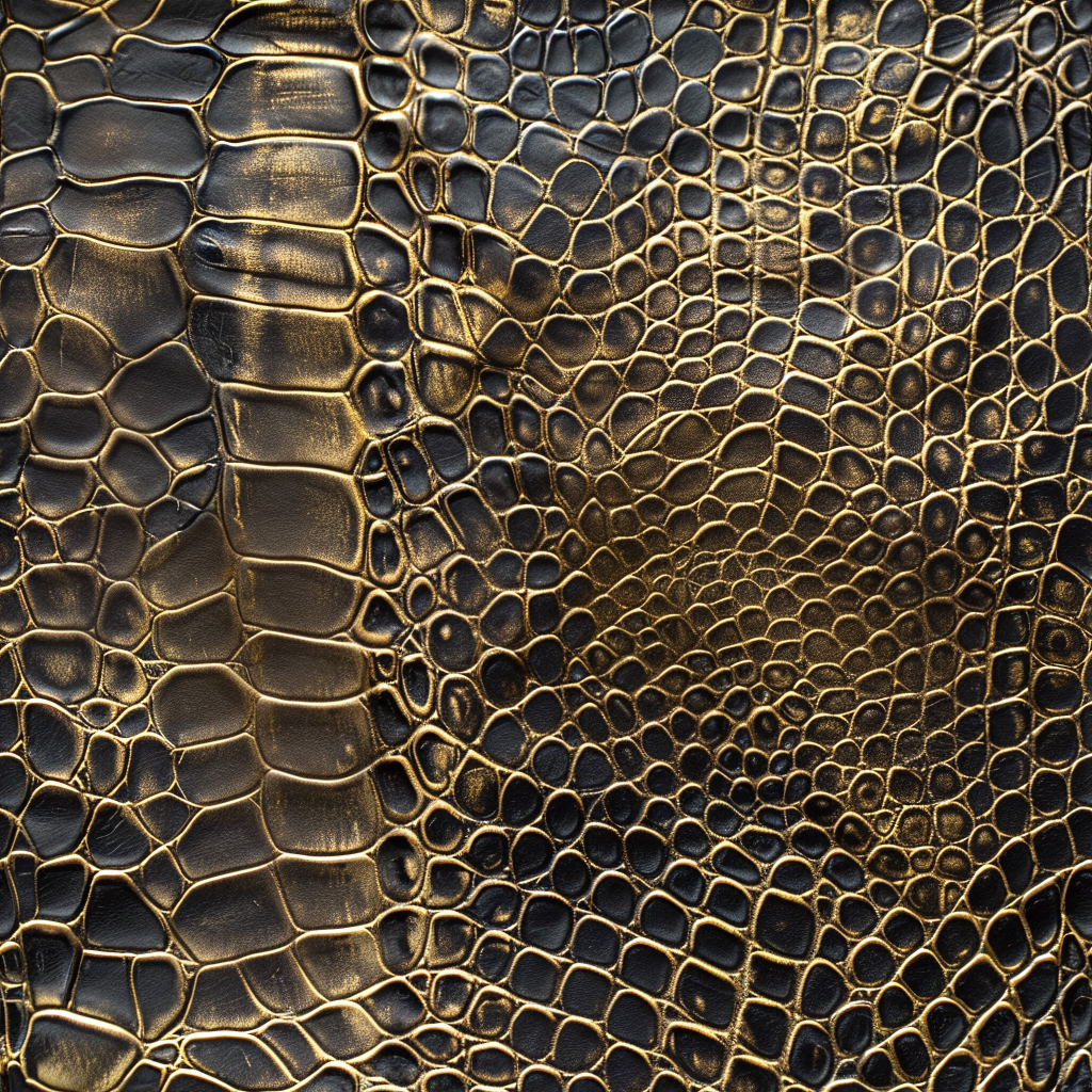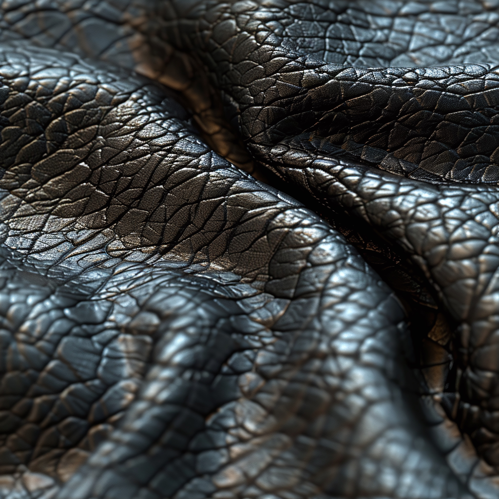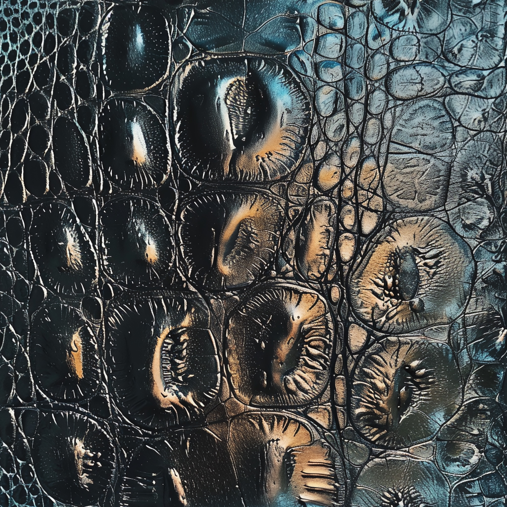 Seamless 3D Blue Crocodile Grain Leather PBR Texture with Detailed Stitching and Metallic Accents