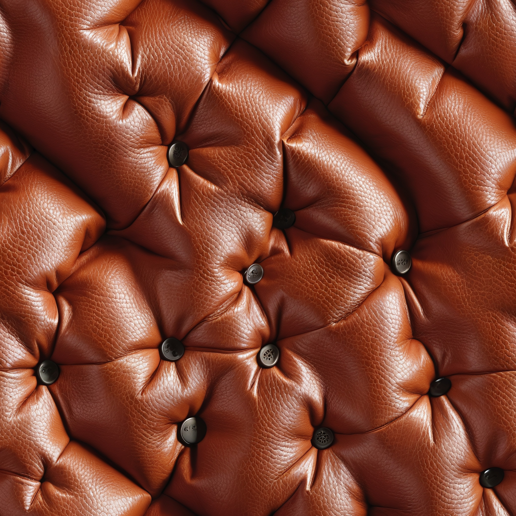 Seamless 3D PBR Texture of Tan Pebbled Leather Upholstery with Plush Quilted Padding