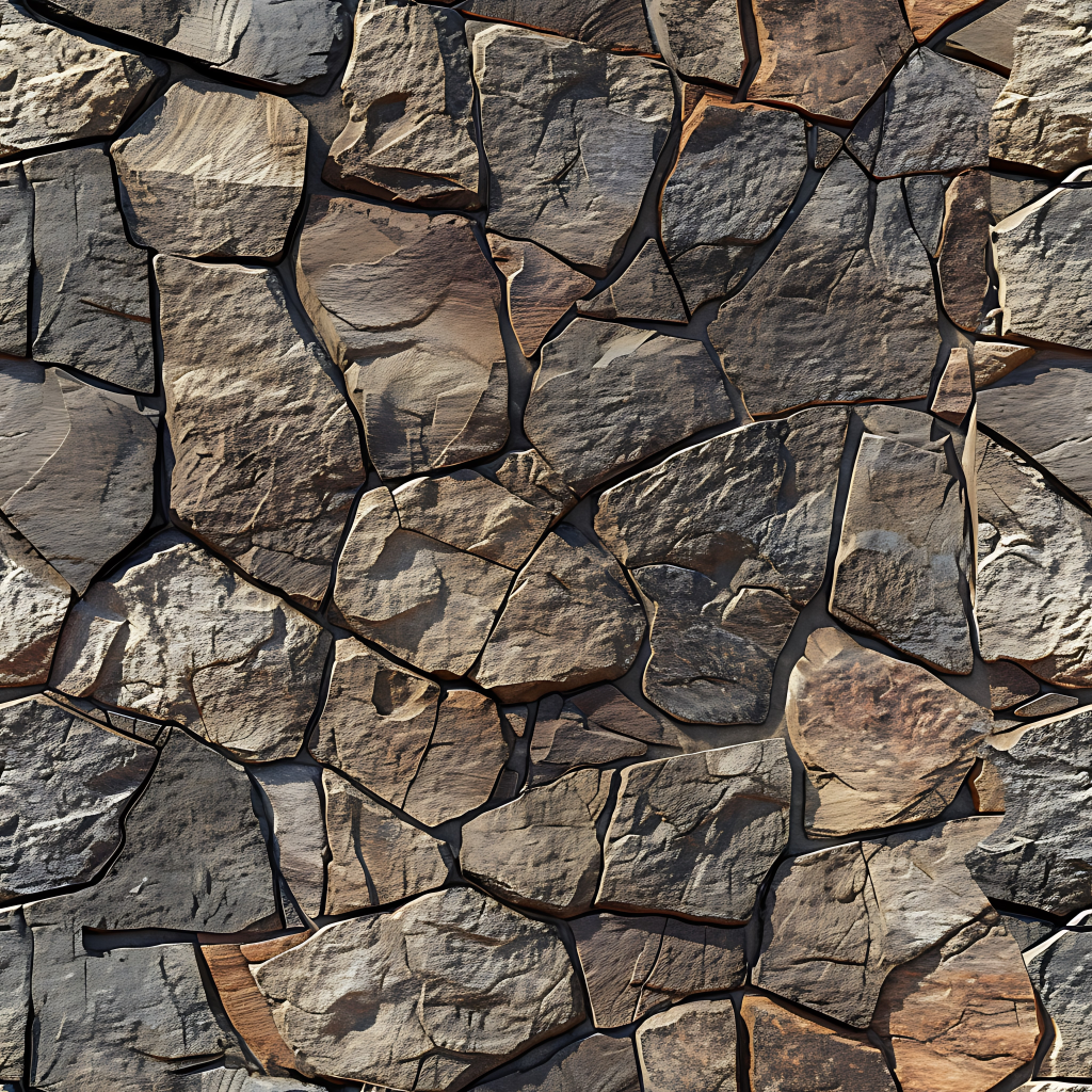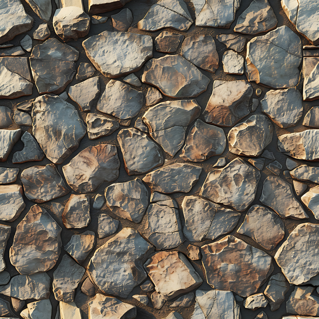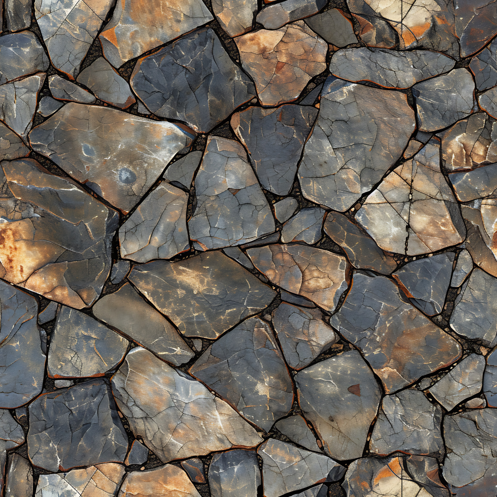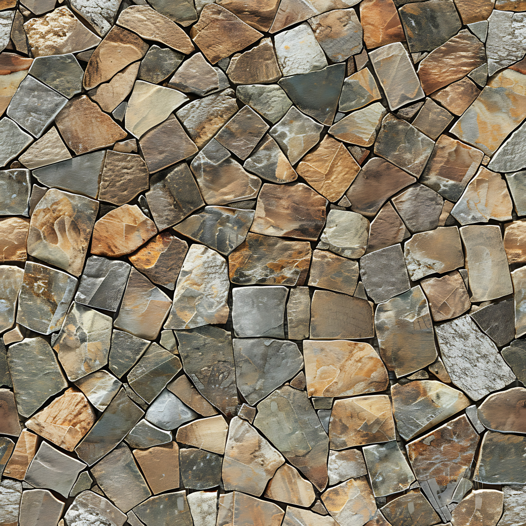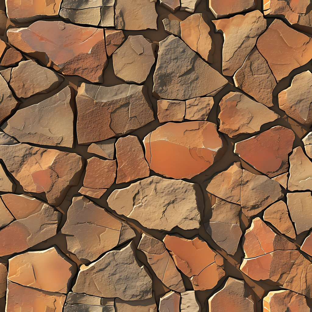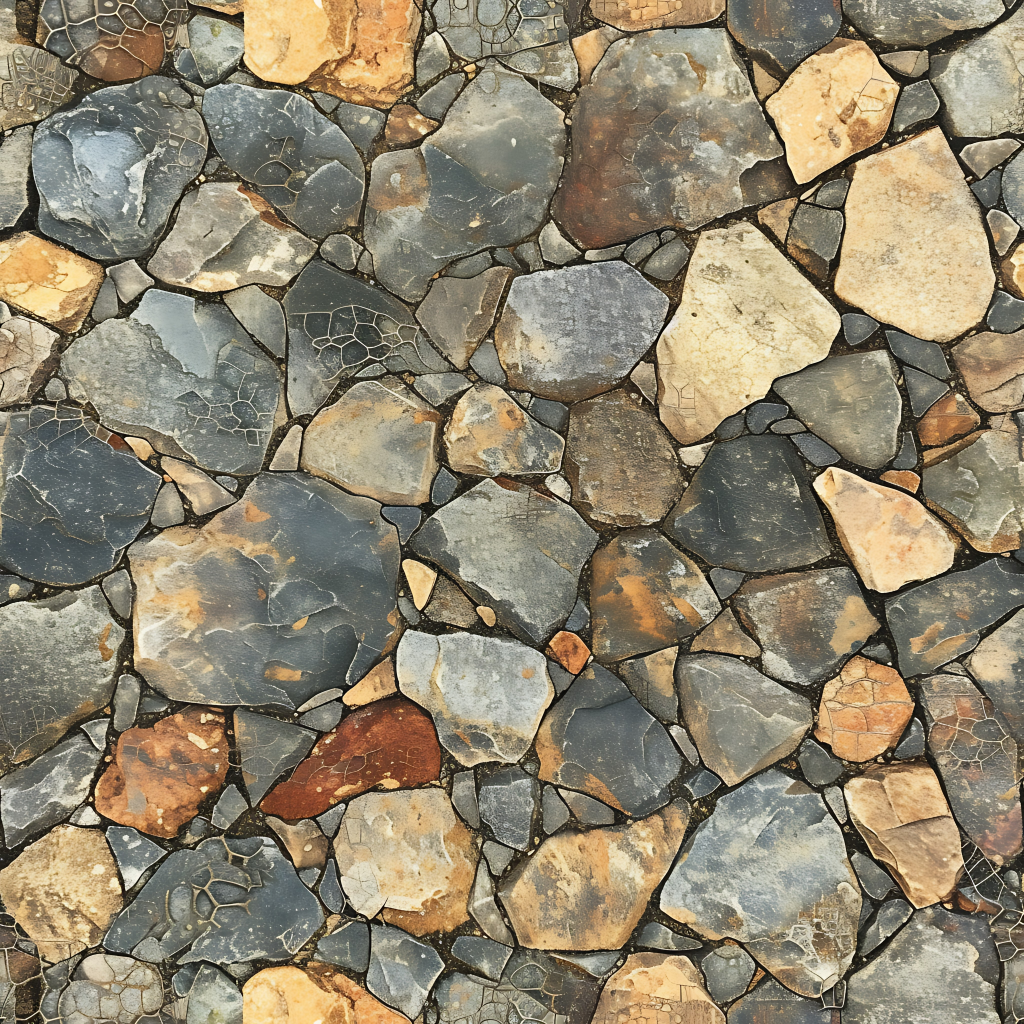 Seamless 3d texture pbr 8k rough stone mosaic with abstract fragments and earth tones