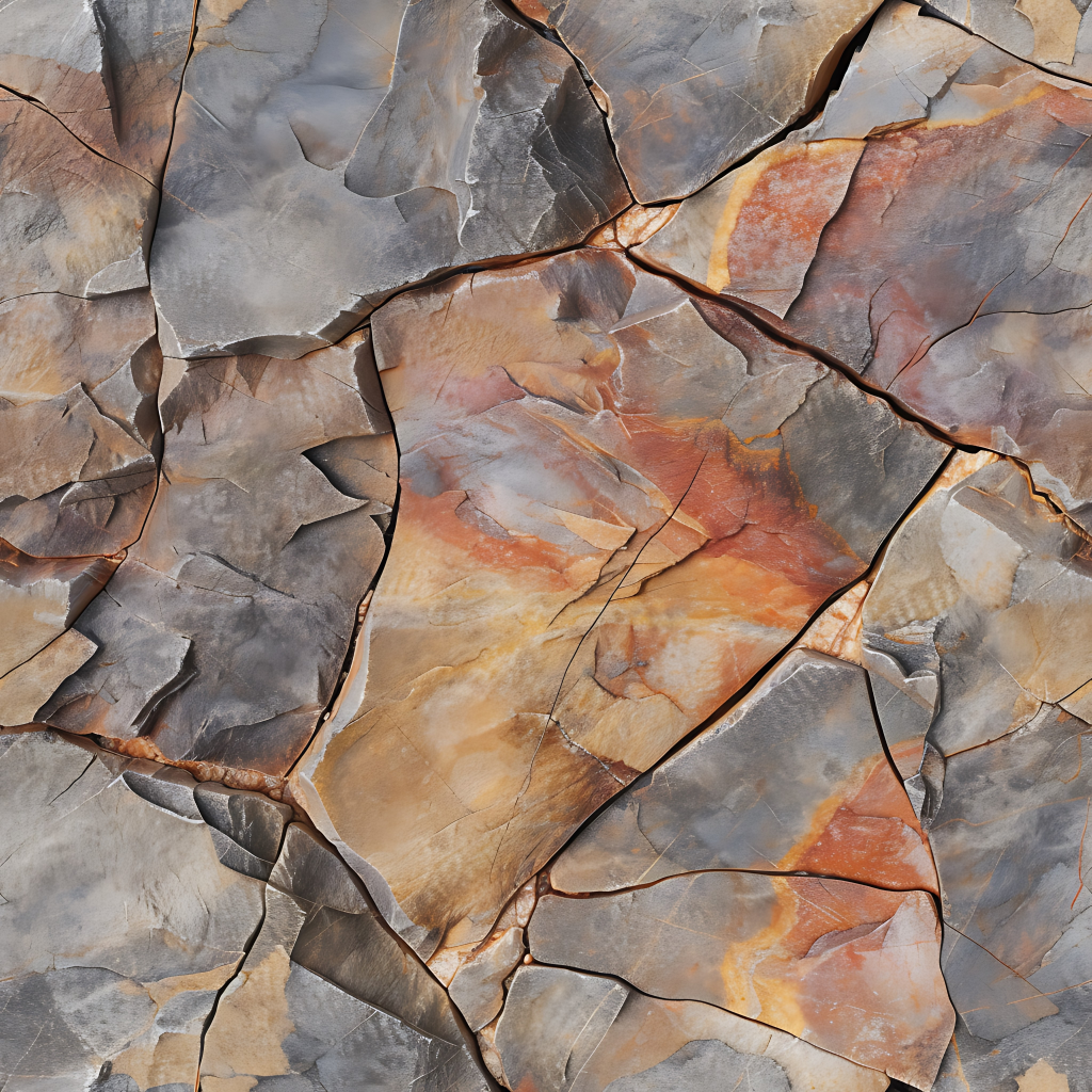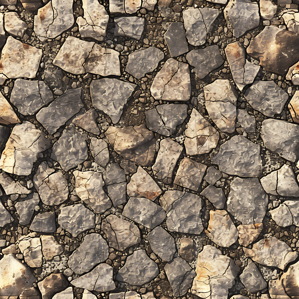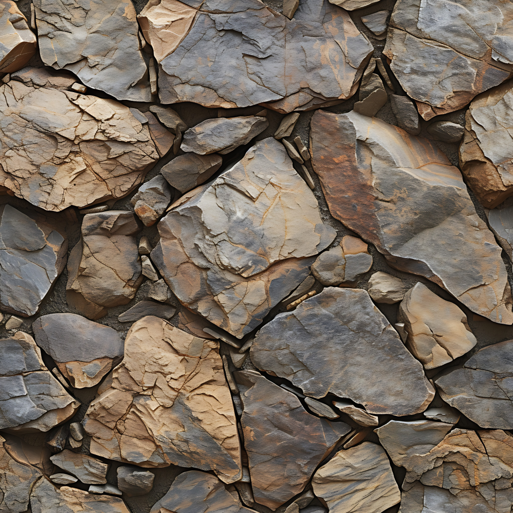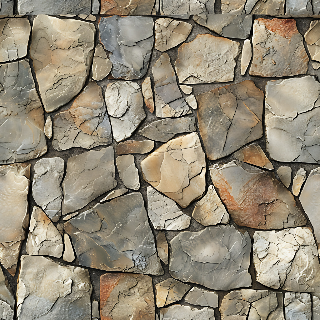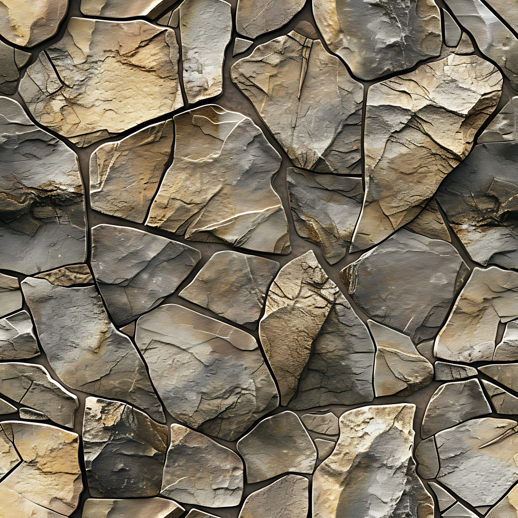 Seamless 3d texture pbr 8k rough stone mosaic with abstract fragments and earth tones