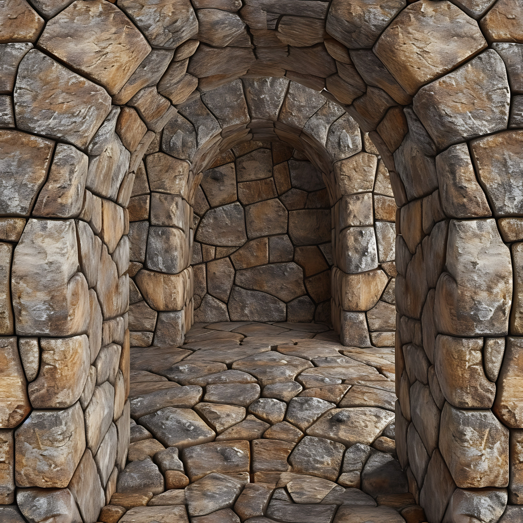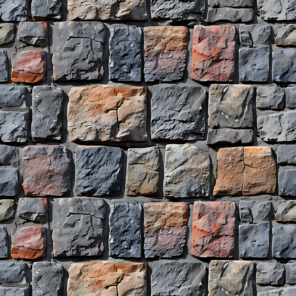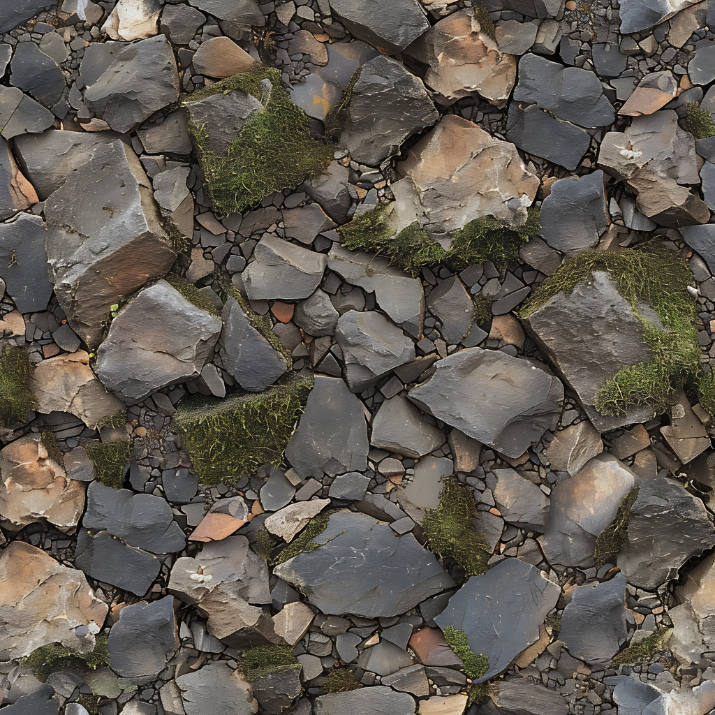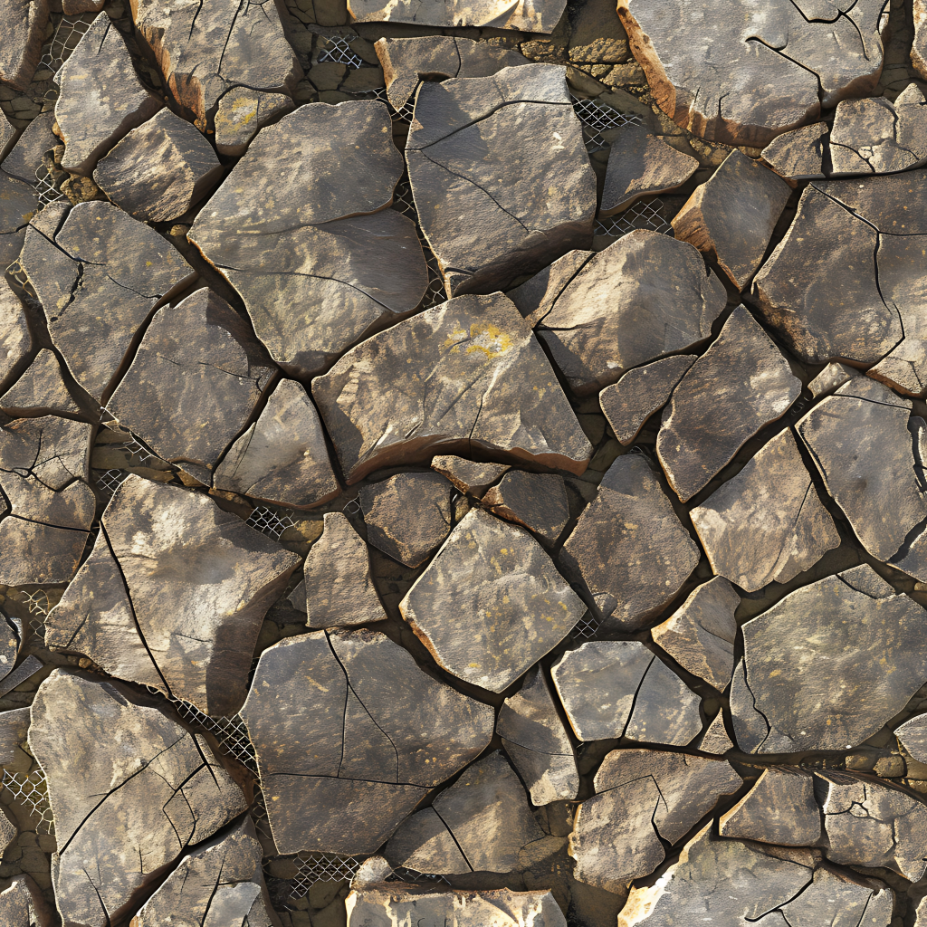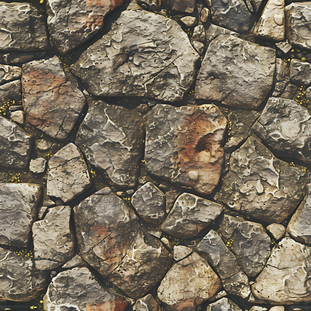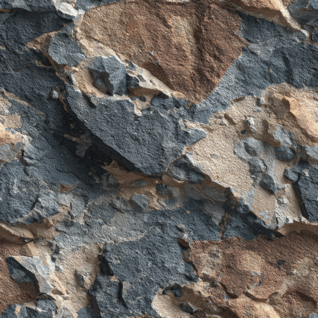 Seamless 3d texture pbr 8k rough stone mosaic with abstract fragments and earth tones