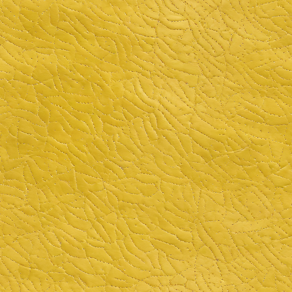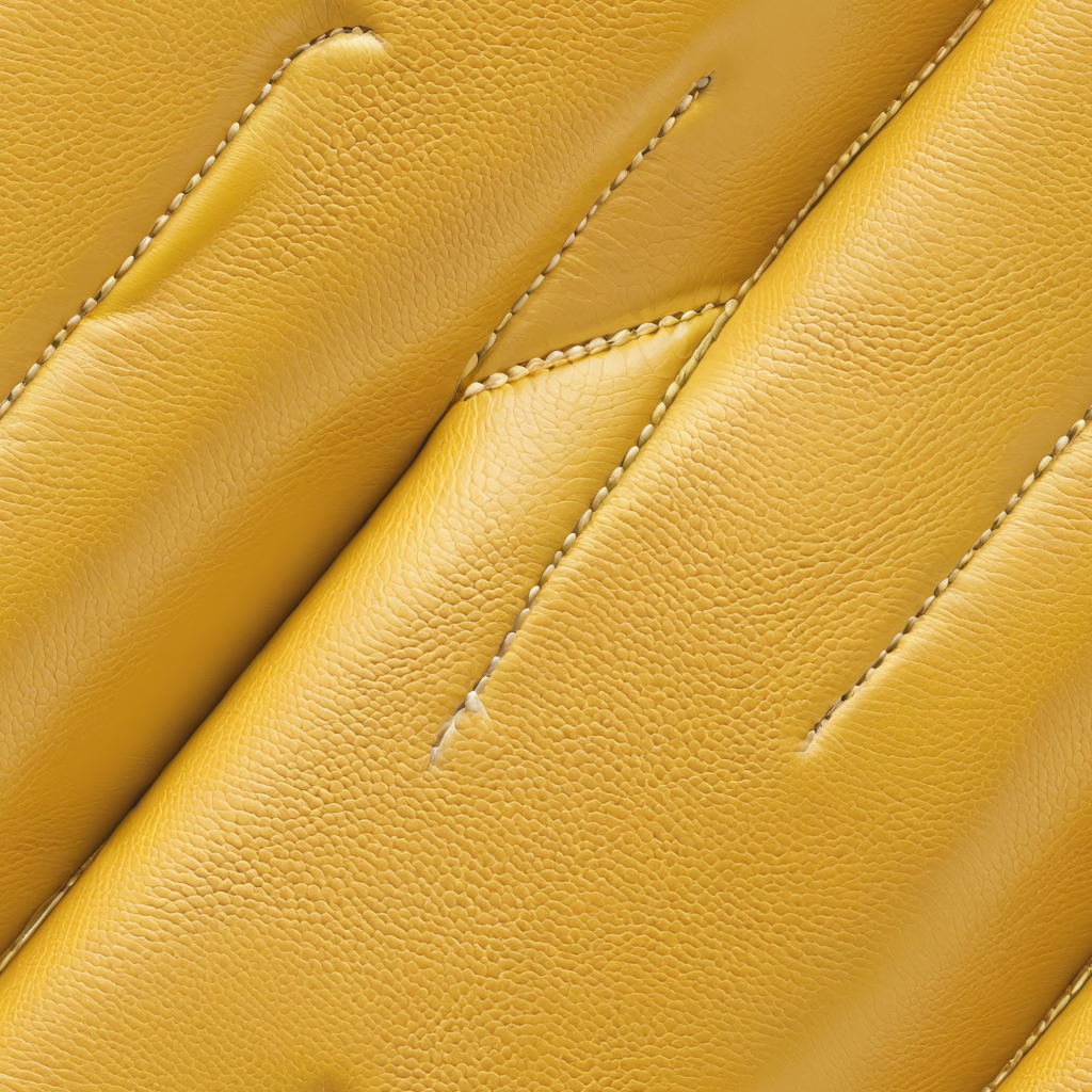 Seamless 3D Yellow Pebbled Leather PBR Texture with Detailed Stitching and Natural Grain
