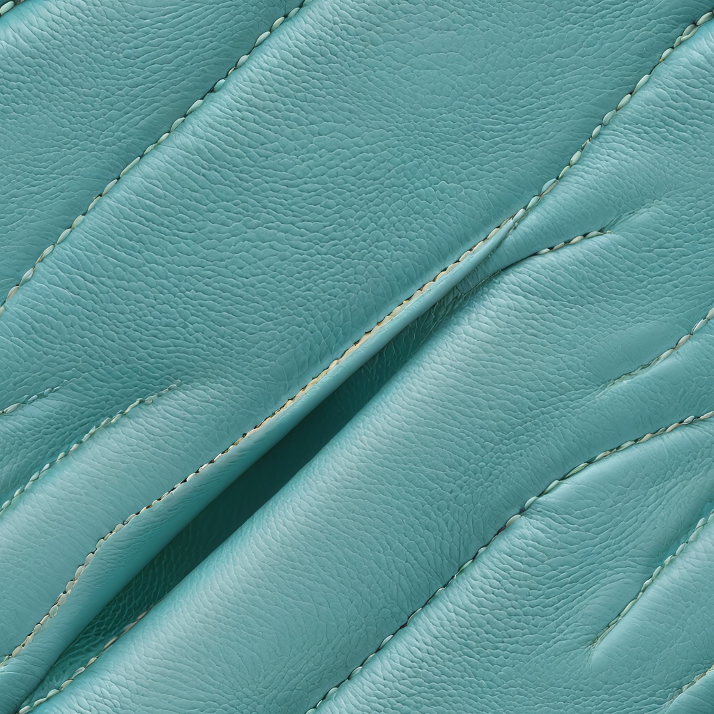 Seamless 3D PBR Turquoise Quilted Leather Texture with Padded Stitching and Fine Grain