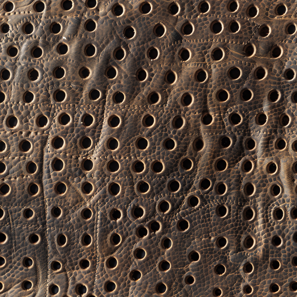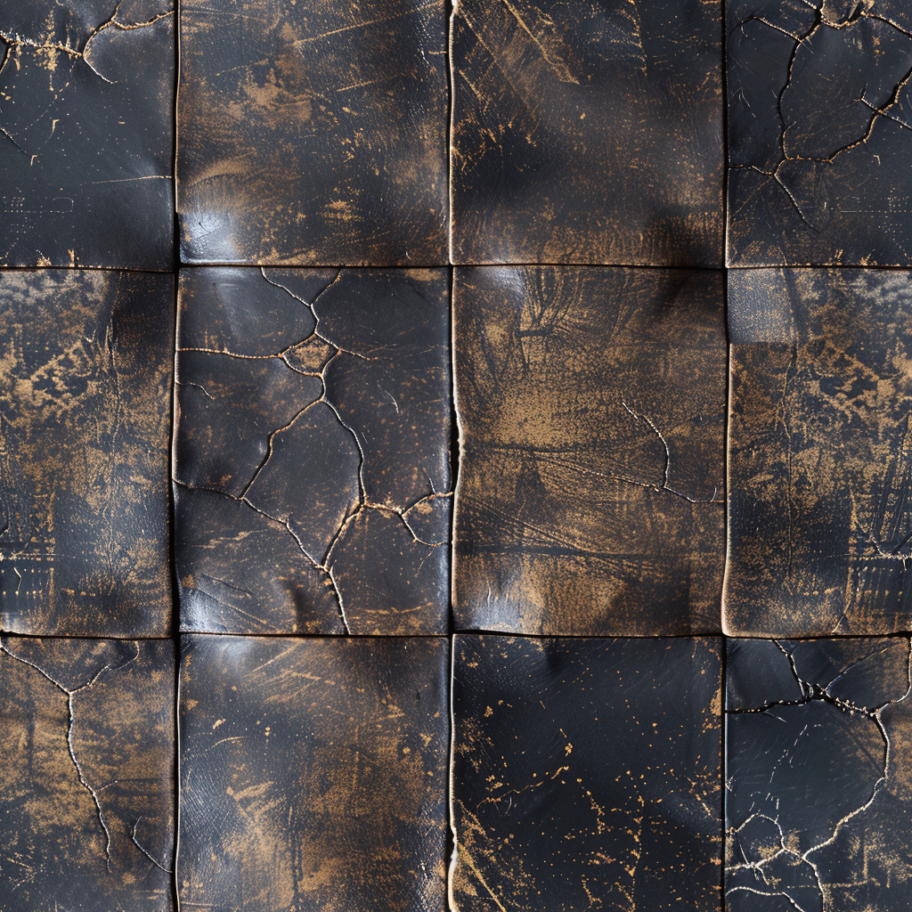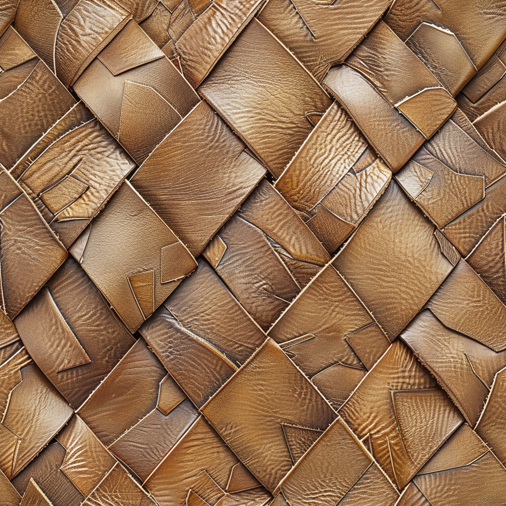 Seamless 3D Vintage Tan Pebbled Leather PBR Texture with Stitched Panels