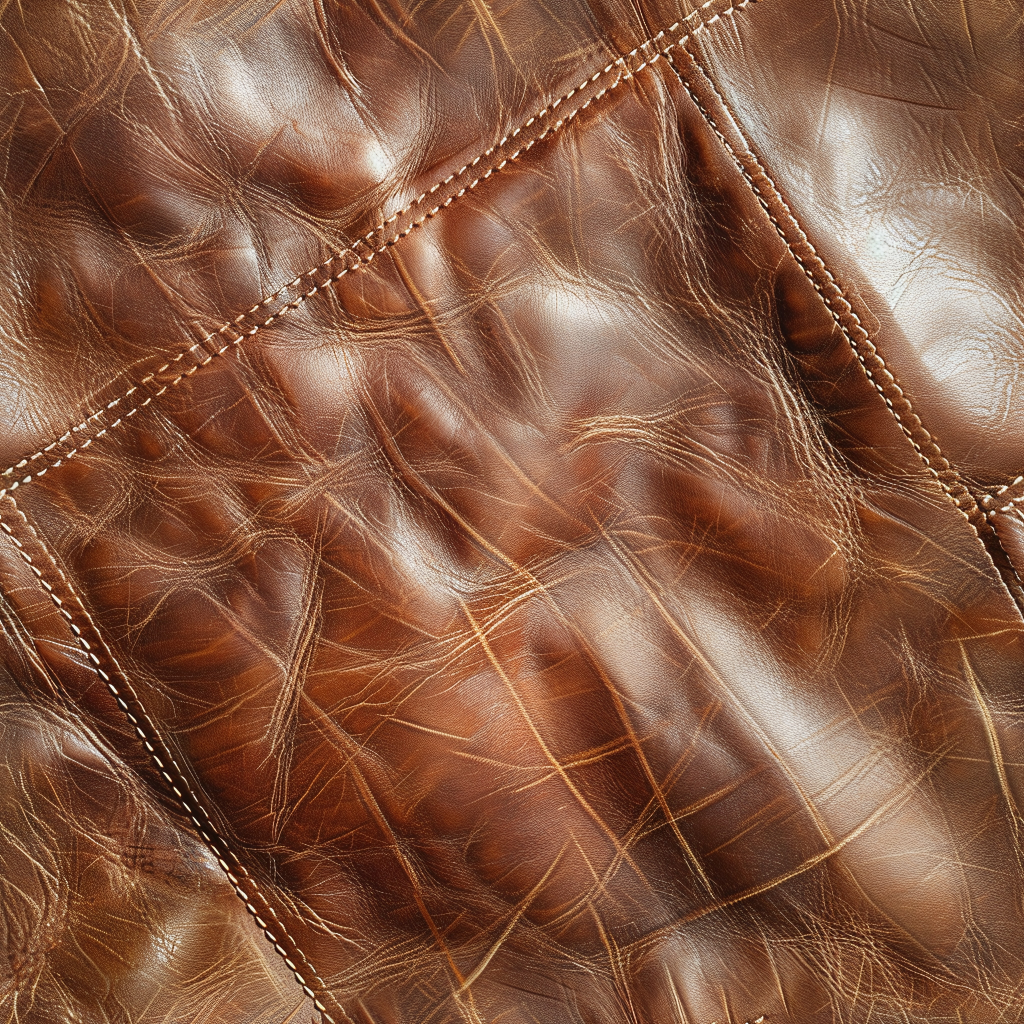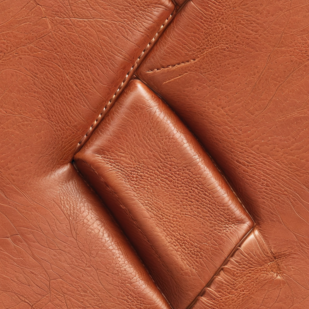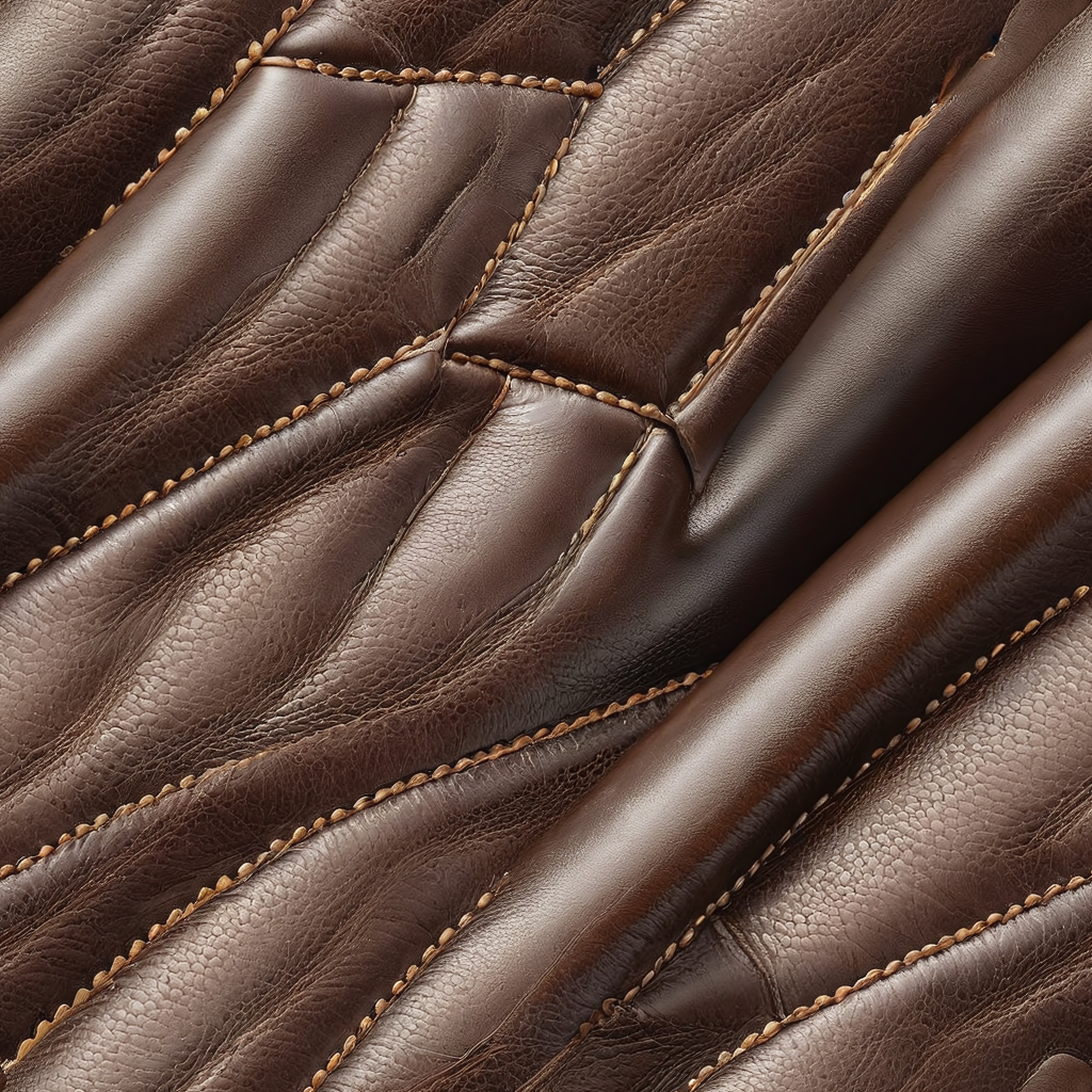 Seamless 3D PBR Texture of Smooth Brown Leather with Stitched Panels