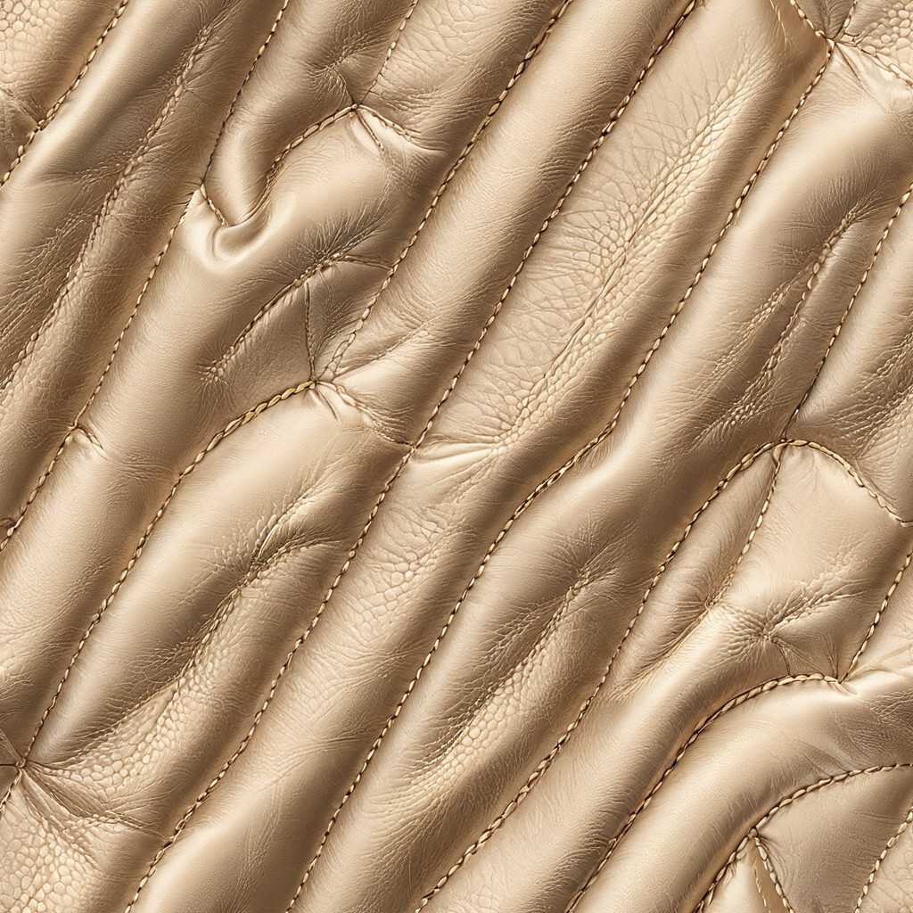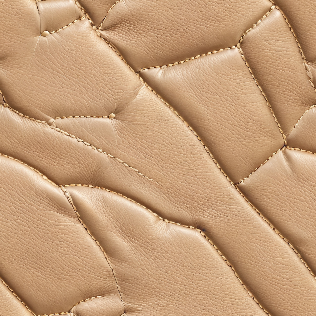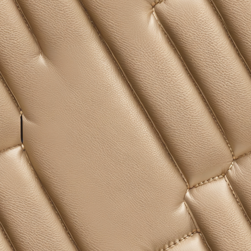 Seamless 3D Quilted Beige Leather PBR Texture with Subtle Grain and Stitching