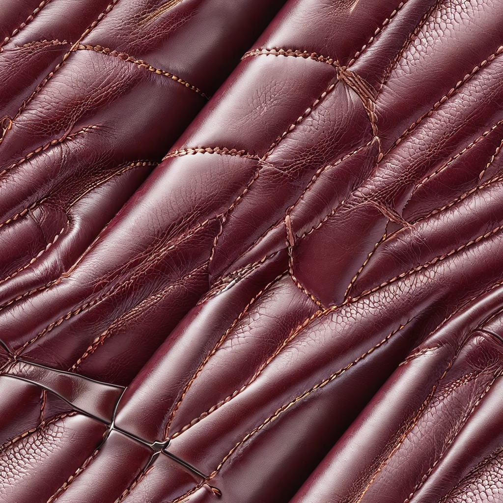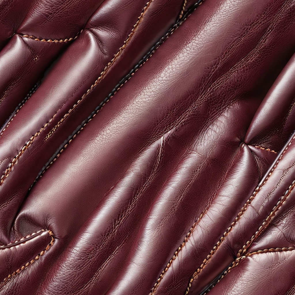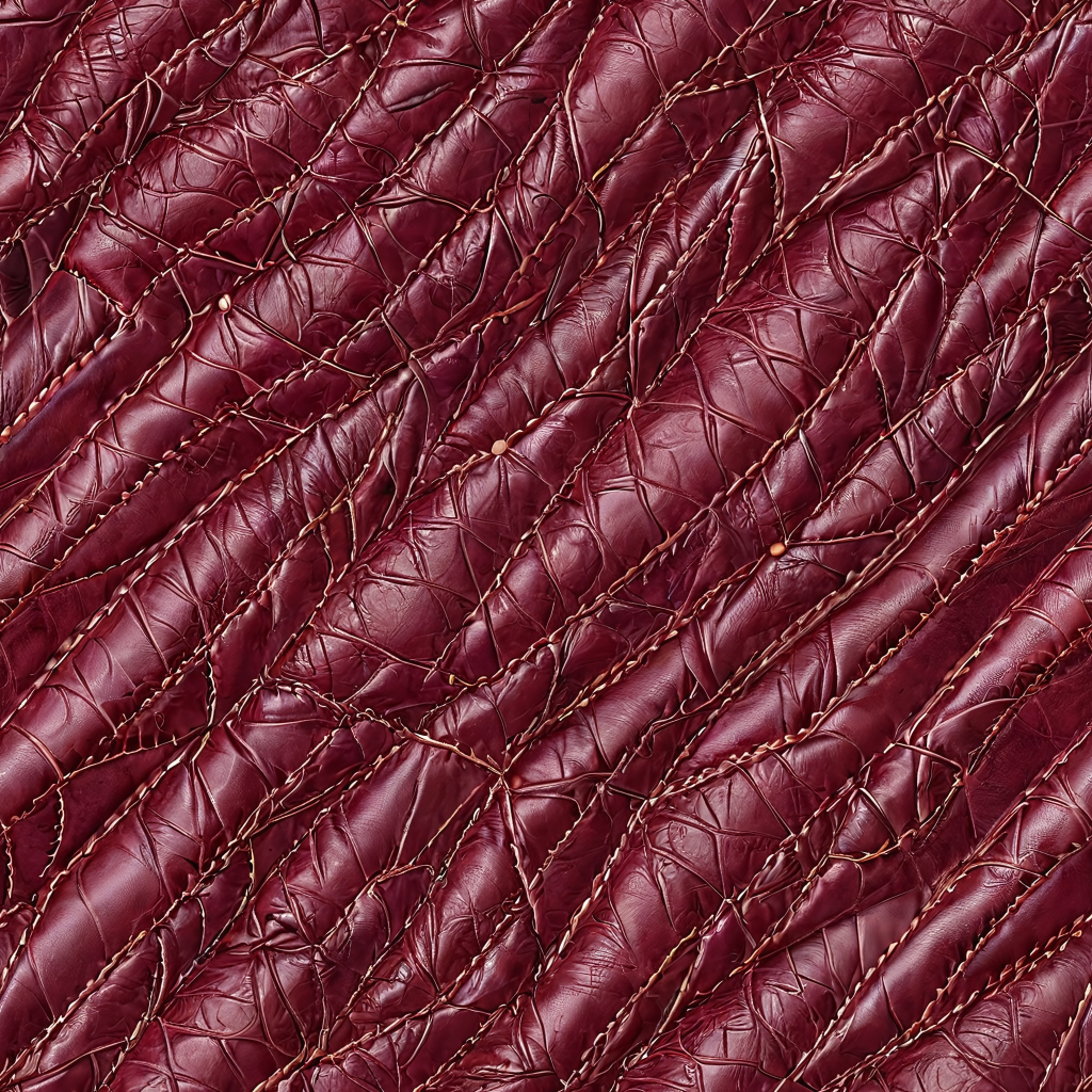 Seamless 3D Quilted Burgundy Leather PBR Texture with Detailed Stitching and Glossy Finish