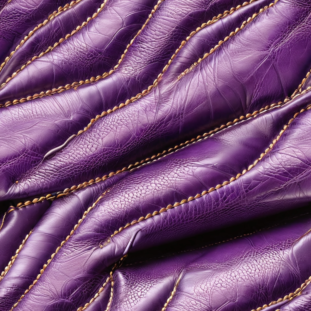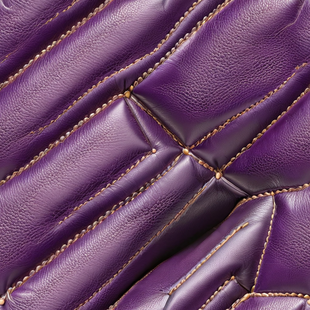 Seamless 3D Quilted Glossy Purple Leather PBR Texture with Detailed Stitching and Wrinkles