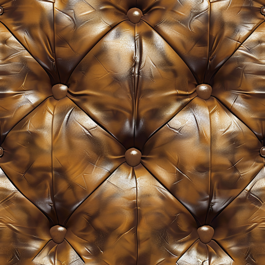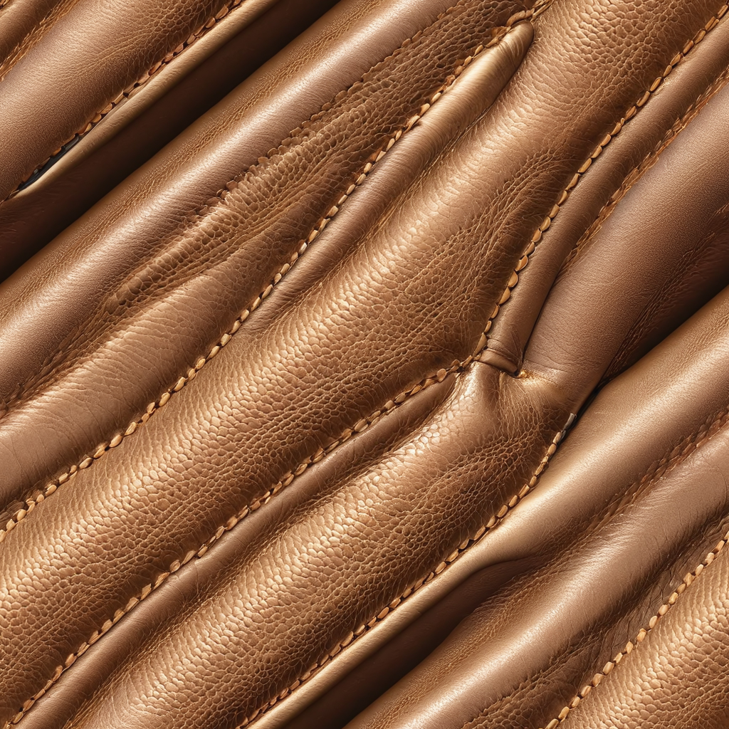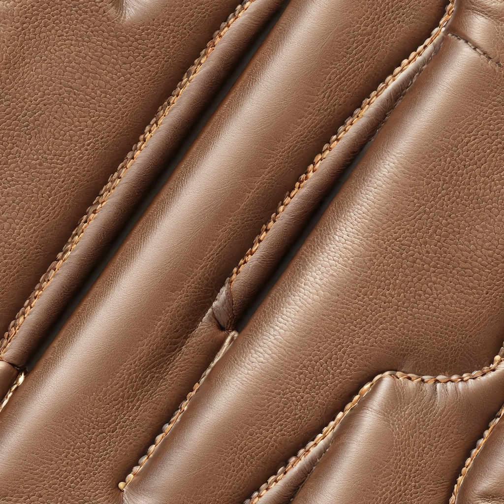 Seamless 3D PBR Glossy Tan Leather Texture with Stitched Quilting and Fine Grain