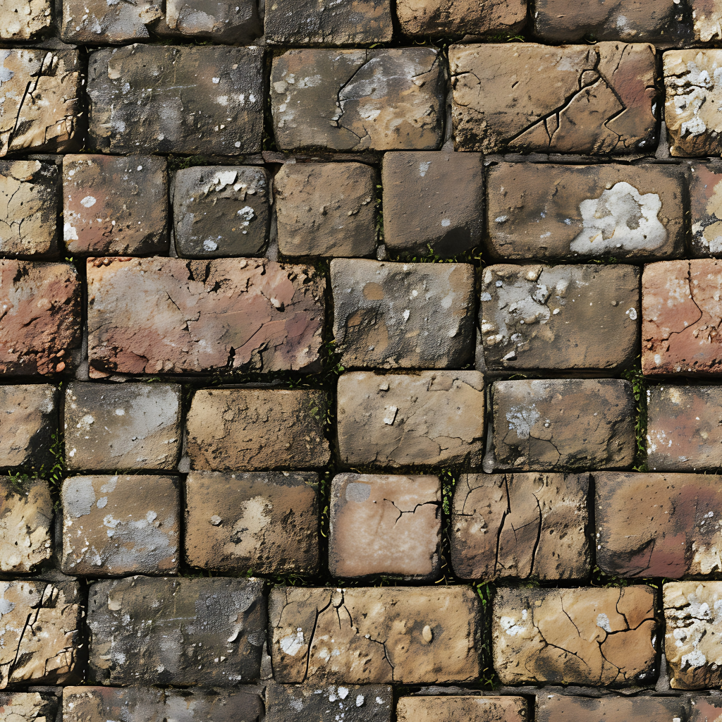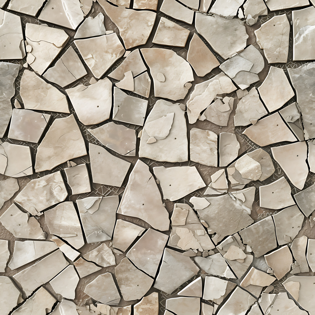 Seamless 3d texture pbr 8k broken tile mosaic featuring distressed ceramic cracked tiles with earth tones