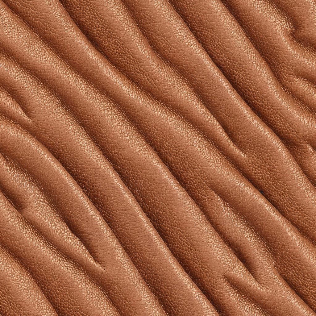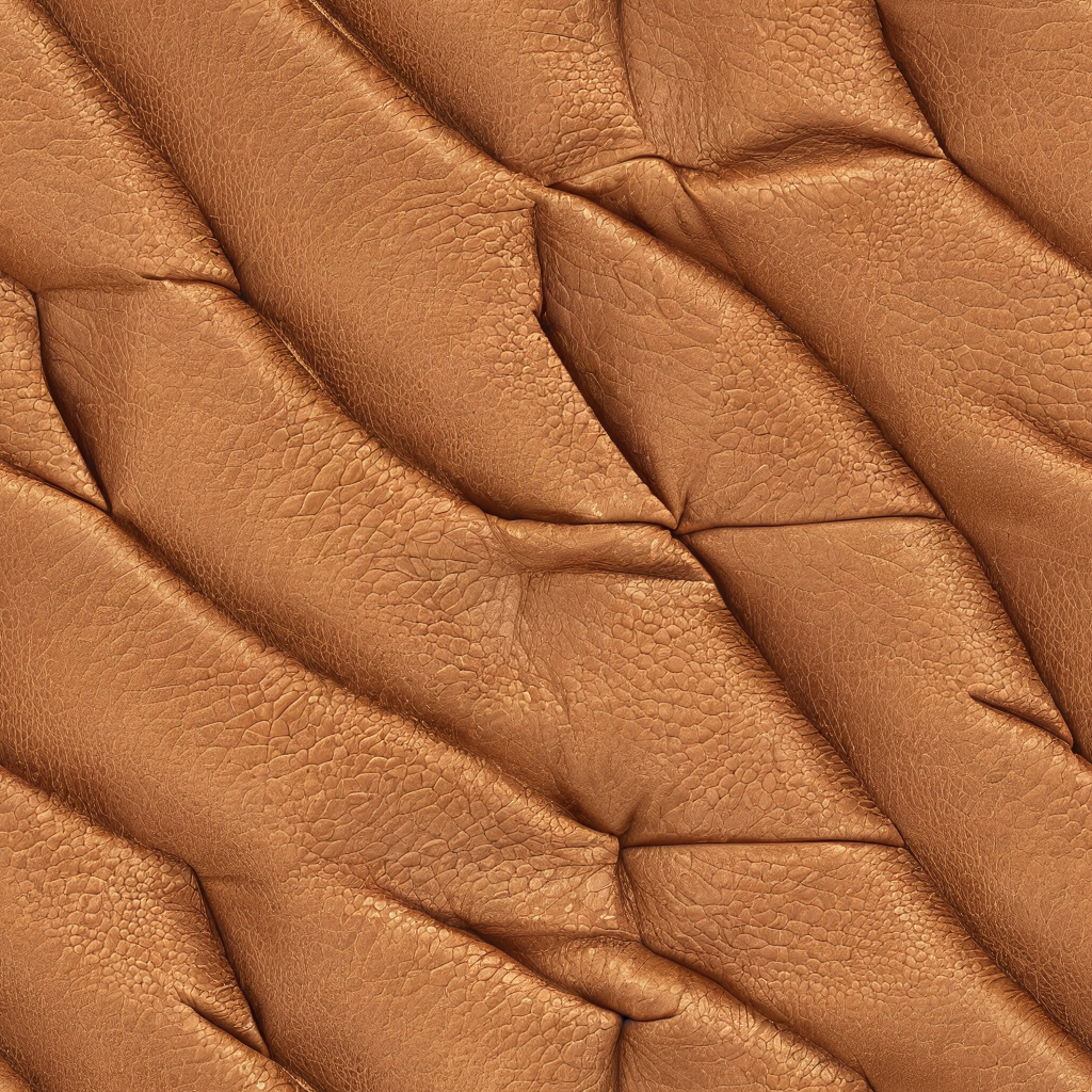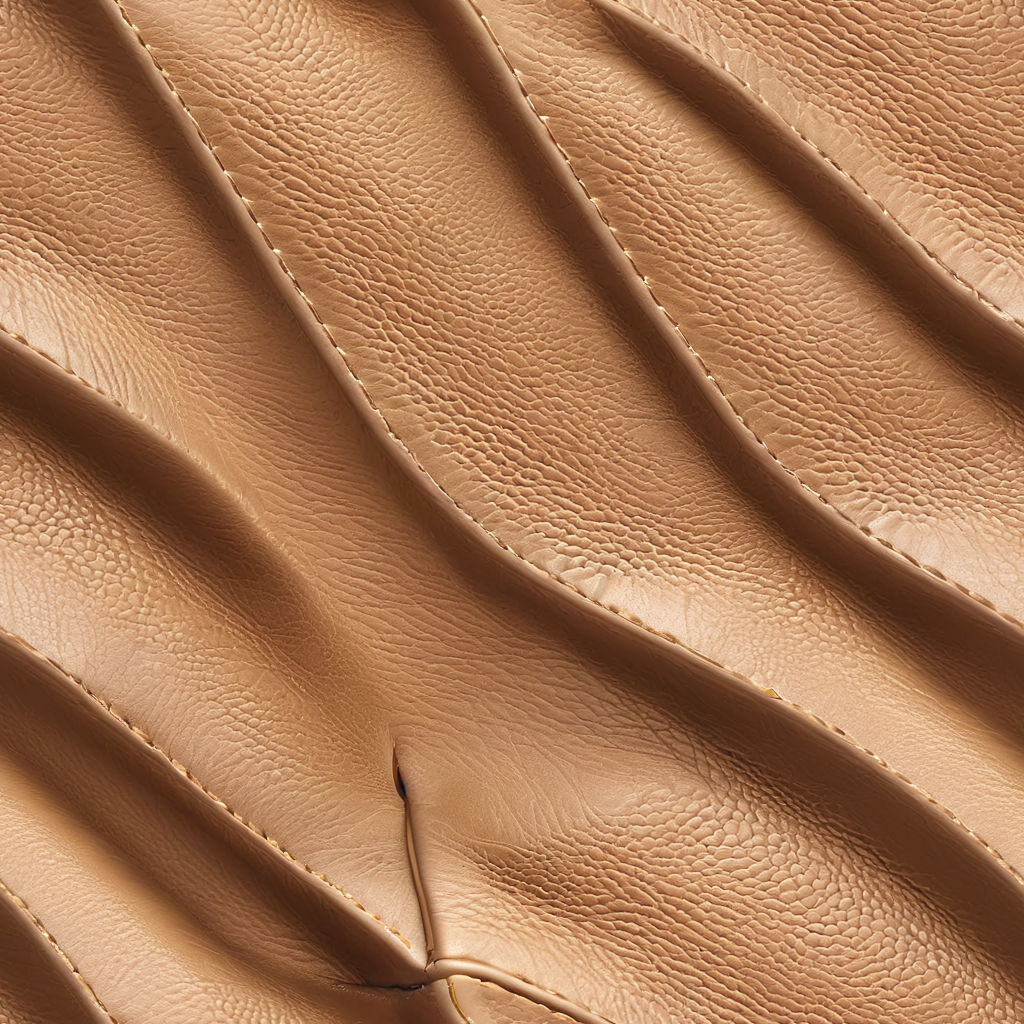 Seamless 3D Quilted Tan Leather PBR Texture with Soft Wrinkles and Stitching