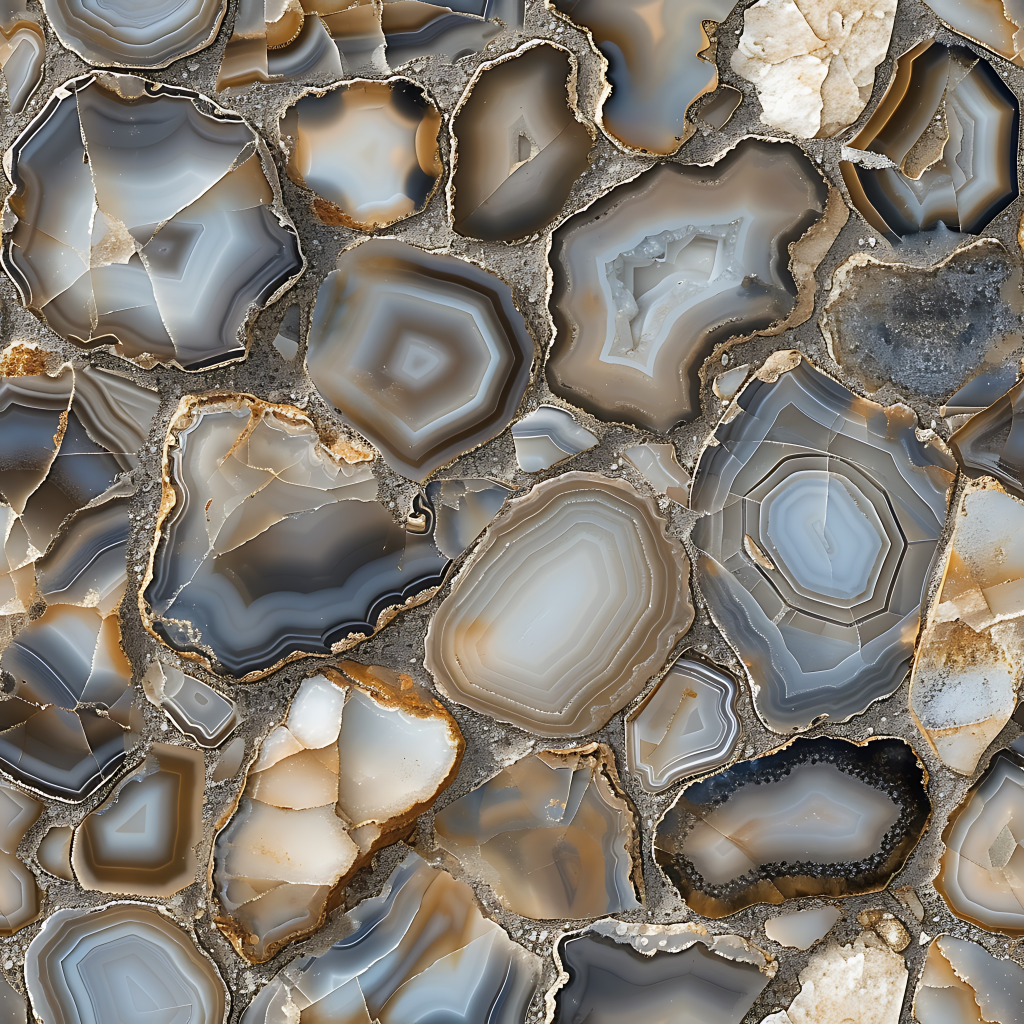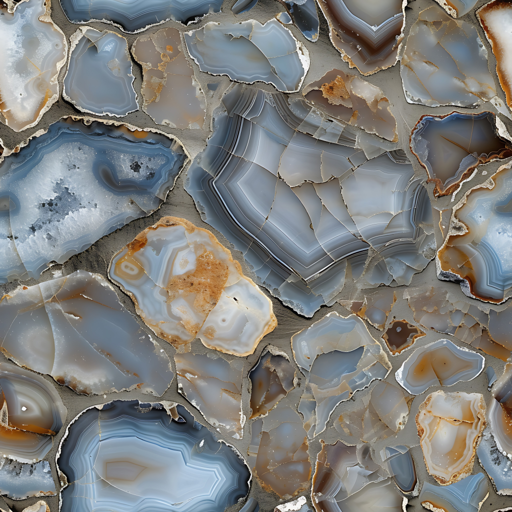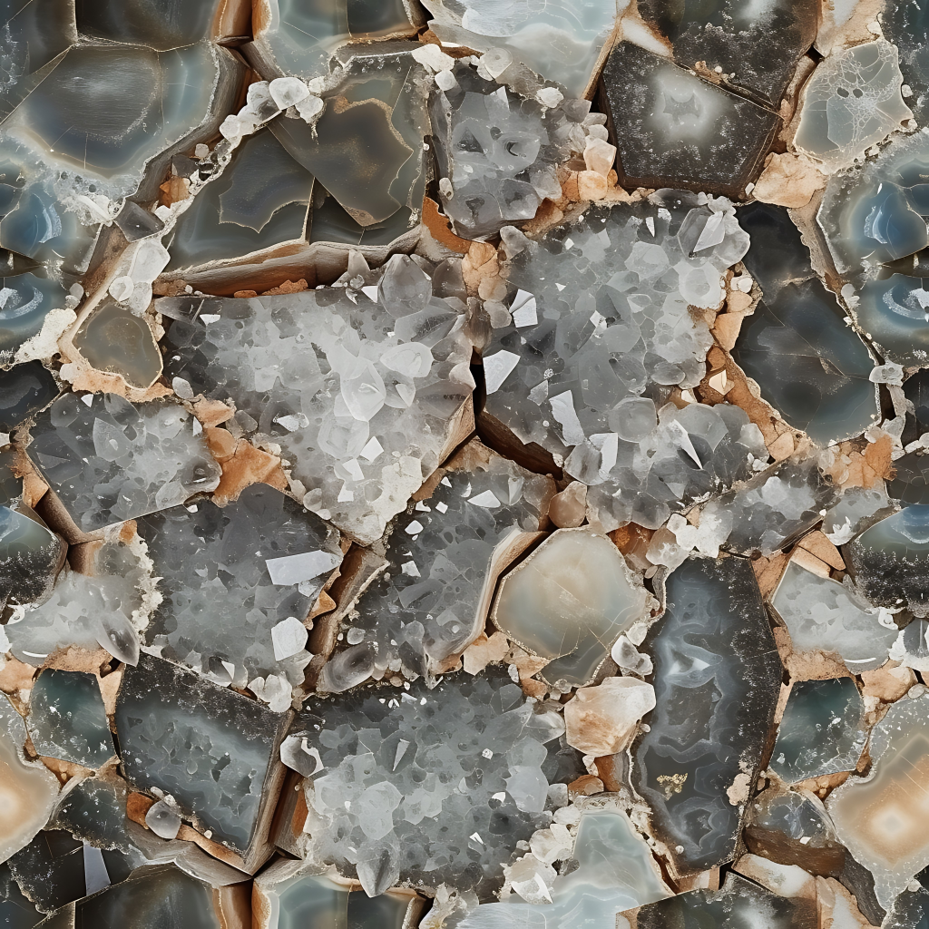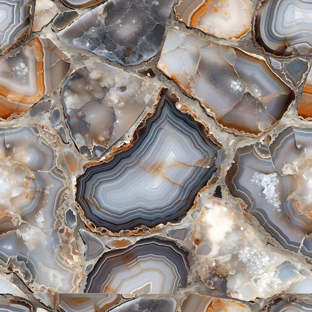 Seamless 3d texture pbr 8k onyx pieces mosaic with neutral hues and polished stone finish