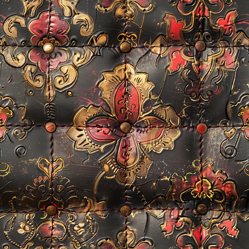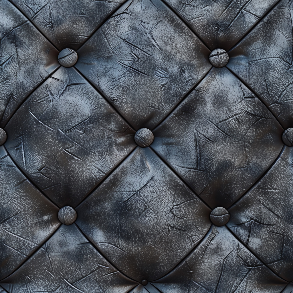 Seamless 3D Quilted Black Leather PBR Texture with Tan Stitching and Metal Buttons
