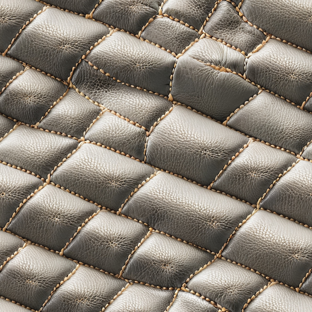 Seamless 3D PBR Texture of Stitched Gray Pebbled Leather with Padded Quilted Panels